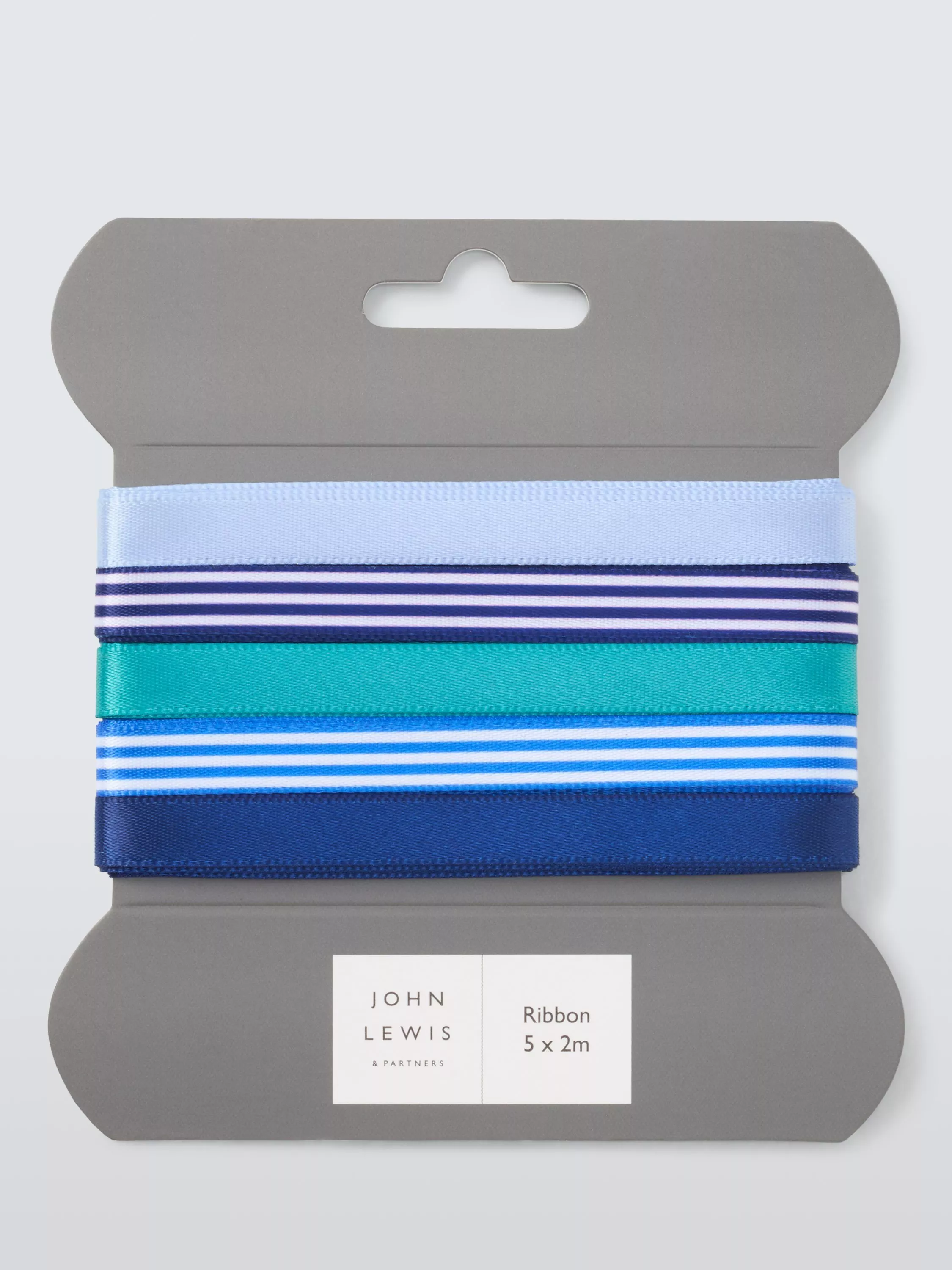 John LewisPlain/Stripe Gift Ribbons, 2m, Pack of 5