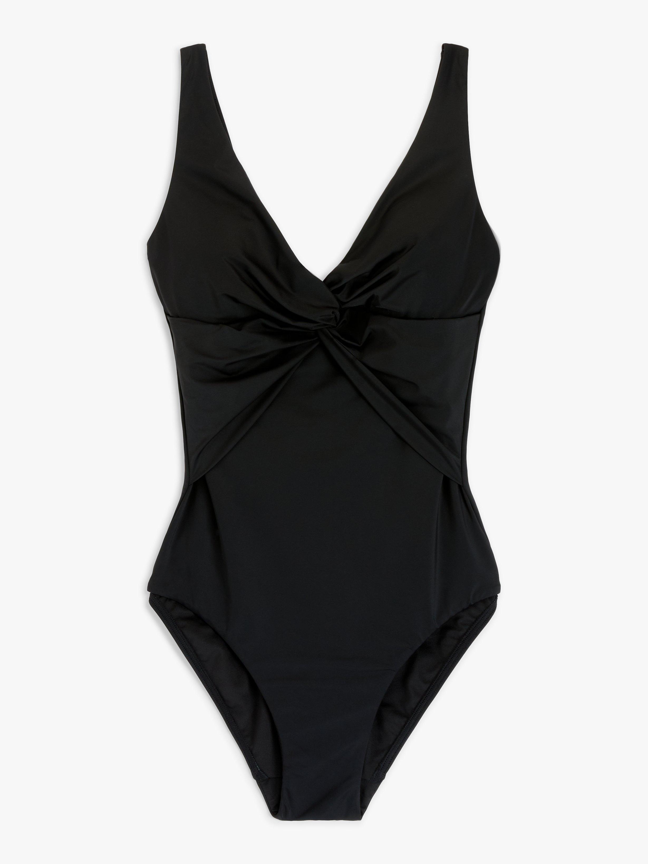 It might be plain but this swimsuit is pretty in its own way, as the plunging neckline becomes a twist front and creates a stunning shape that provides medium shaping control. The silhouette is completed with a medium leg-cut and scoop back.
