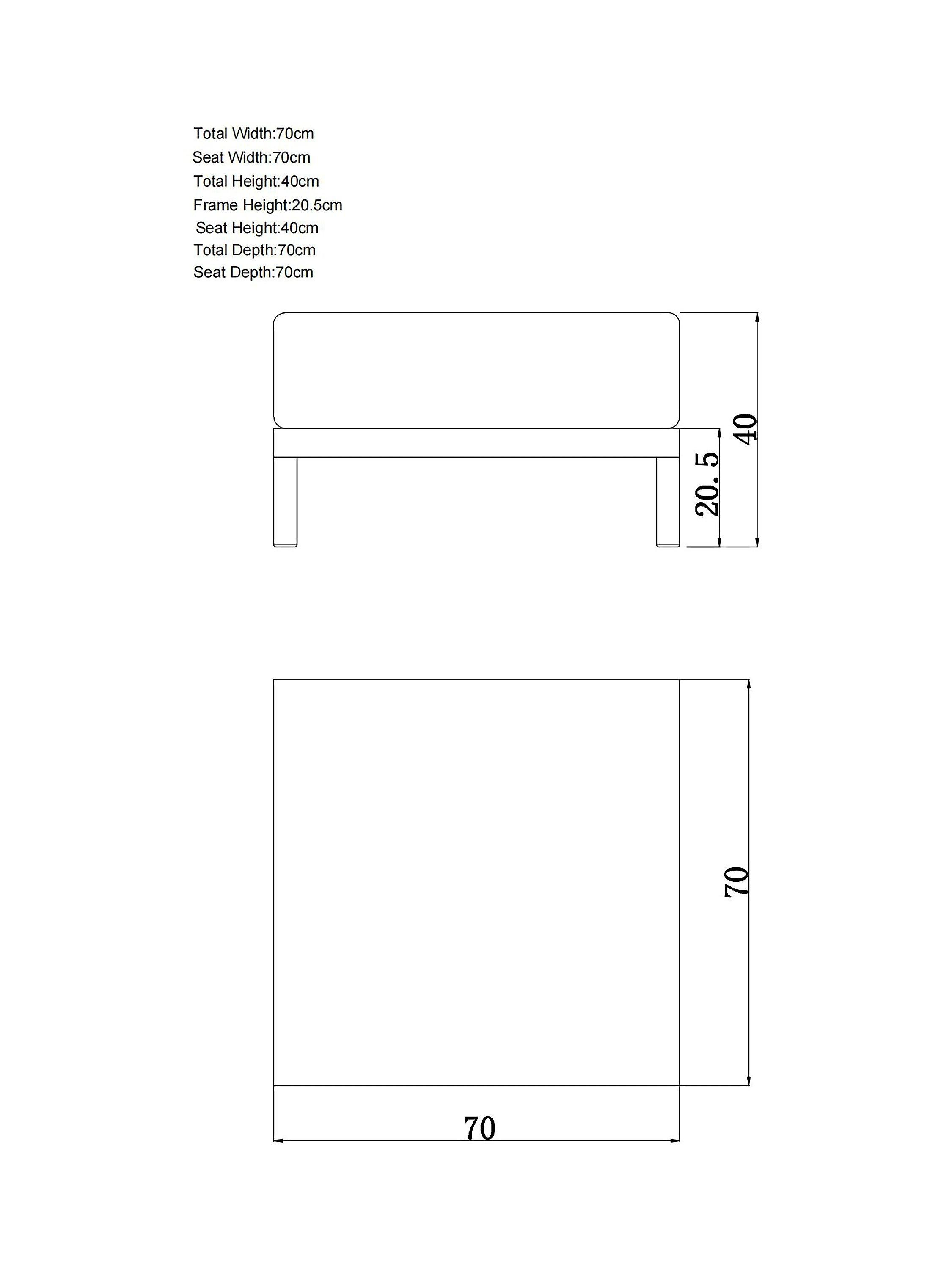 - Sofa: H71 x W161.5 D79.5cm, Ottoman: H40 x W70 x D70cm, Side Table: H51 x W45 x D35cm