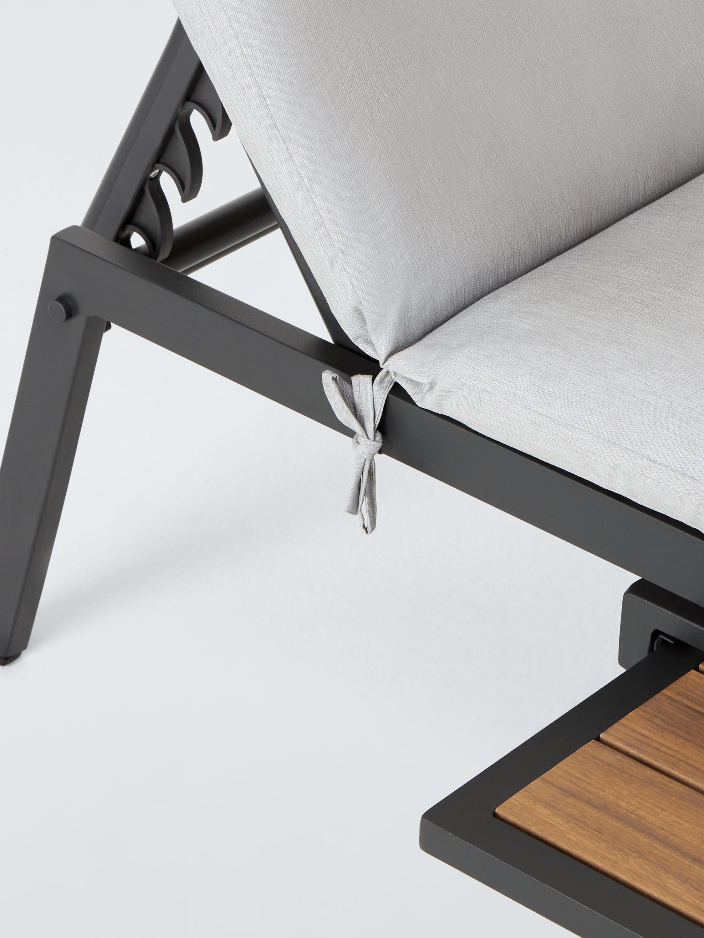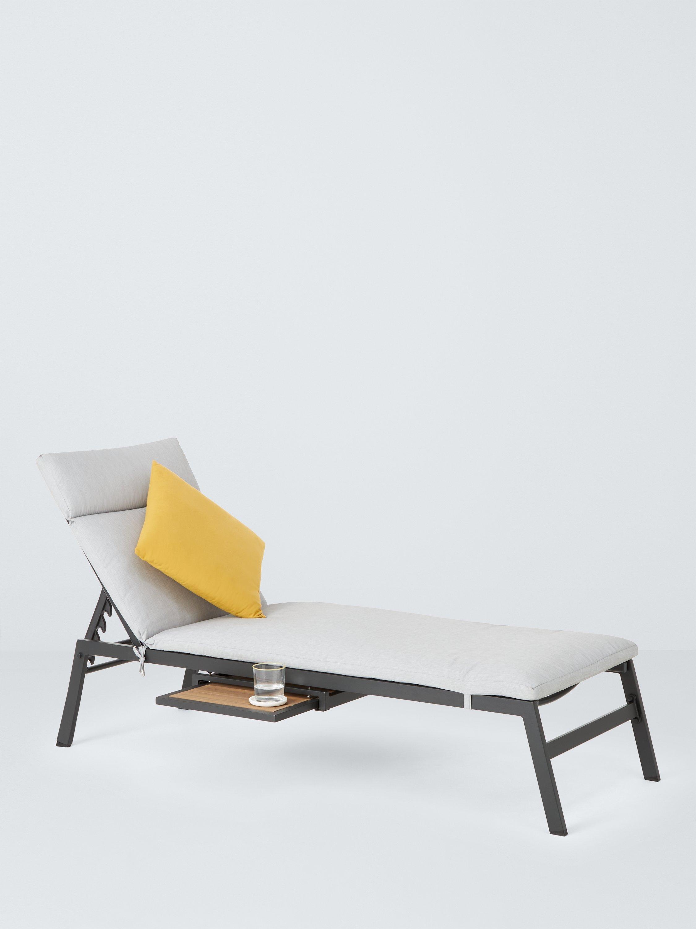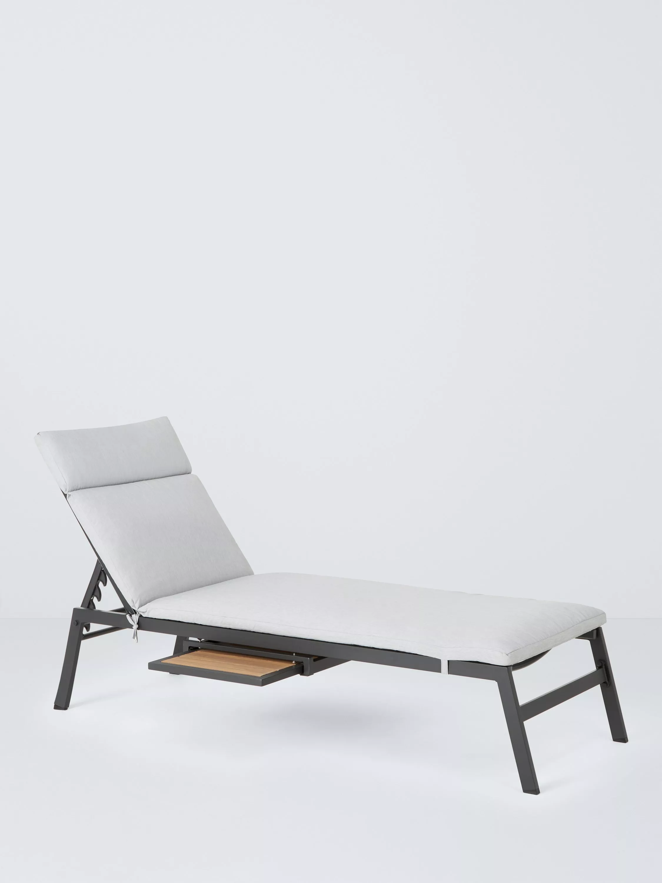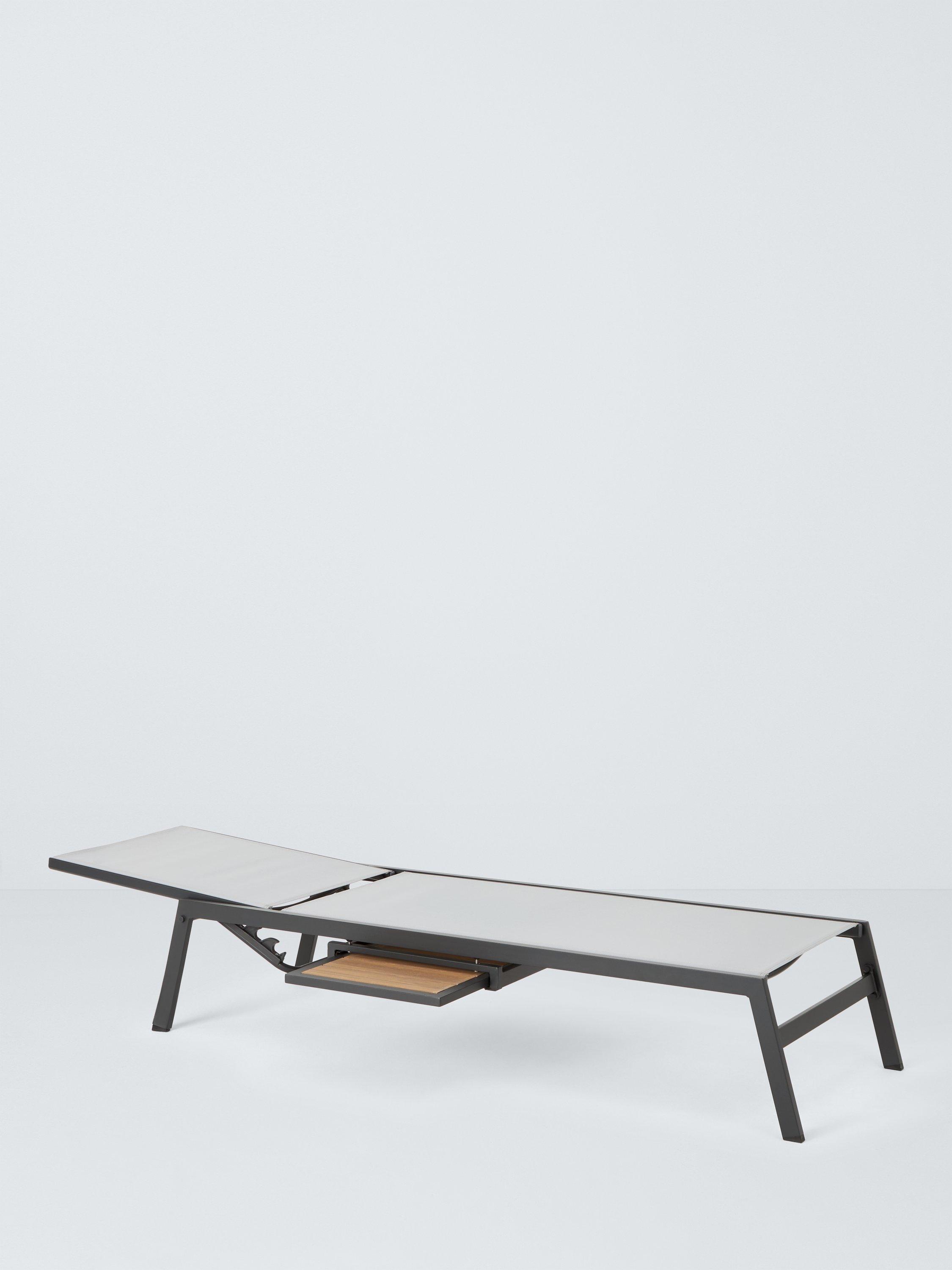 Our Platform sunlounger is a modern design with wood-effect details for a premium look. The lightweight, rust-proof and weather-resistant aluminium design includes a pull-out shelf for drinks.