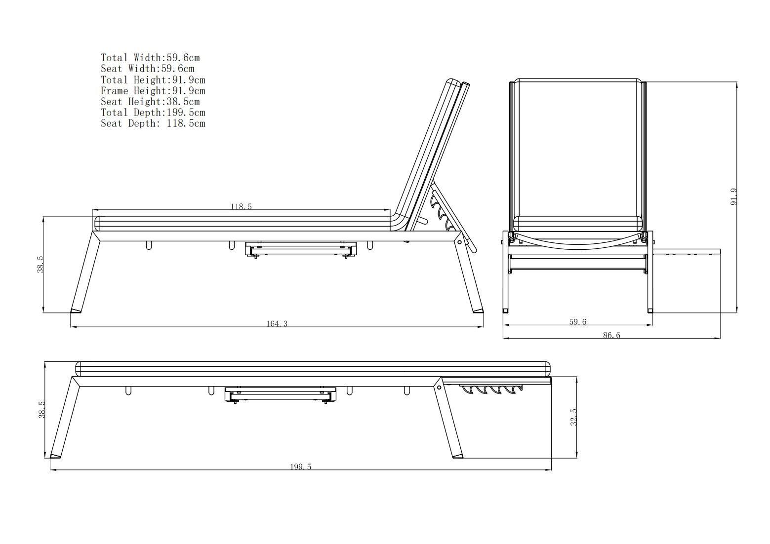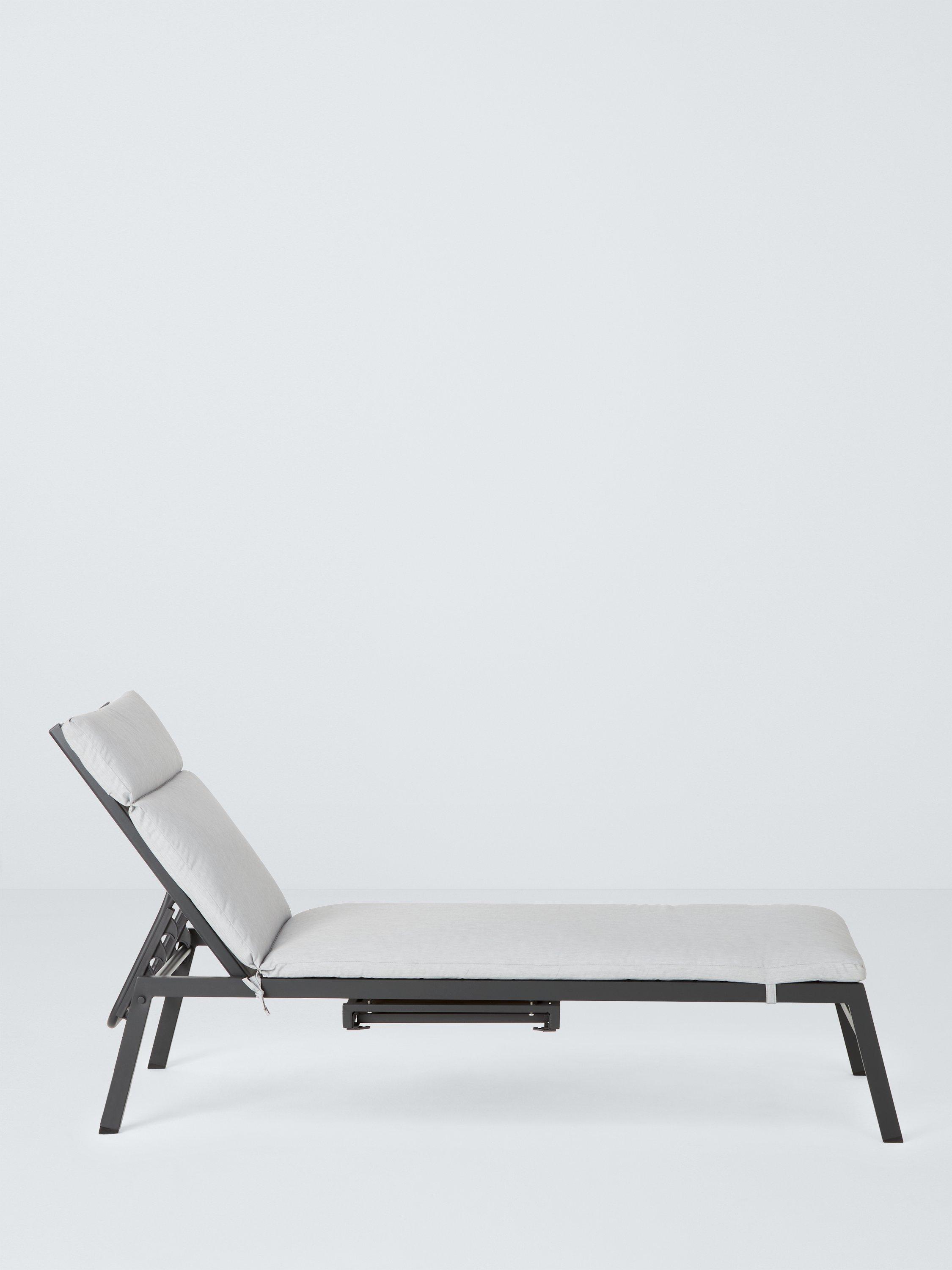 Removable shower-resistant seat and backrest cushioning provide comfort on the all-weather fabric support. The sunlounger has four reclining positions for relaxing.