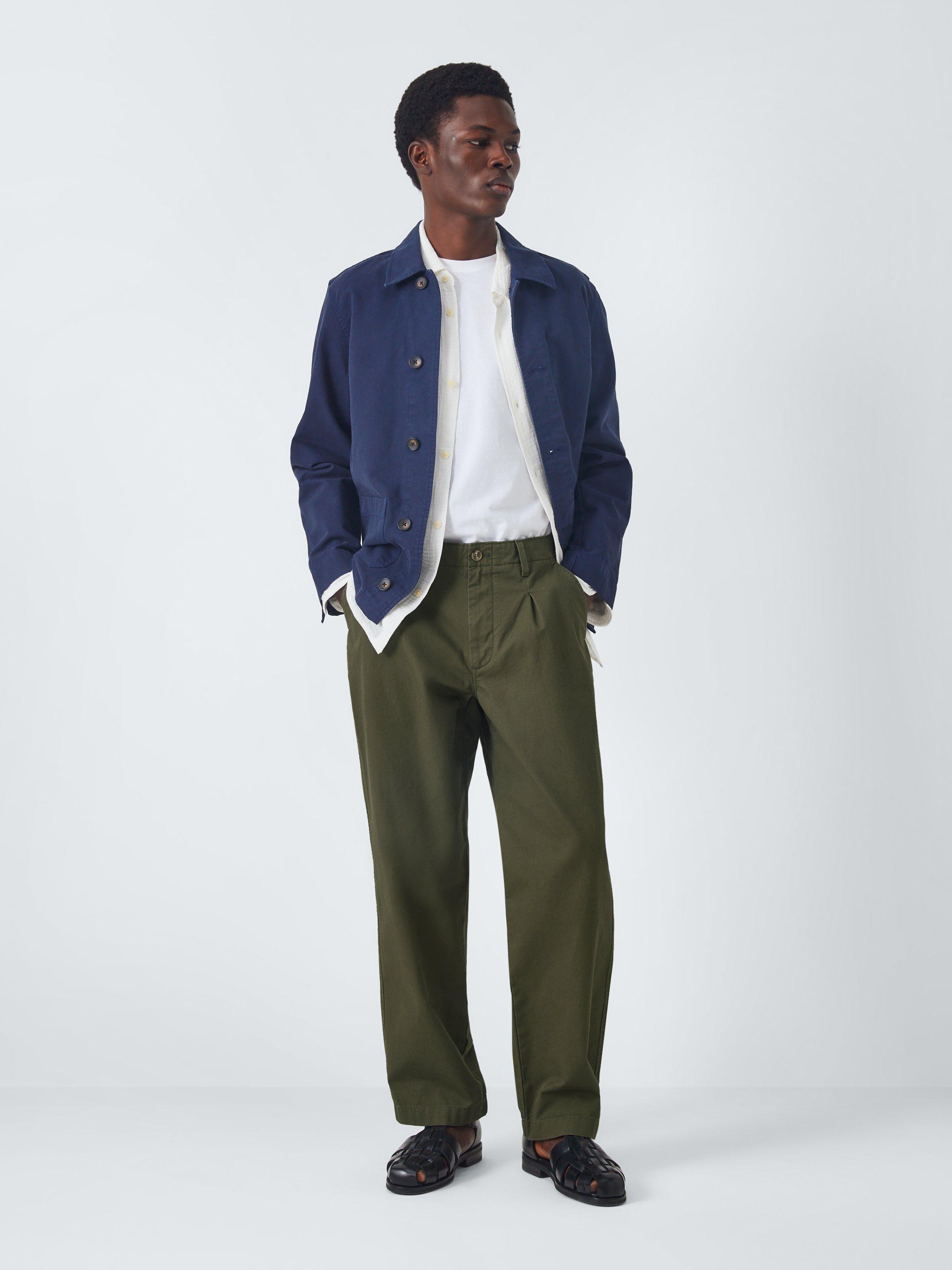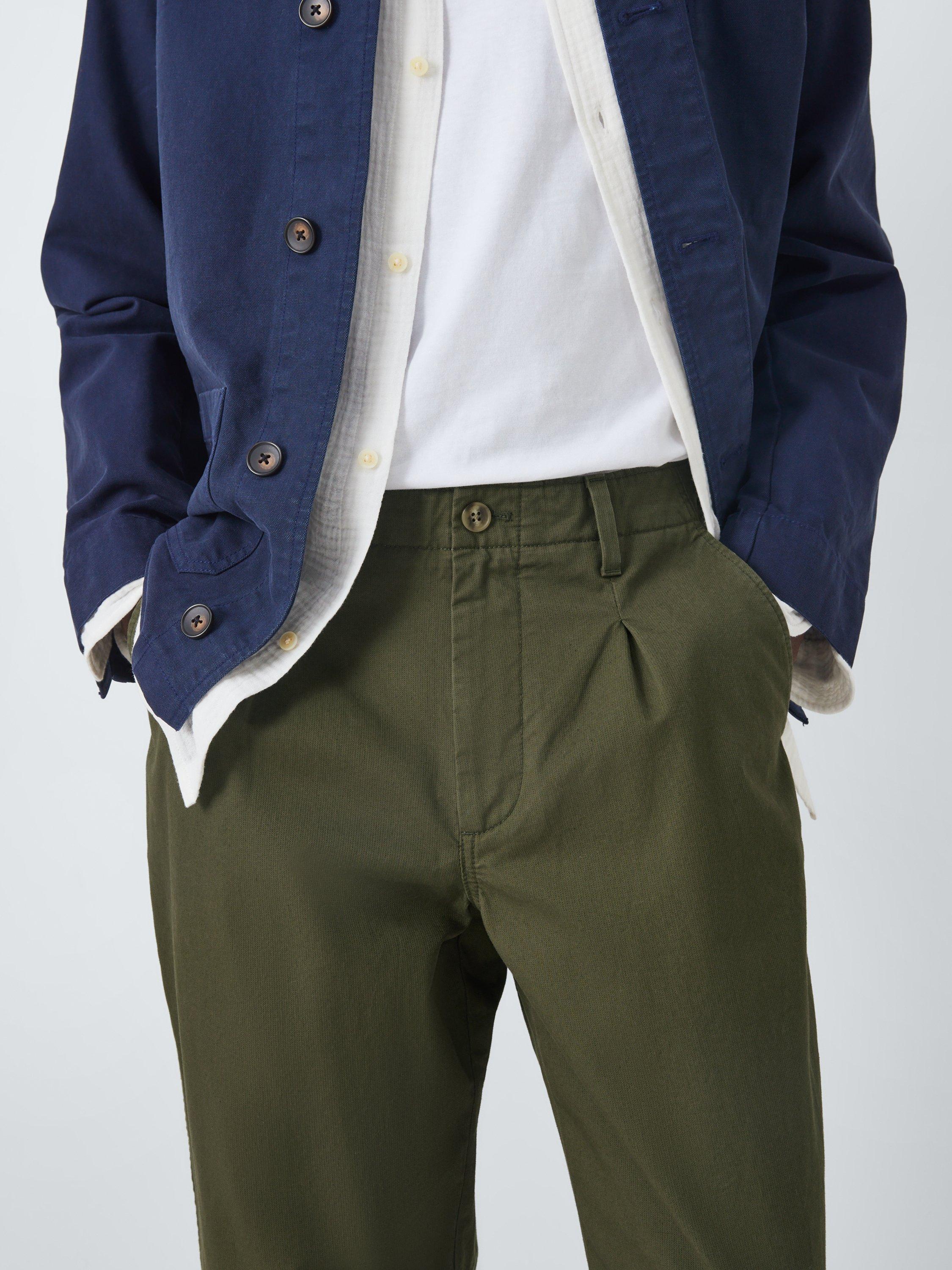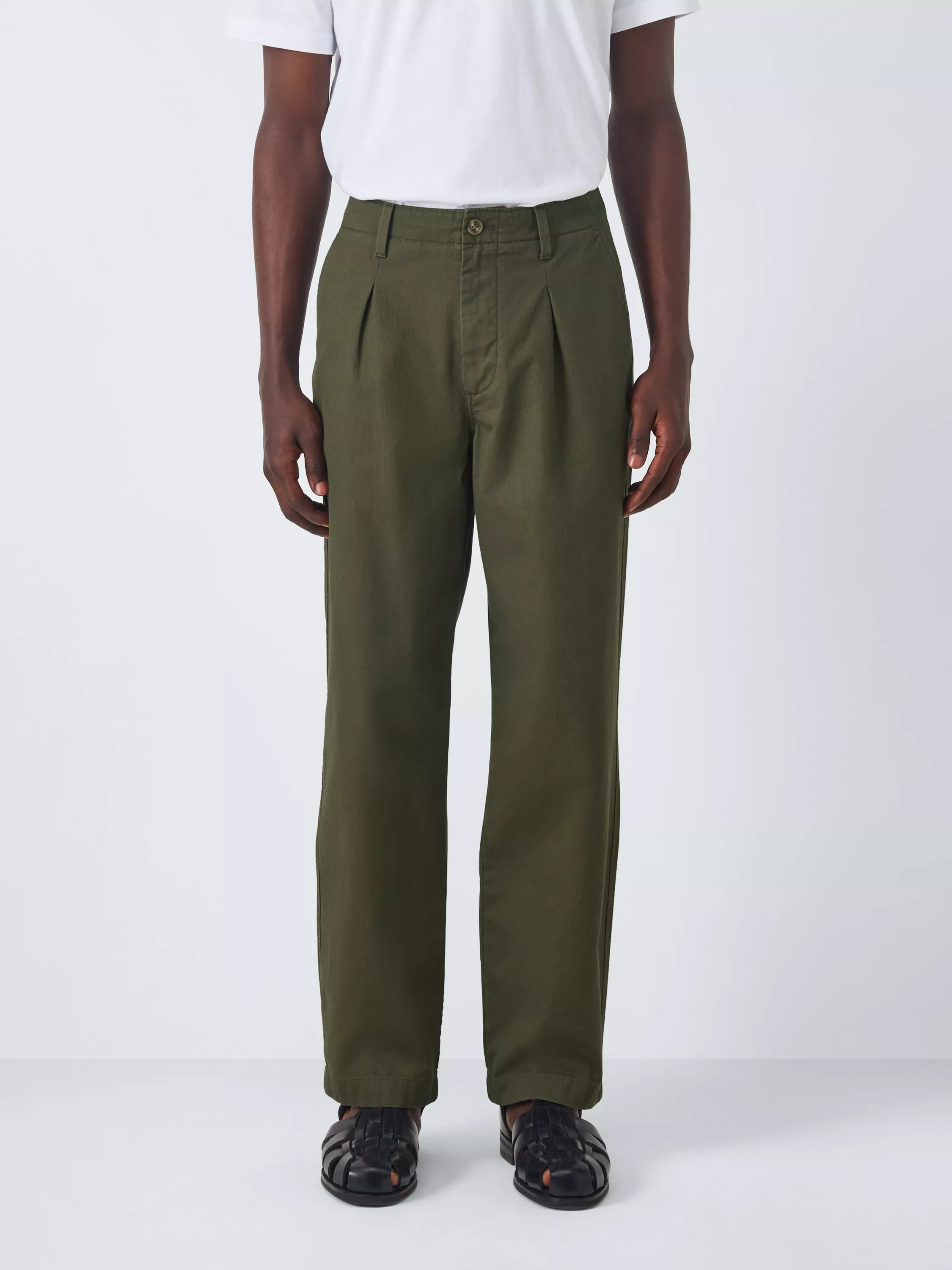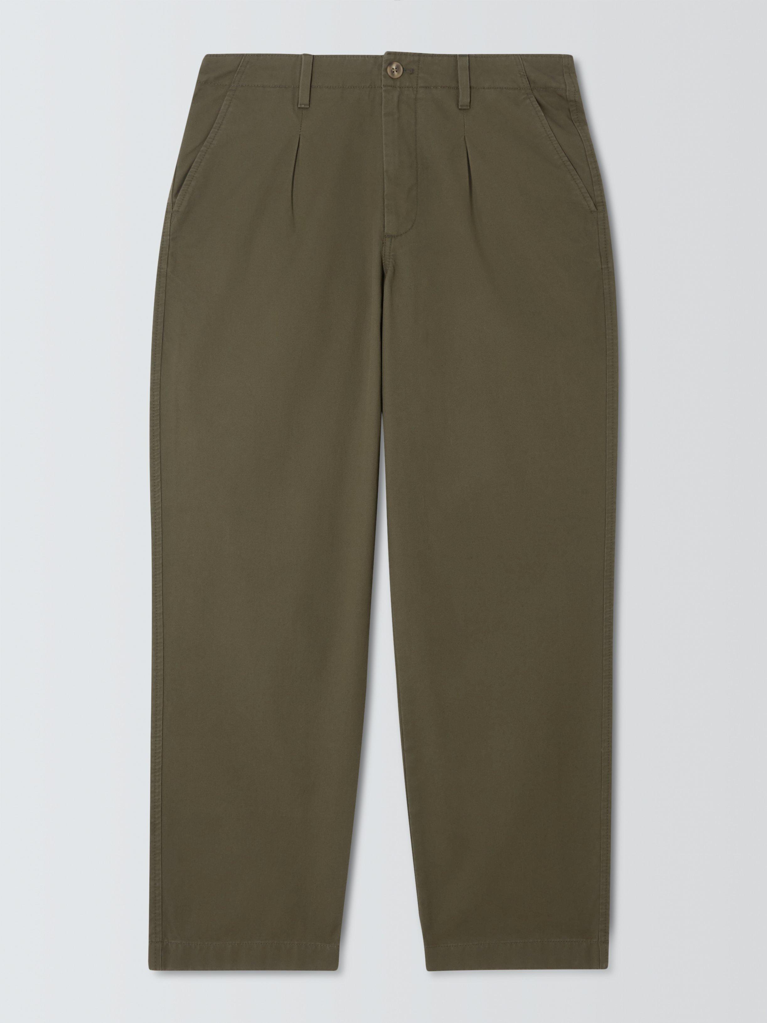 Pleat front chinos in our modern baggy fit, styled with single pleats at the front. Designed with back patch pockets, slant entry pockets, zip fly fastening and belt loops. Team with anything from a tucked-in shirt to a hoodie or a cotton t-shirt.