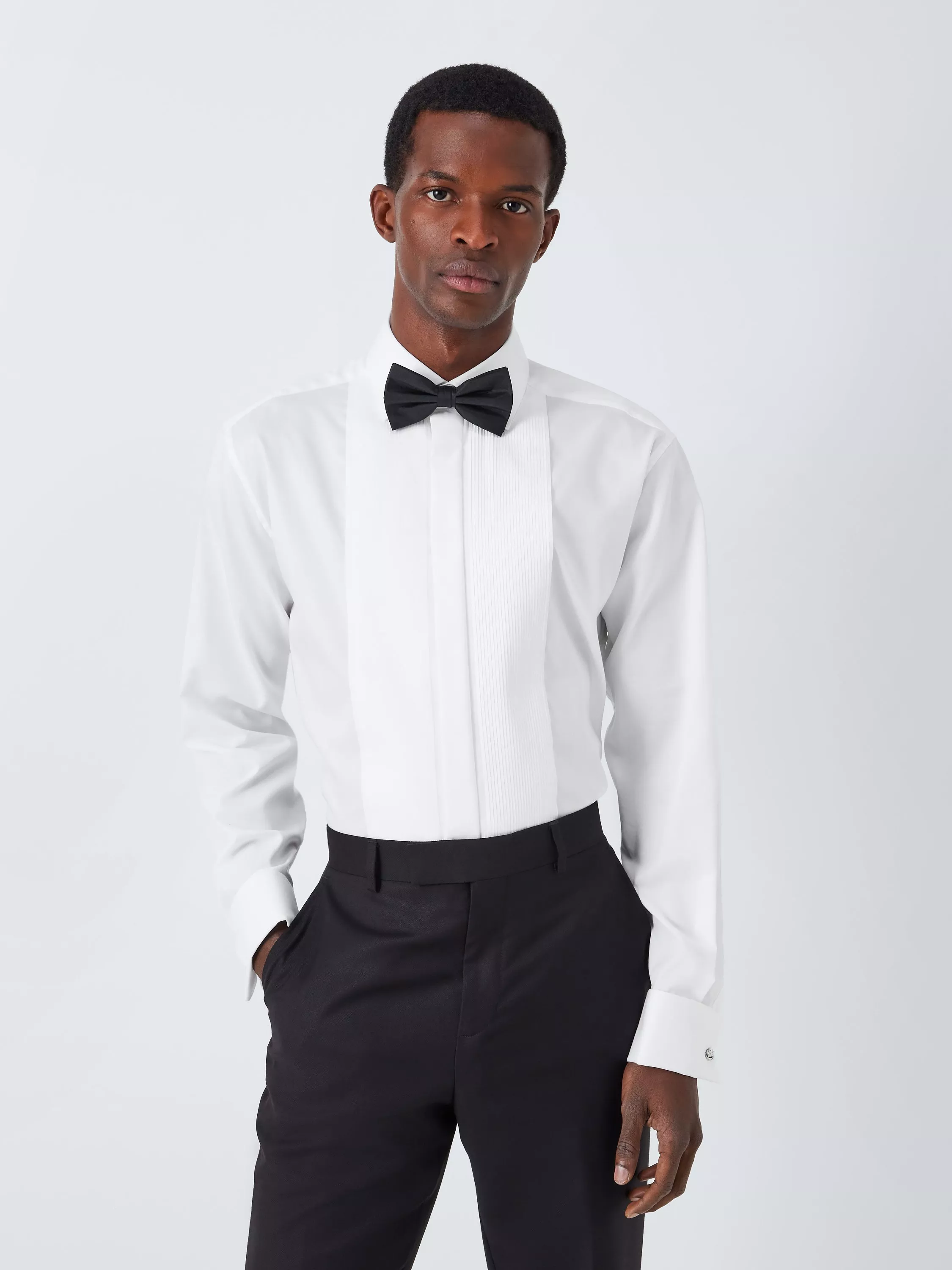 Framed by a point collar and finished witha hidden button placket, this tailored fit shirt sits closer to the chest and waist whilst still leaving room enough to not feel constricted. Pleated shirts are a great option when it comes to black tie attire, simply pair them with a ready-tied bow tie to take the stress out of occasion styling.