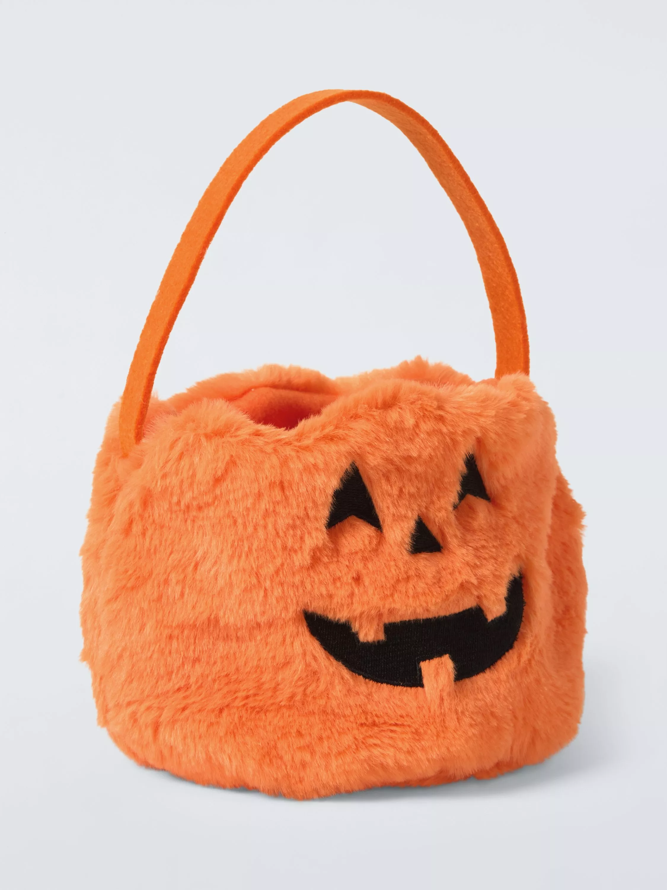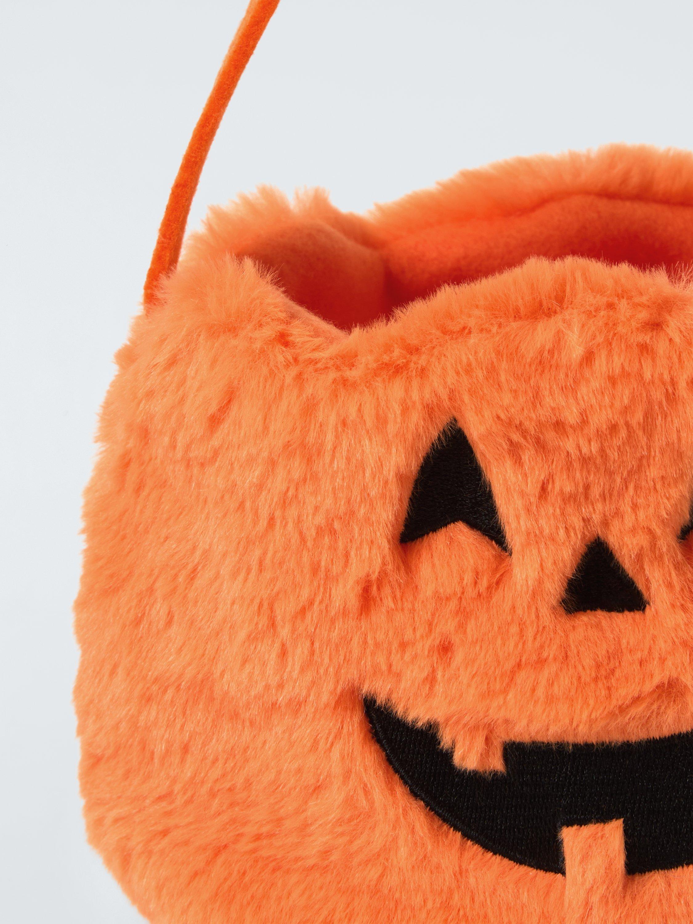 This plush pumpkin bag is the perfect accessory for trick or treaters.