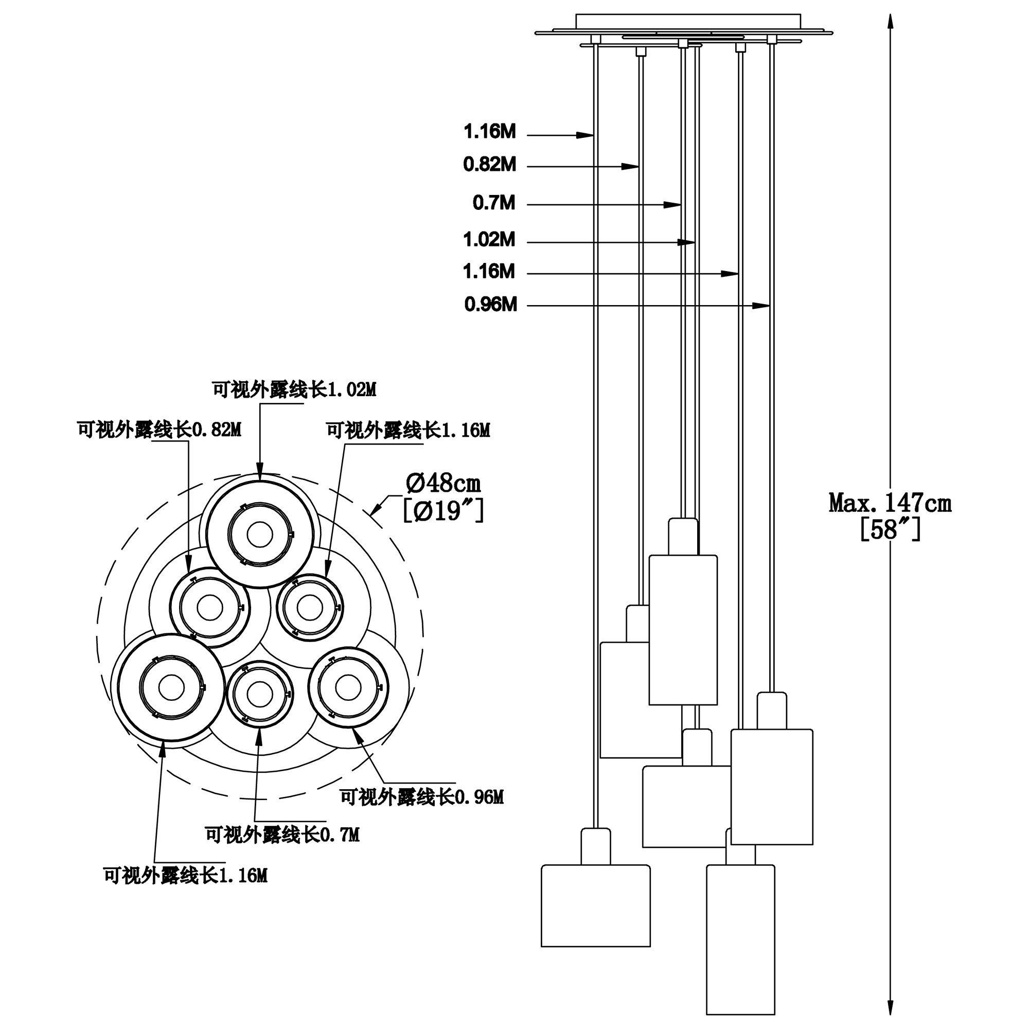 Easy to adjust the height of each pendant to suit your space, this statement piece will look impressive when suspended above a dining table.