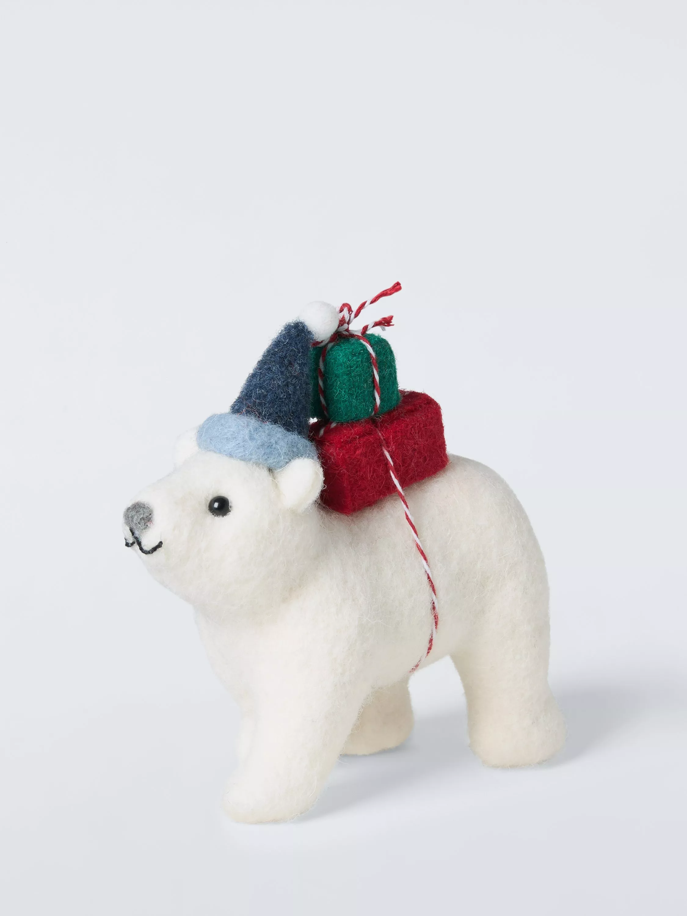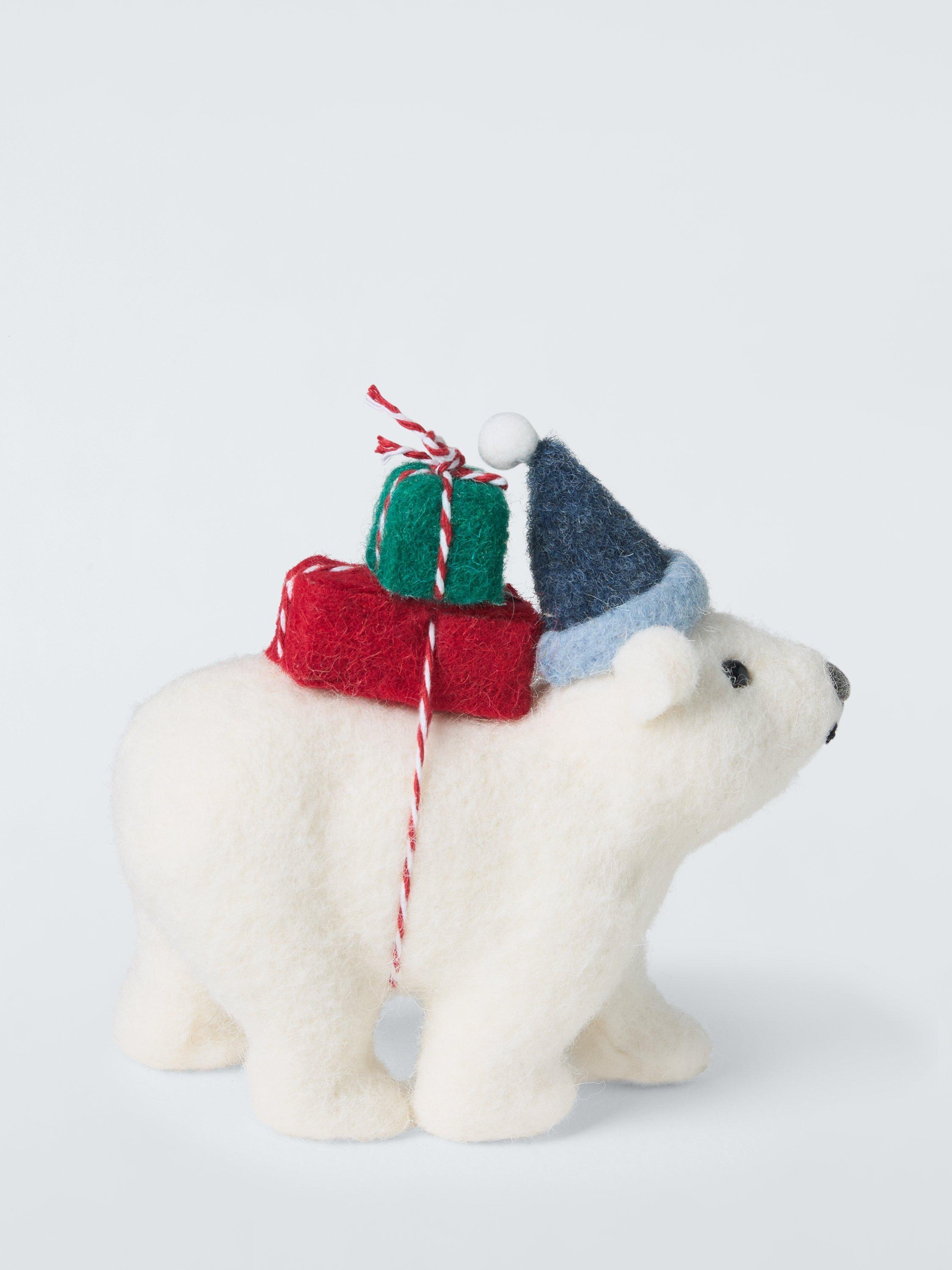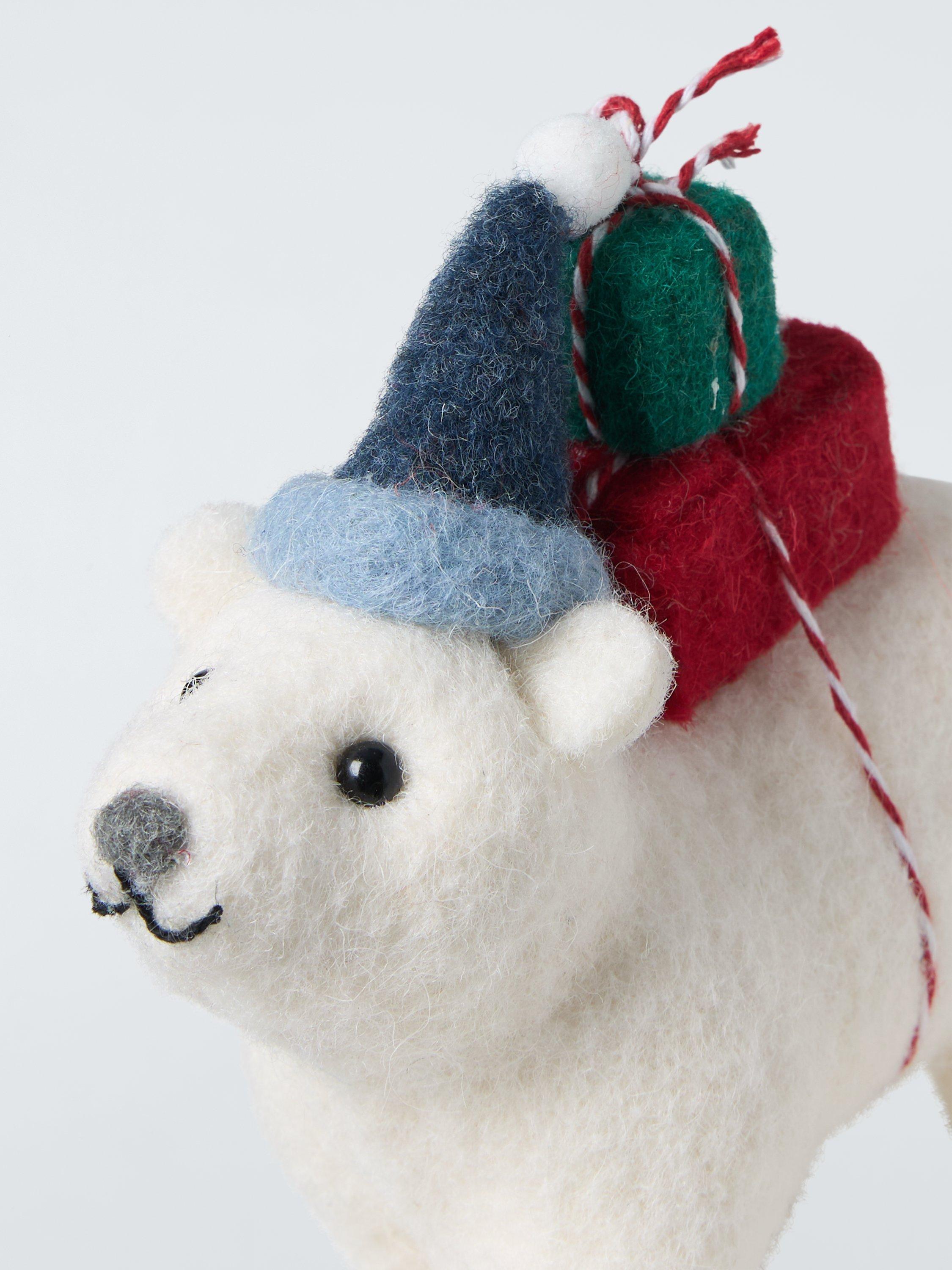 Travelling across snow and ice, this felt polar bear brings festive gifts and wears a jaunty Santa hat.
