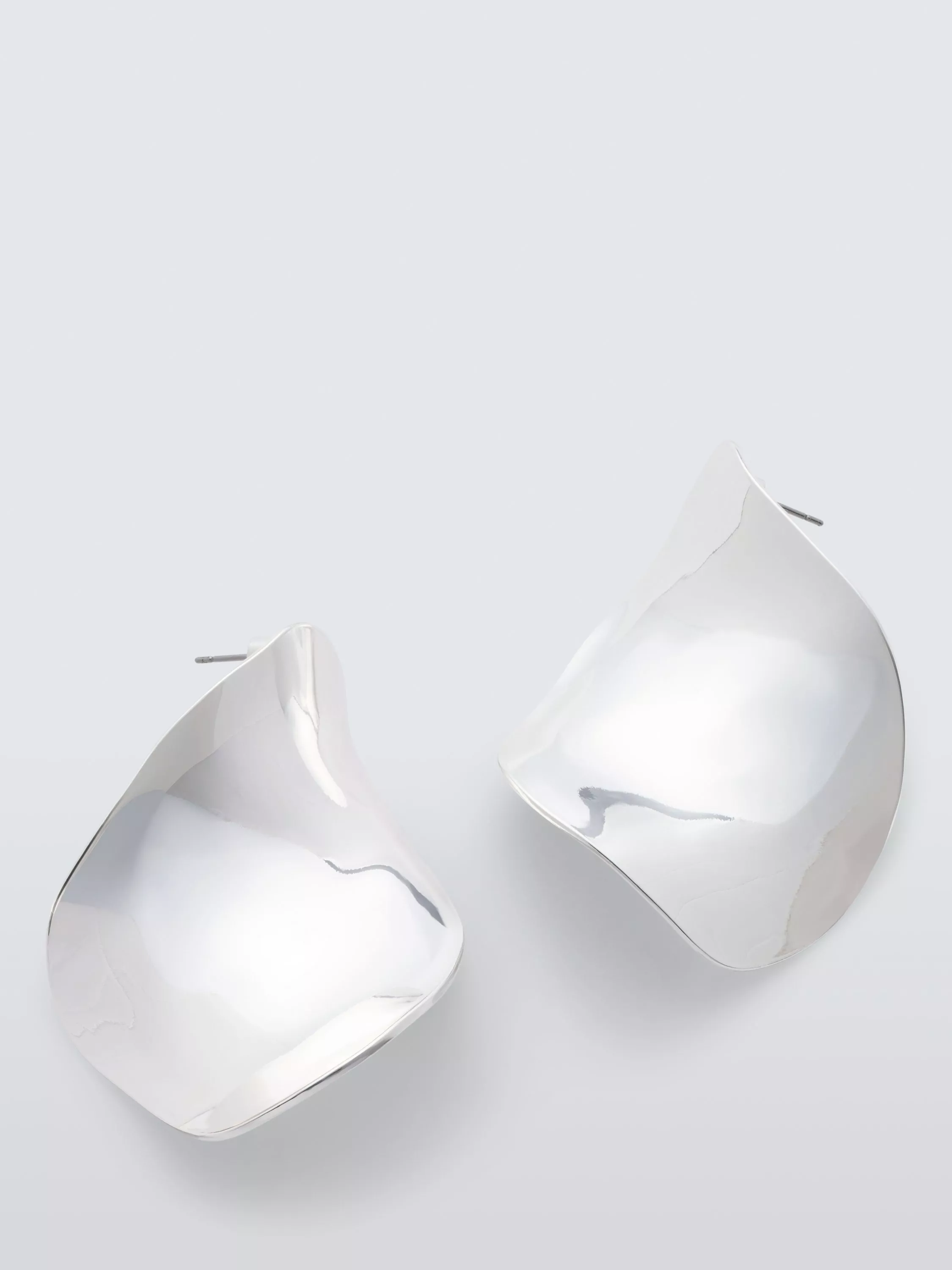 Highly polished curved statement earrings, crafted in silver plating, and suitable for pierced ears only.