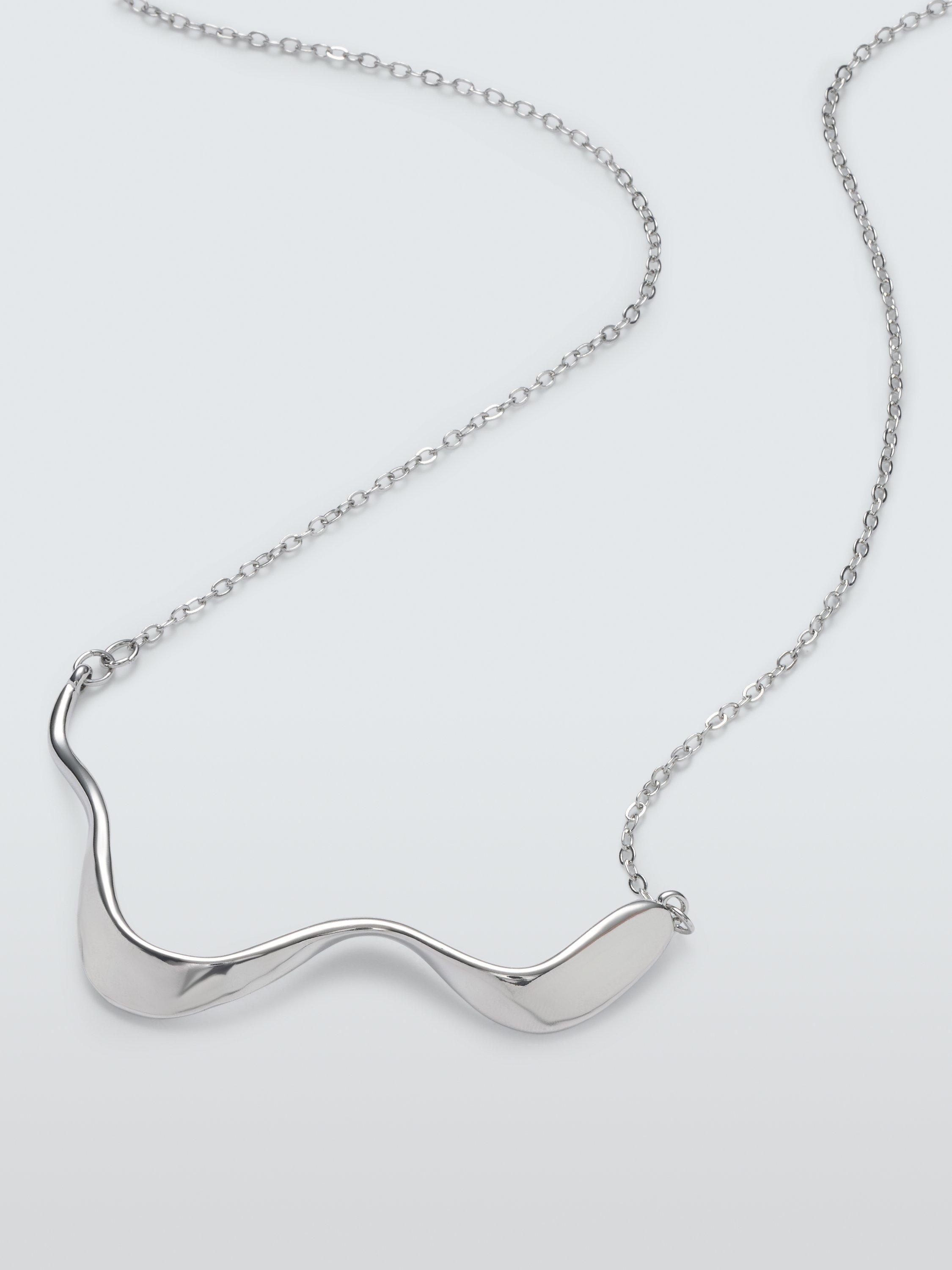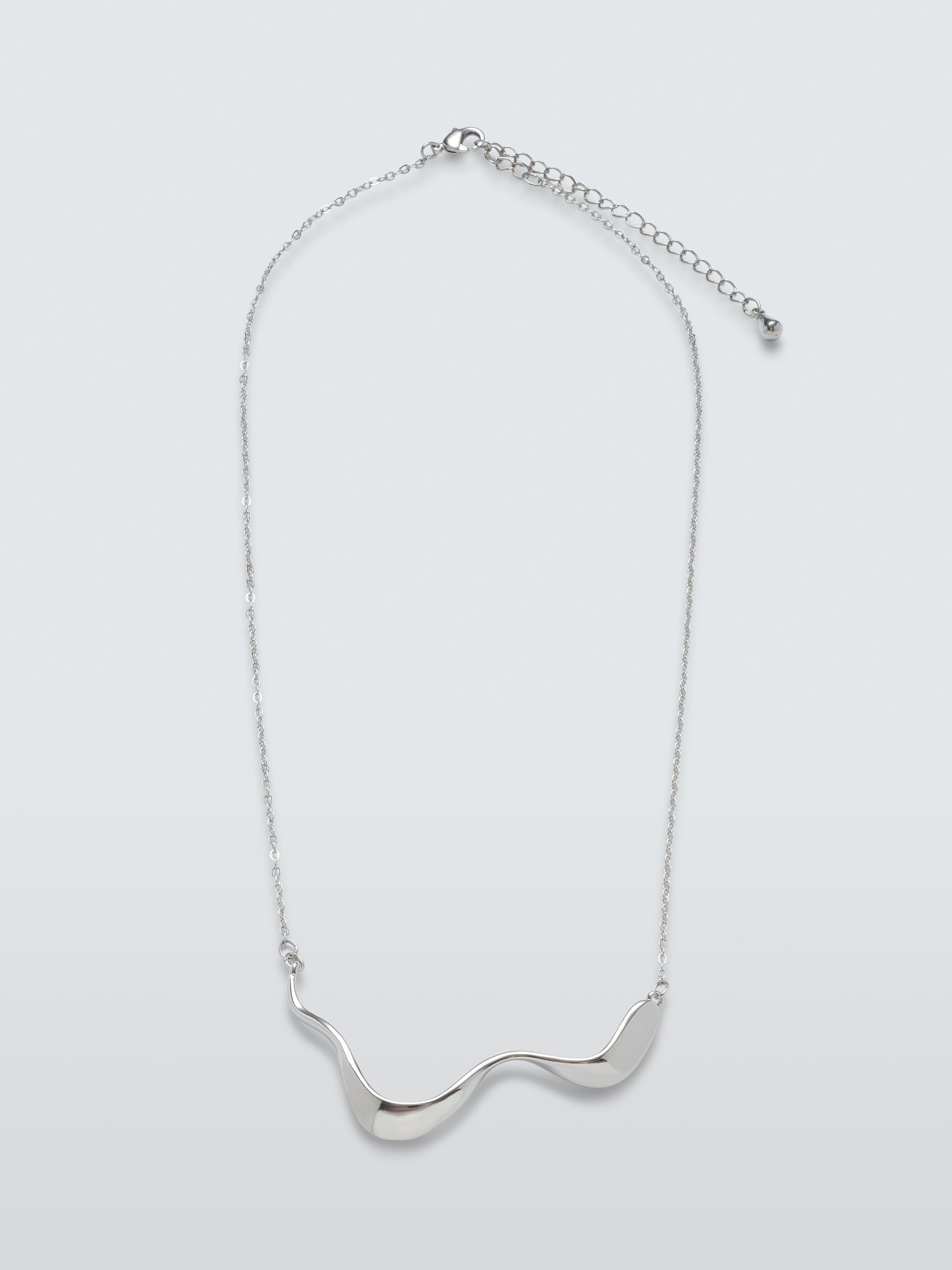 A striking, highly polished wavy bar necklace, designed for charm and comfort. Its secure fastening ensures effortless wear, while the thoughtfully crafted short length provides a stylish finish to any outfit, whether you're dressing up or down.