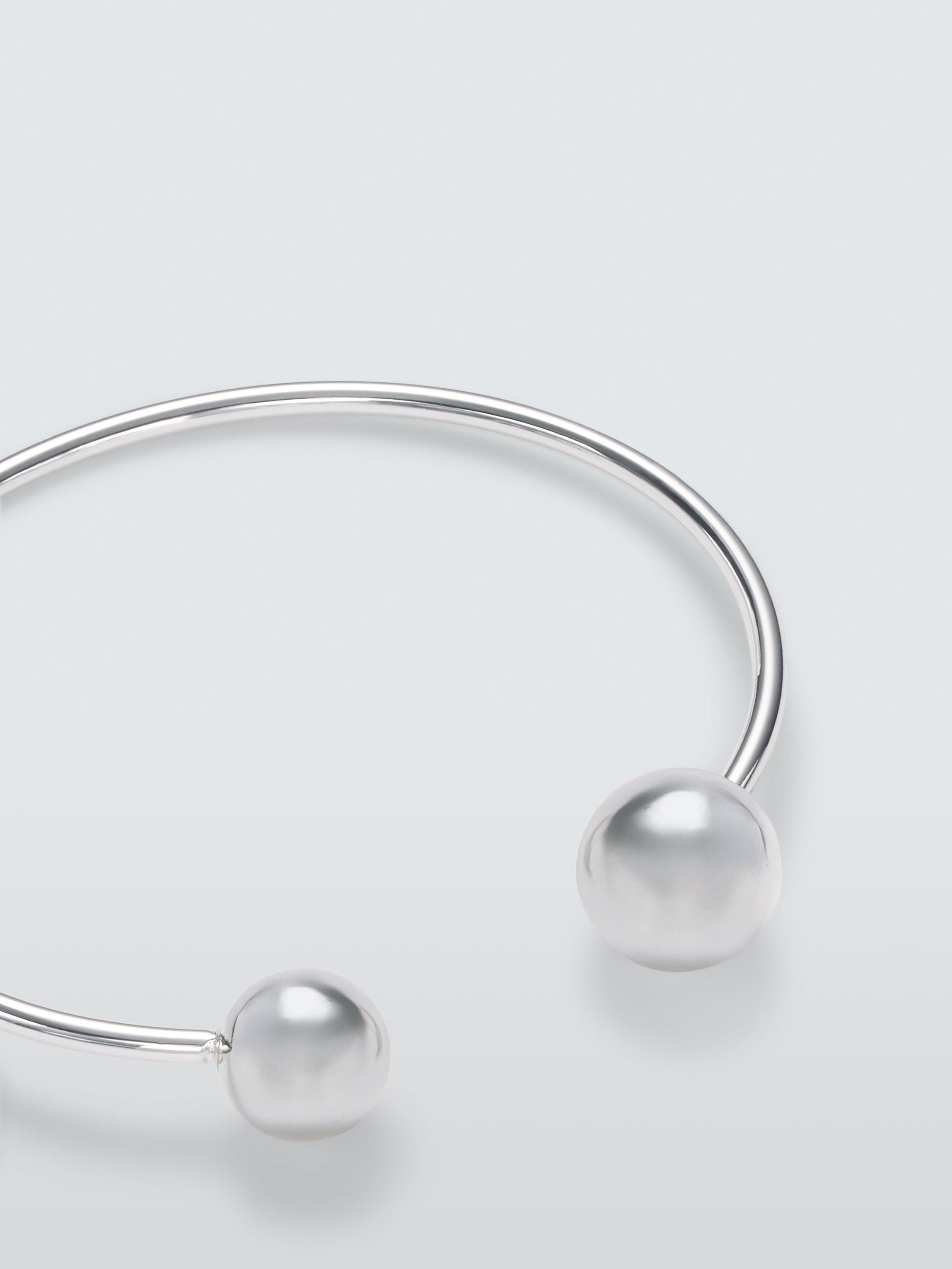 A wear anytime, anywhere polished open bangle with sphere ends.