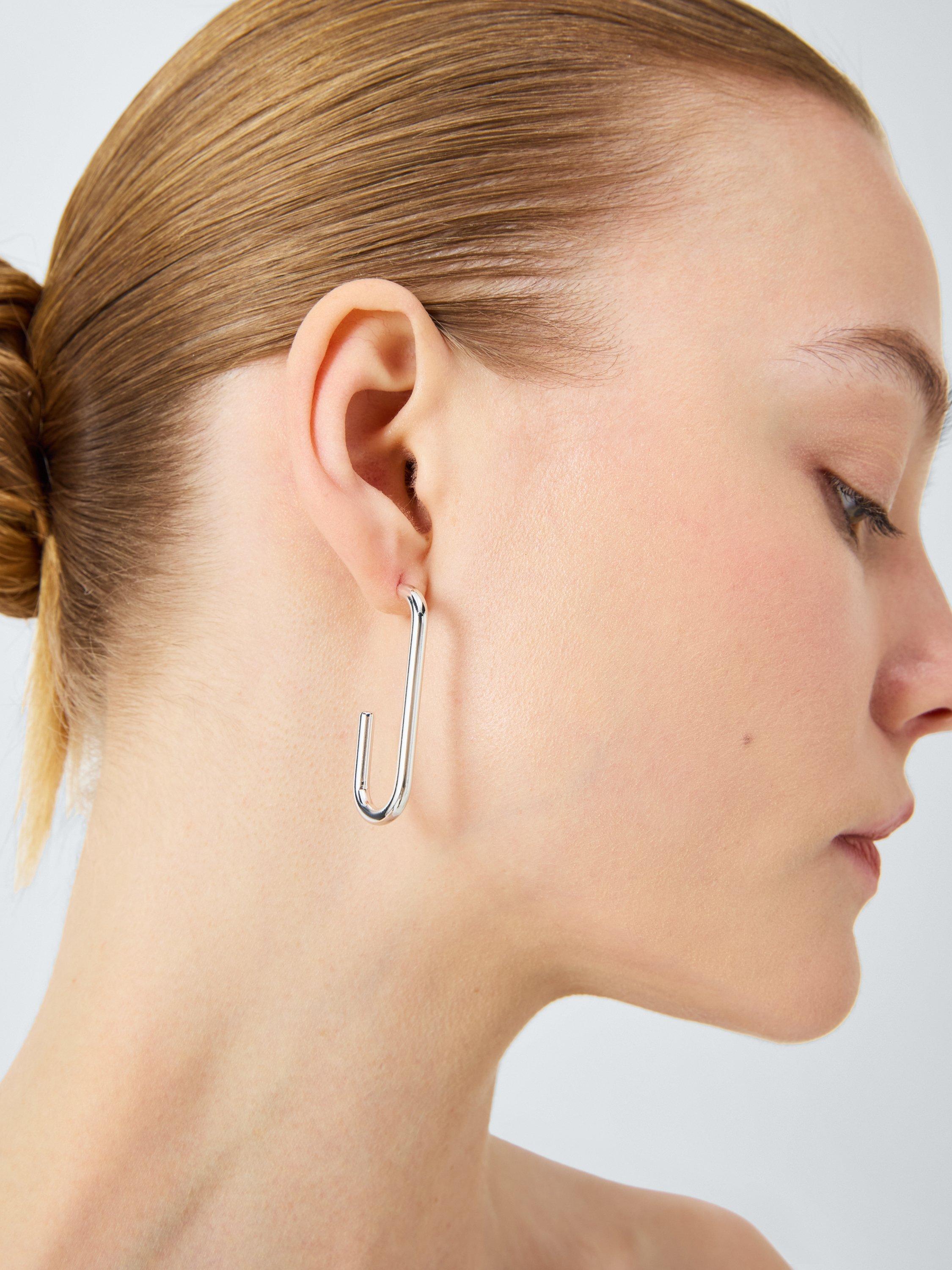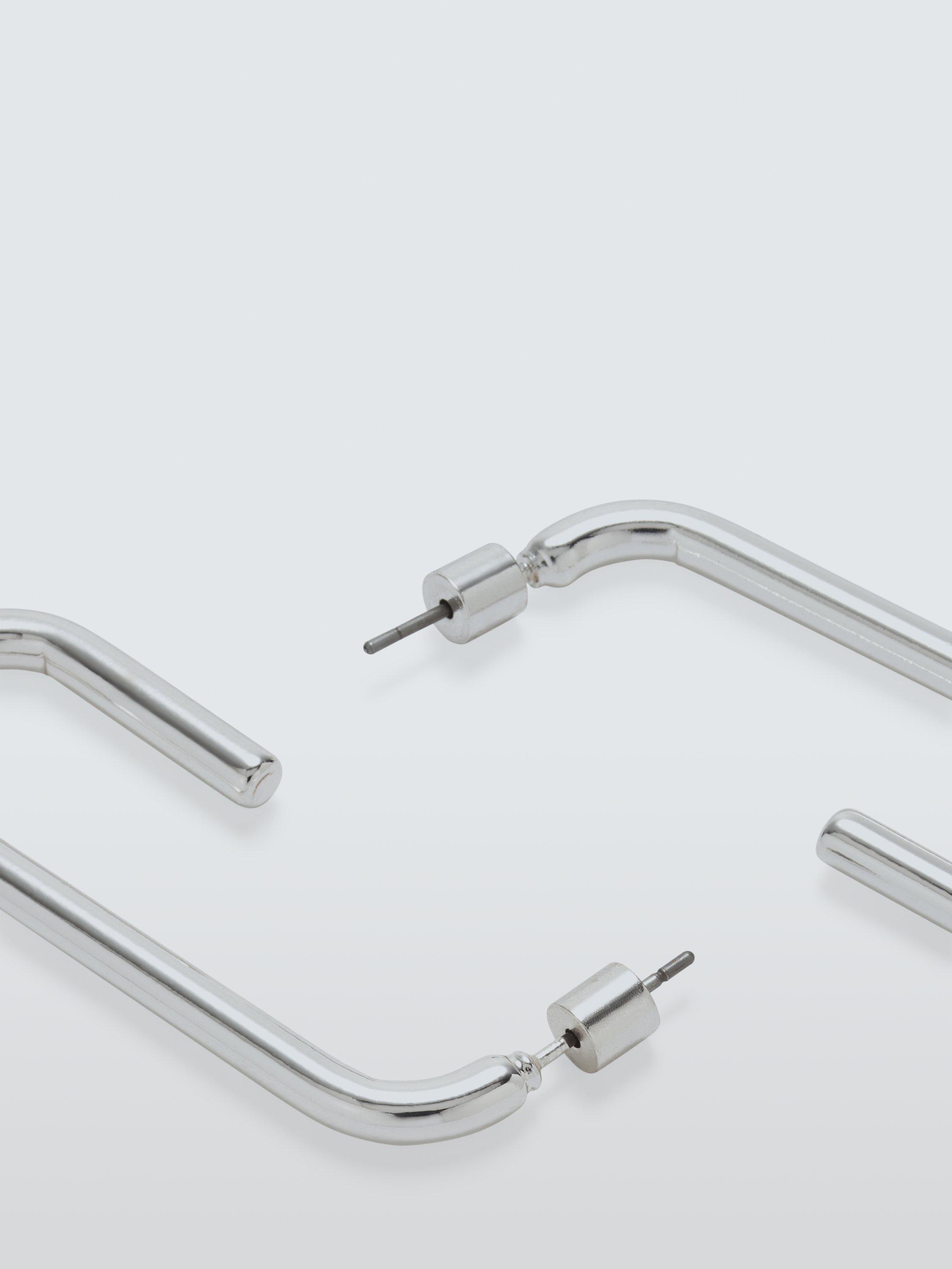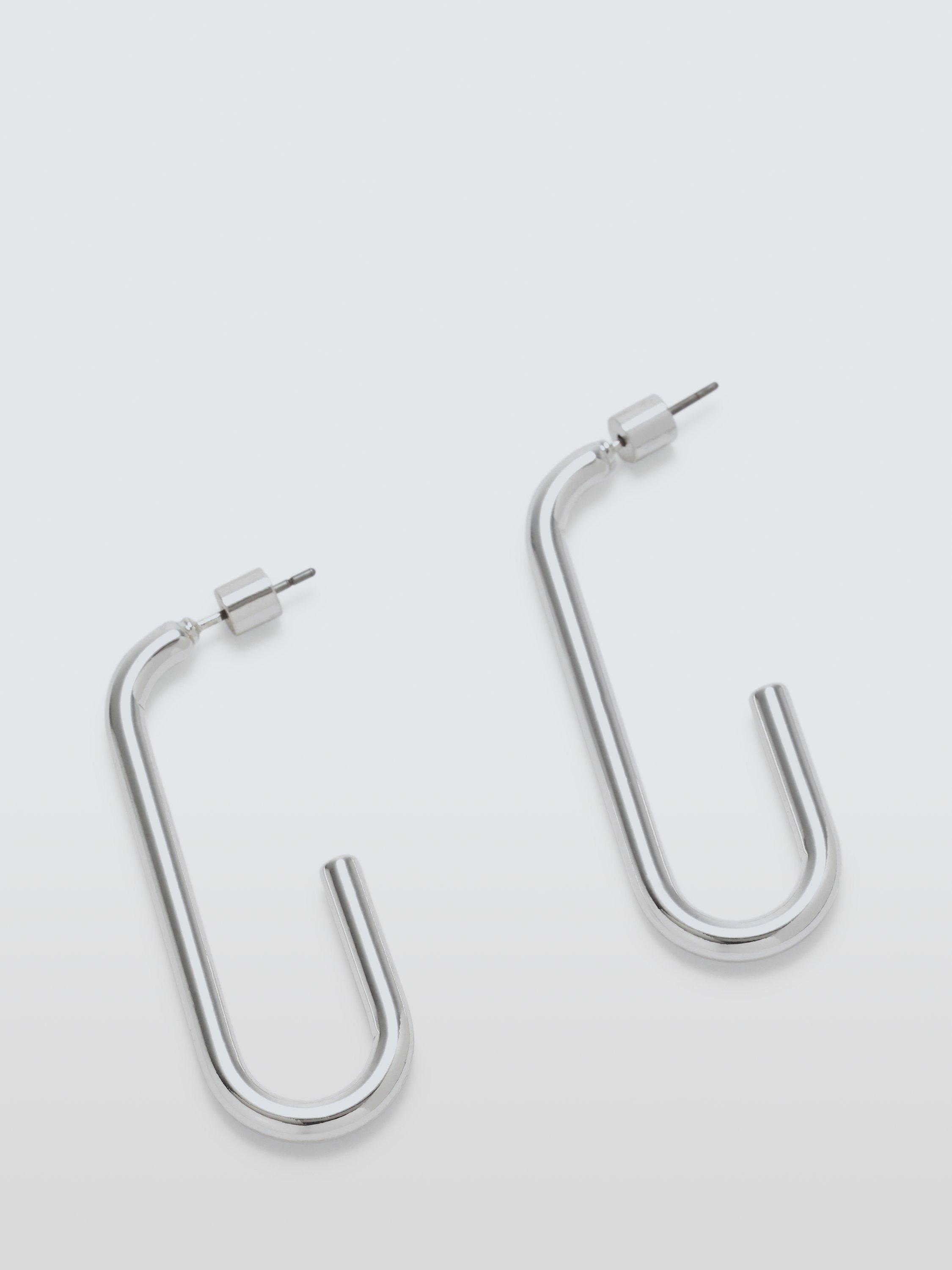 A modern take on traditional hoops, these earrings have a rounded rectangular, open-ended design. They are highly polished for an eye-catching finish.