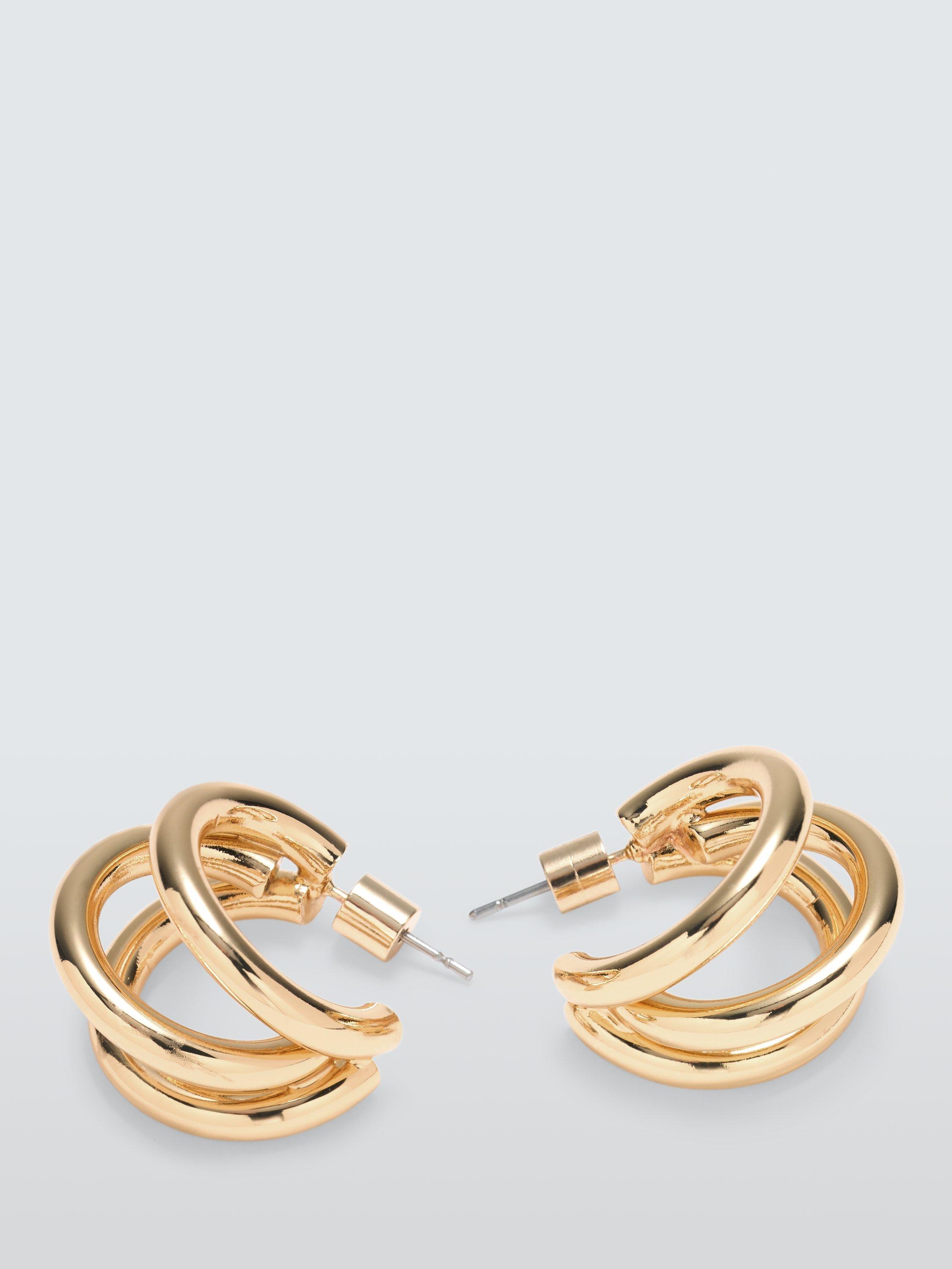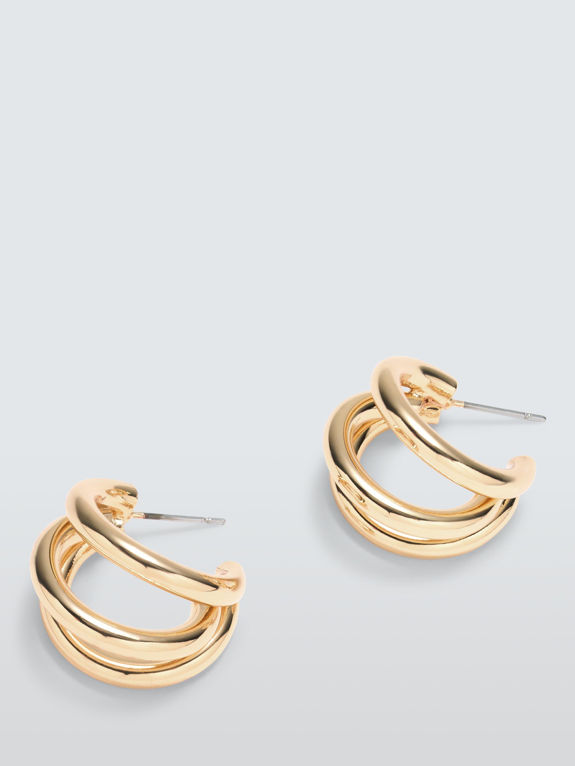 A pre-stacked design, these demi hoop earrings come with a triple-layered effect. For pierced ears only.