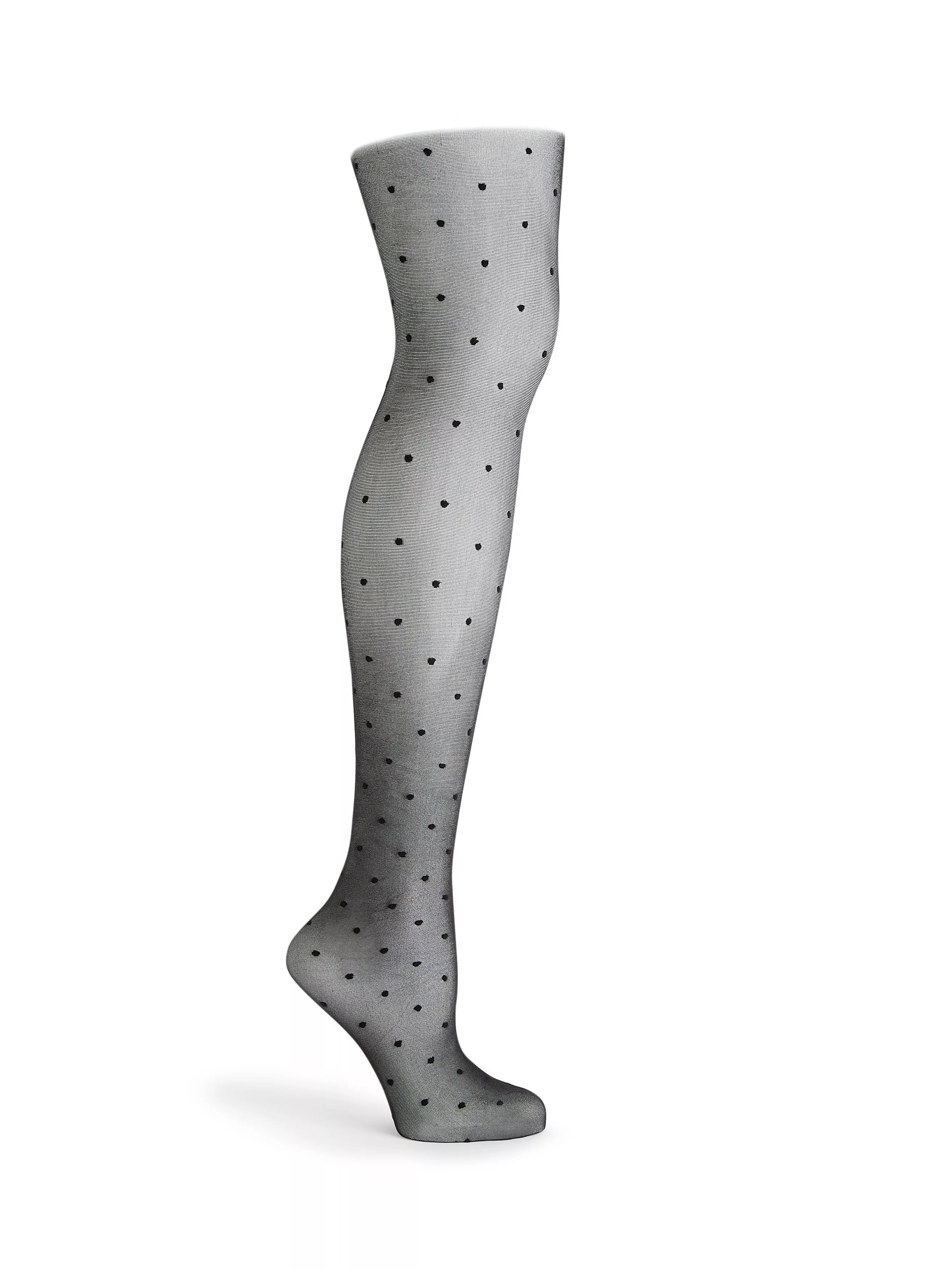Tights are more than just a piece of fabric to keep your legs warm. Think of them as any other fashion accessory you can use to show off a little personality and bring an extra boost to the rest of your outfit. With a polka dot pattern, these tights look great with a LBD and oversized blazer.