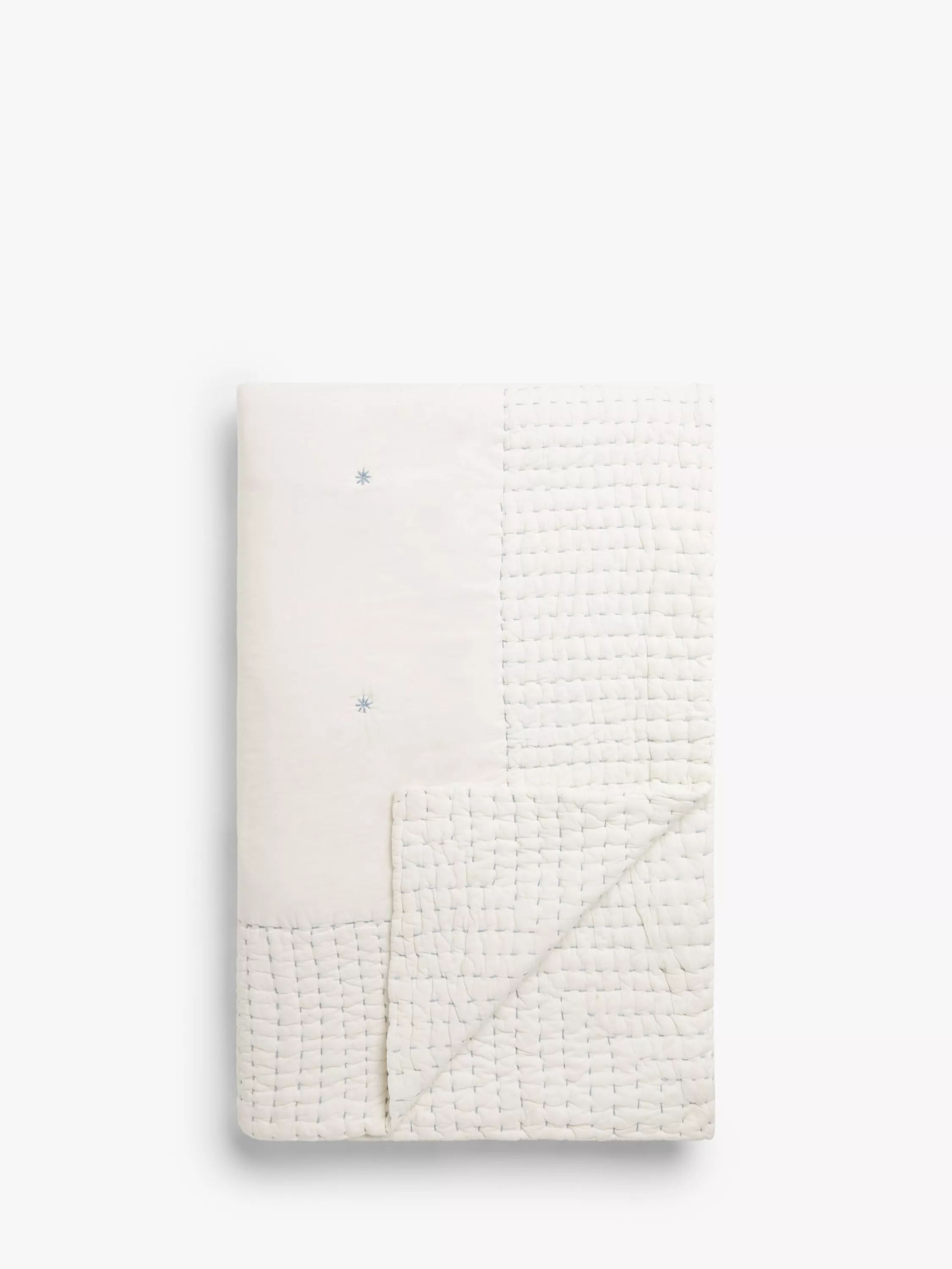 Stitched with polka dots, this quilted bedspread makes a cosy extra layer. Made from soft and lightweight cotton voile, it will help keep them warm and comfortable on chillier nights.