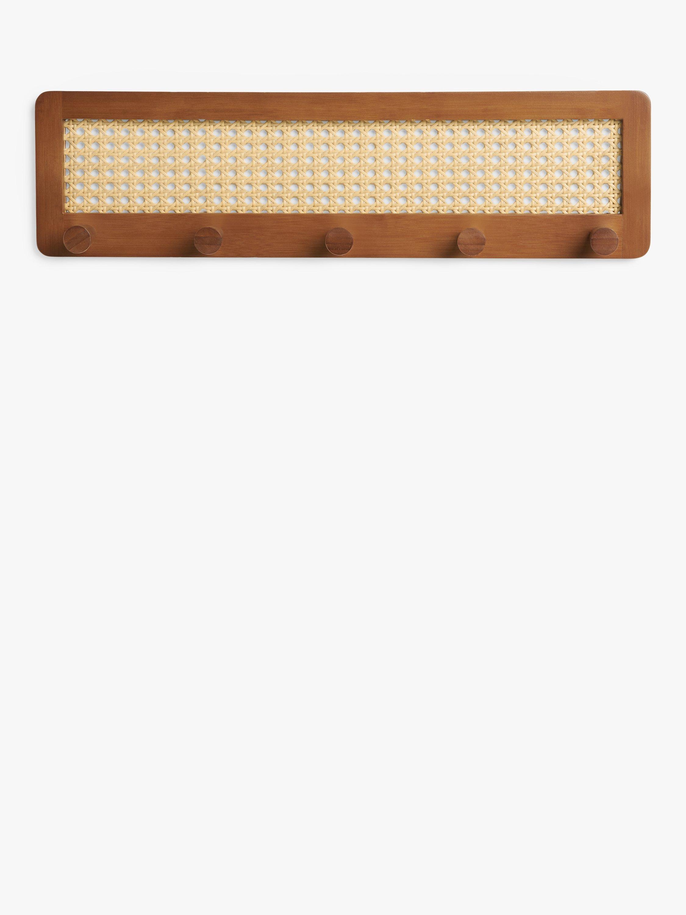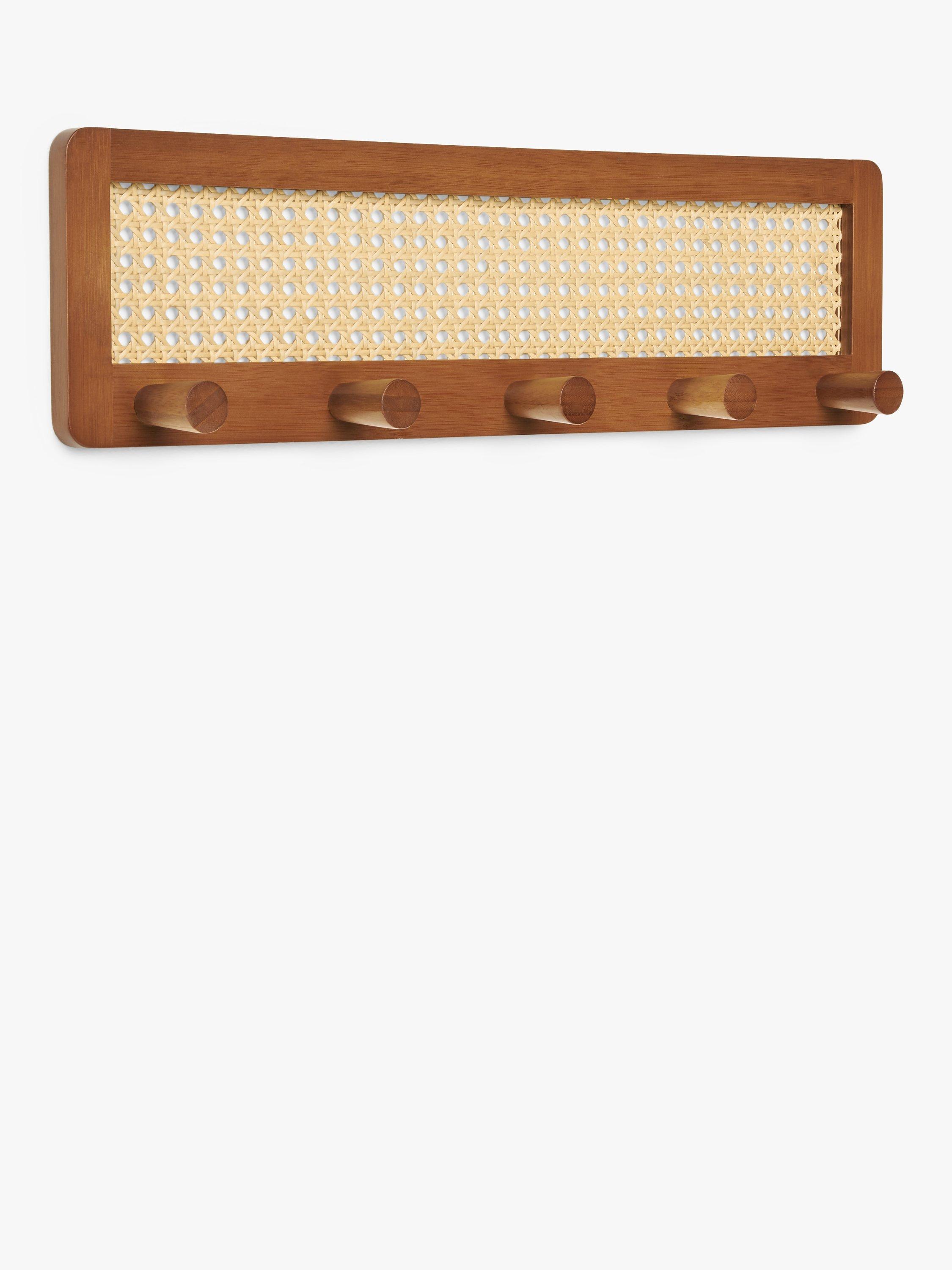 This attractive hanging rack is made from stained bamboo with a poly rattan panel. Five hanging knobs can be used for coats, jackets or accessories.
