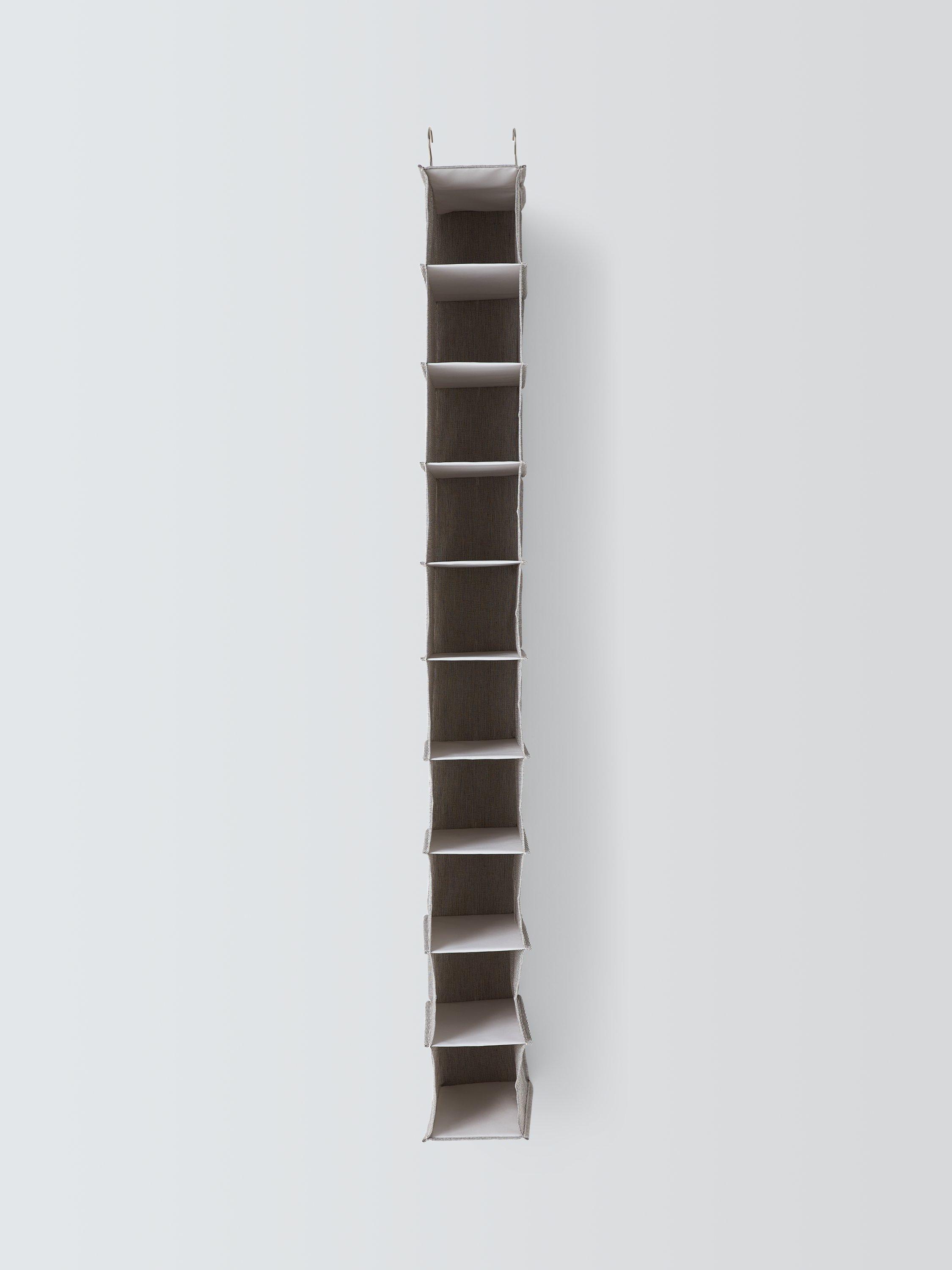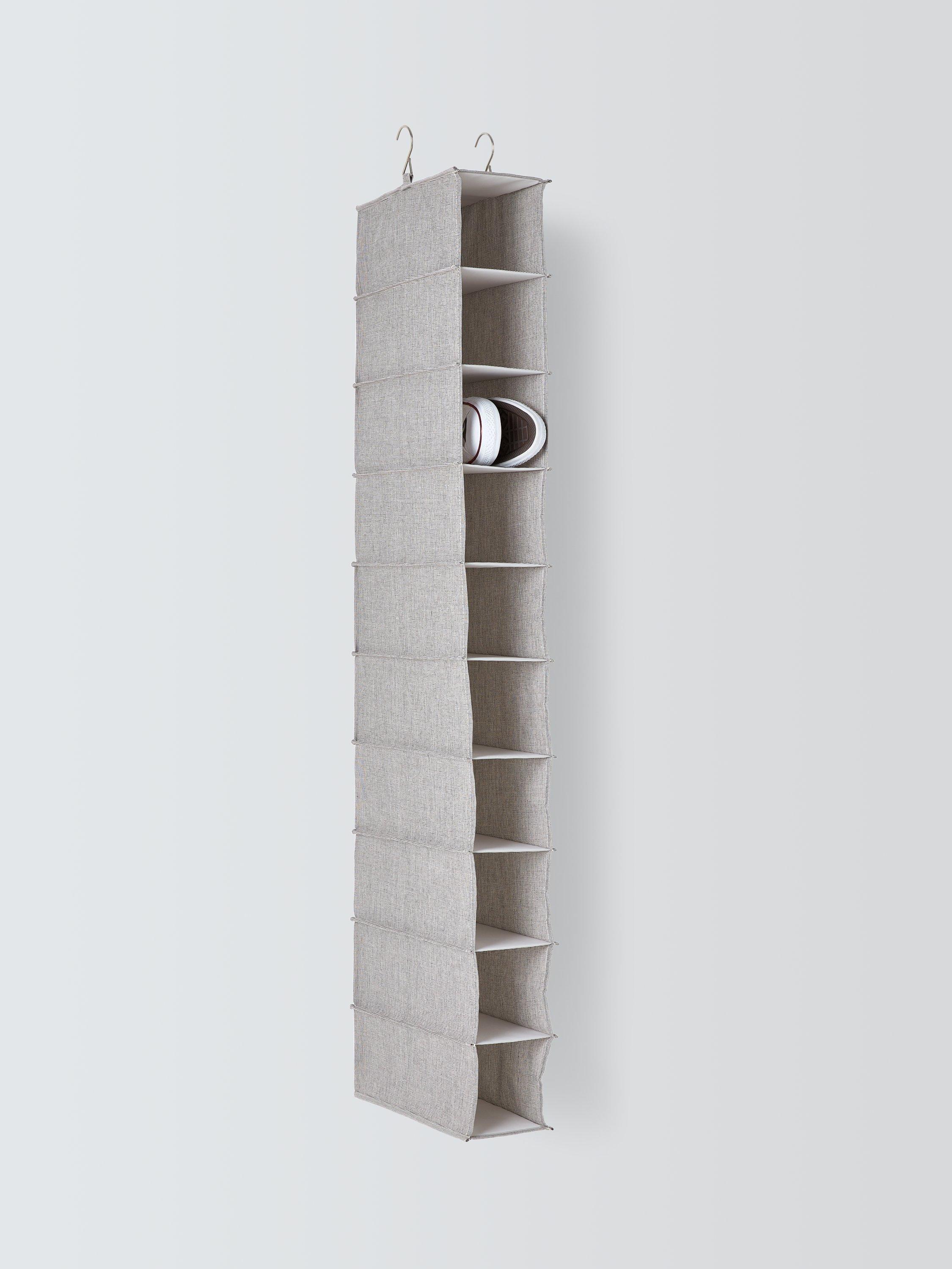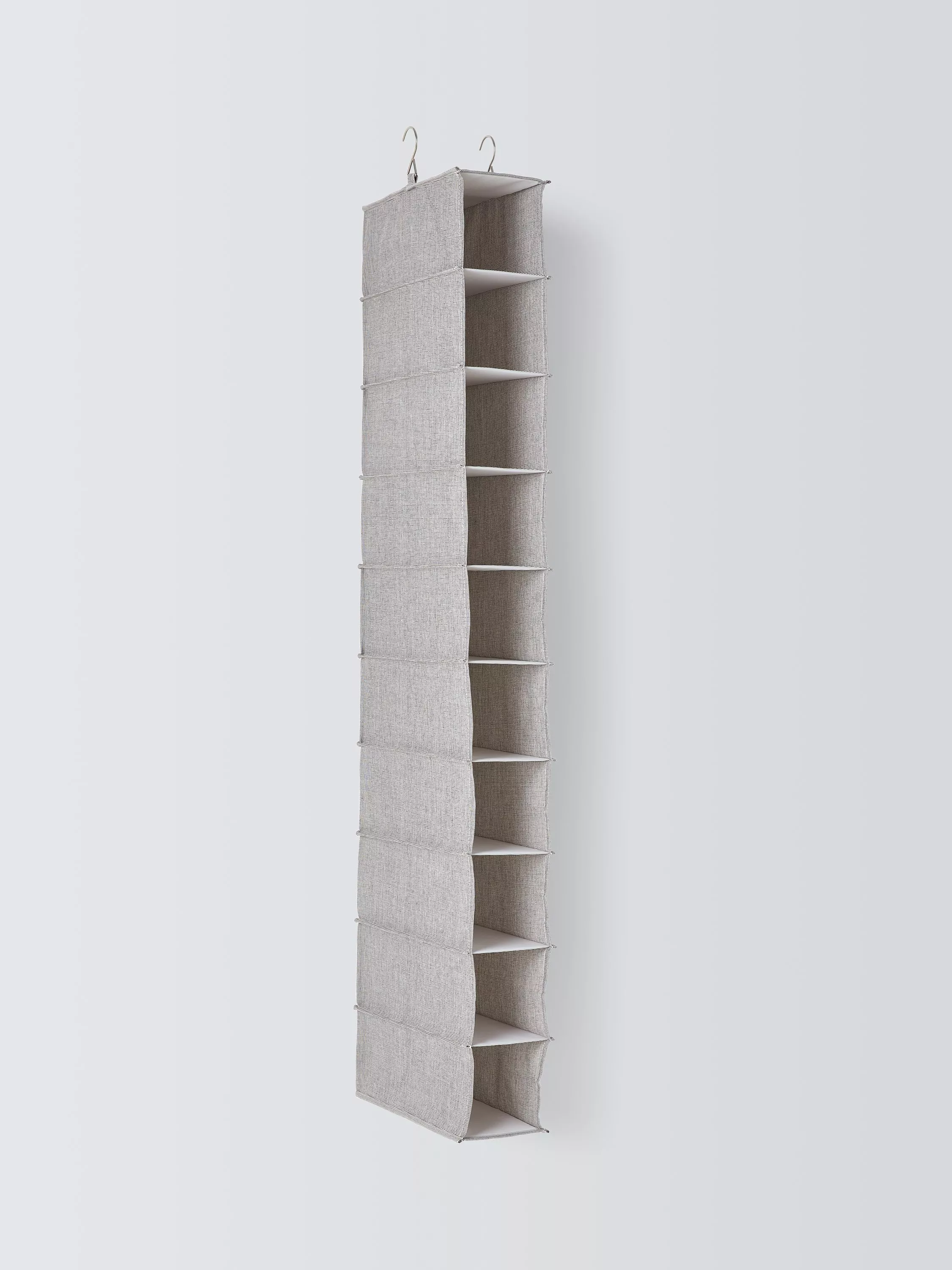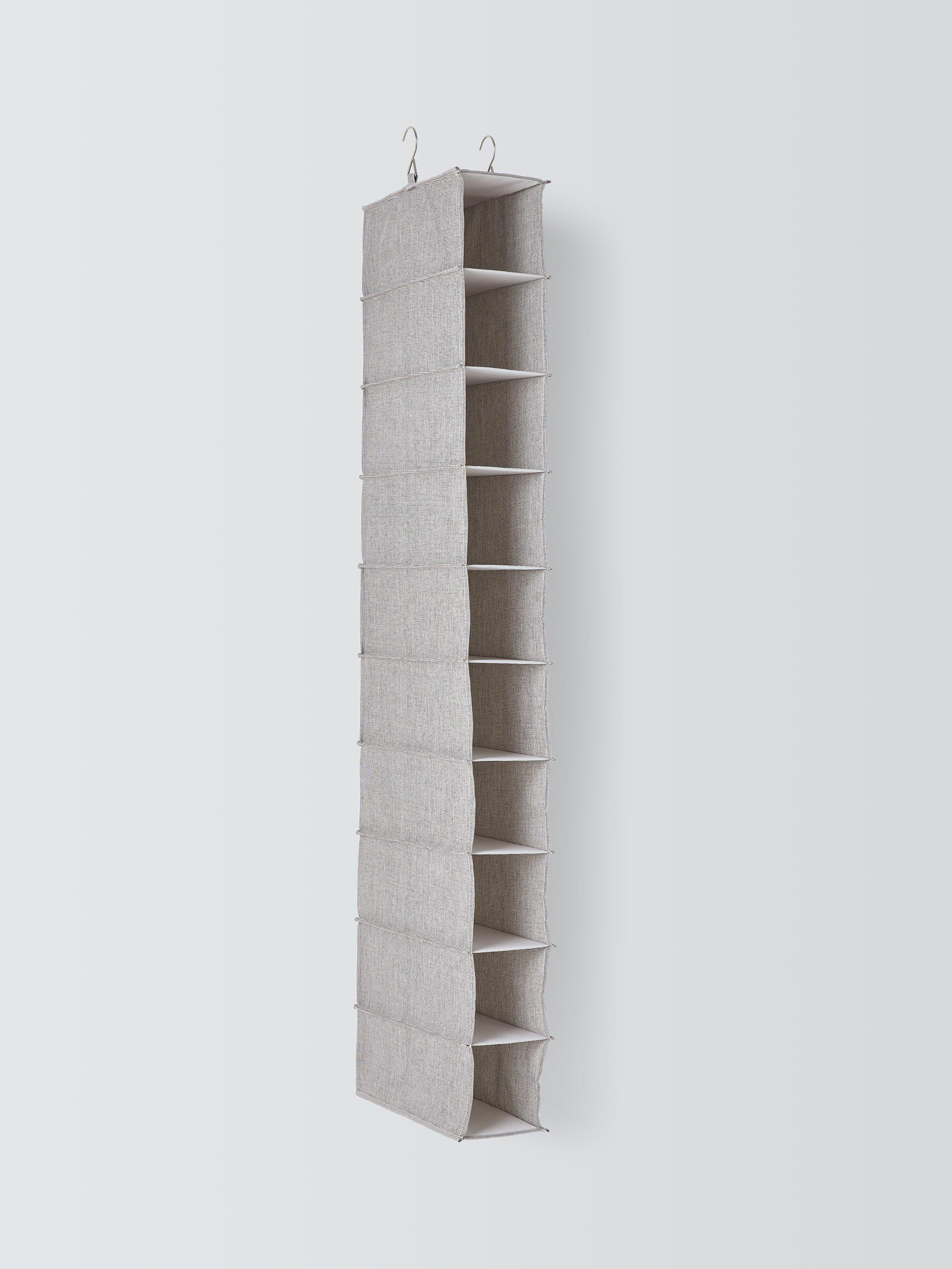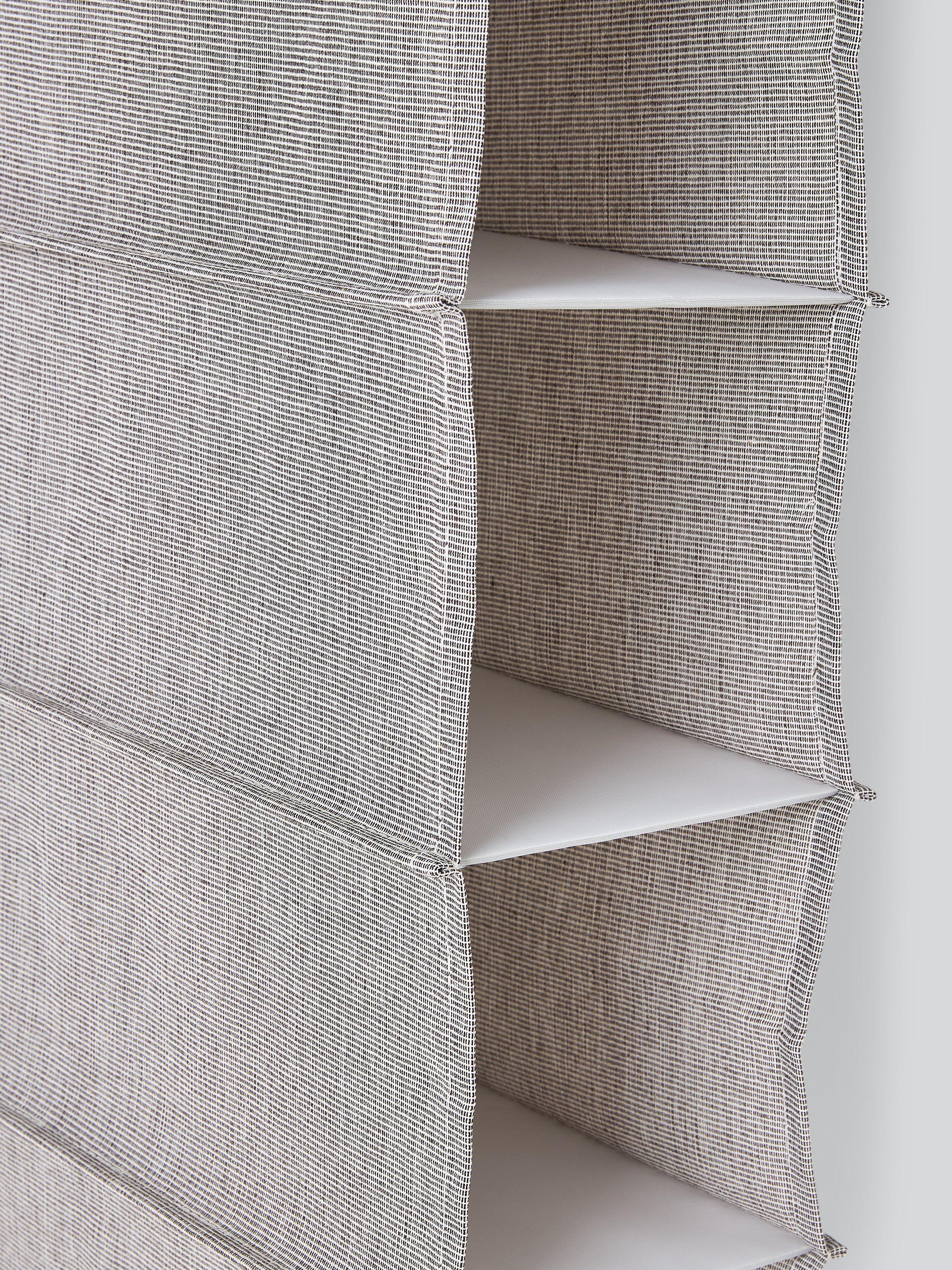 Made from polyester in a versatile grey shade, this organiser simply folds out for use in your wardrobe. Hang over the rail with the hooks attached to store sweaters, shoes and other clothes.