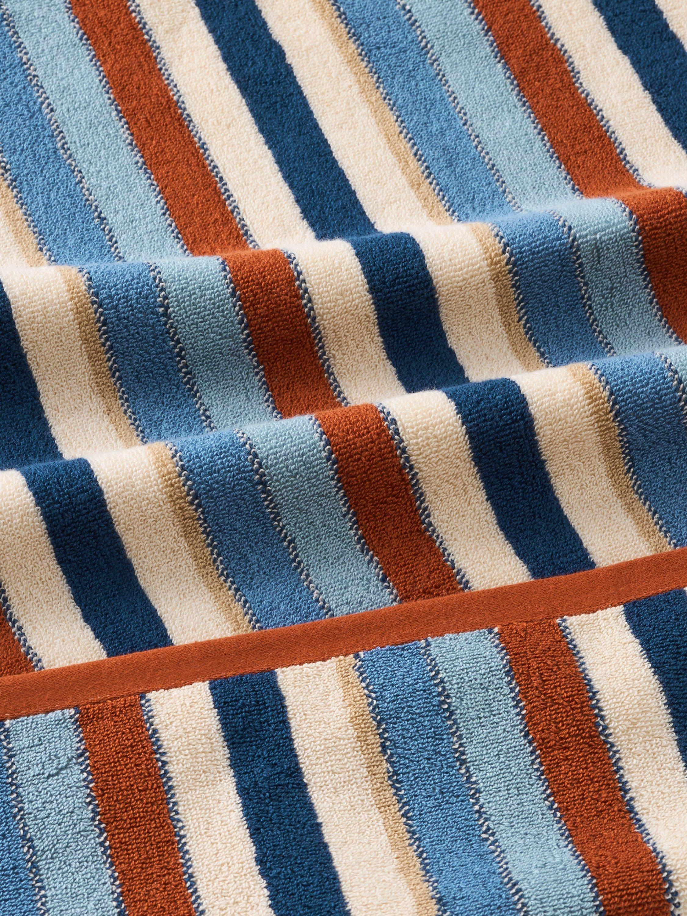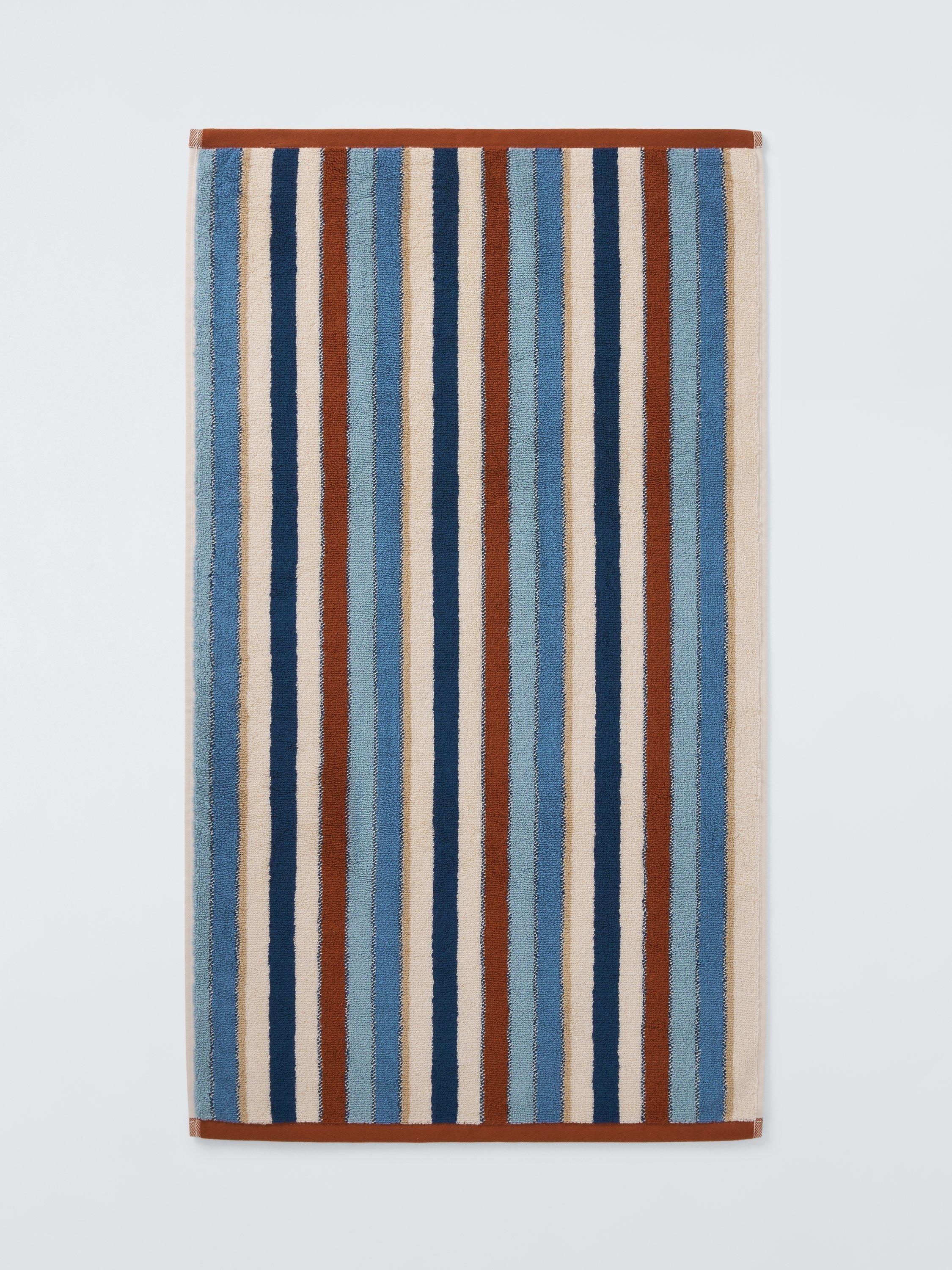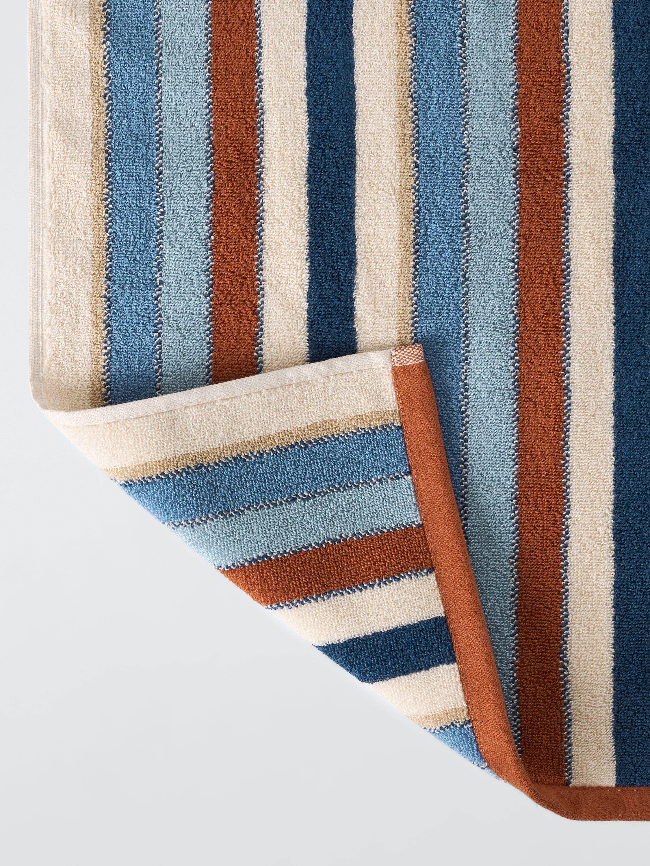 Stripe looped pile towels in beautiful earth tones for a calming bathroom space.