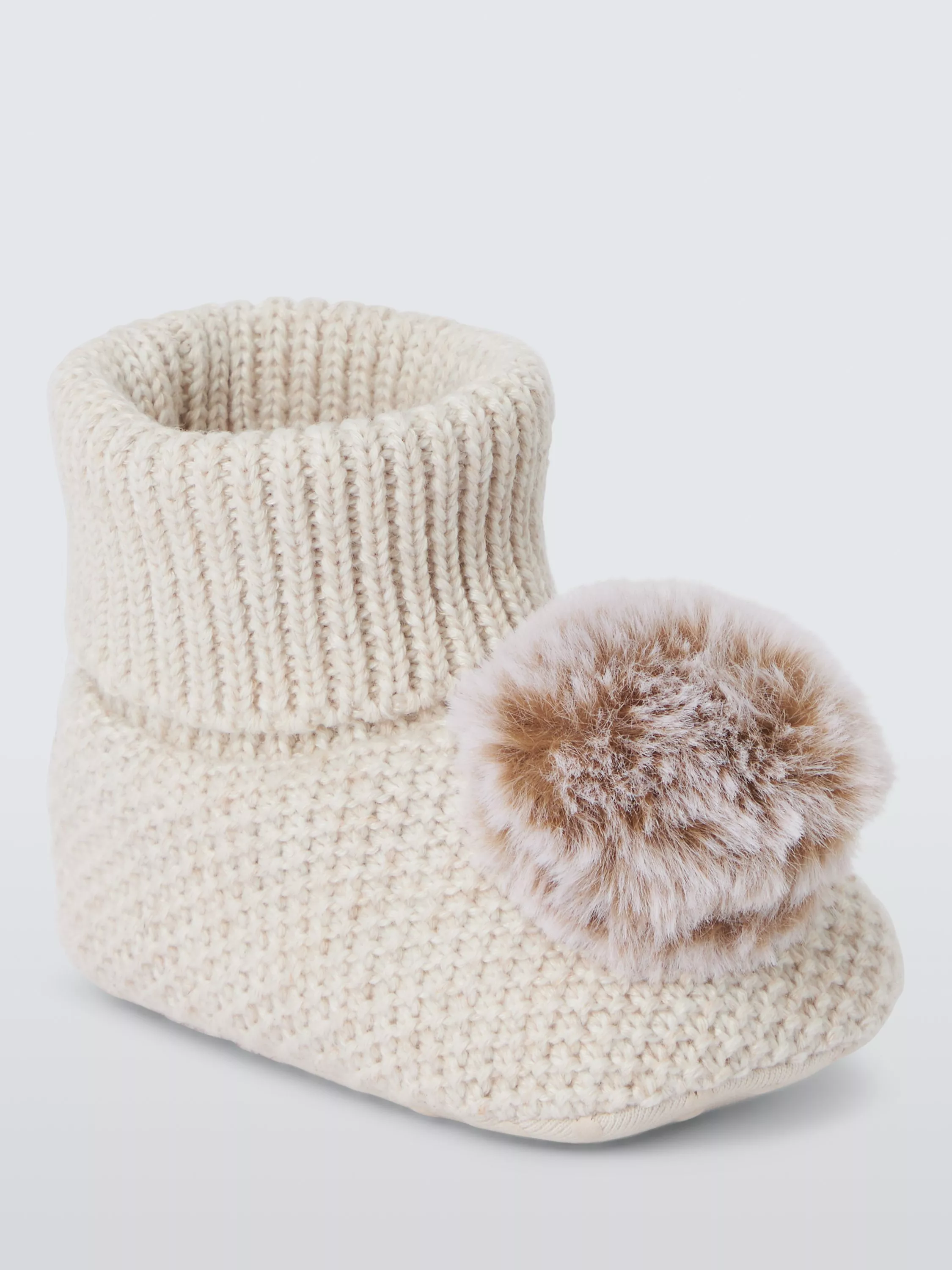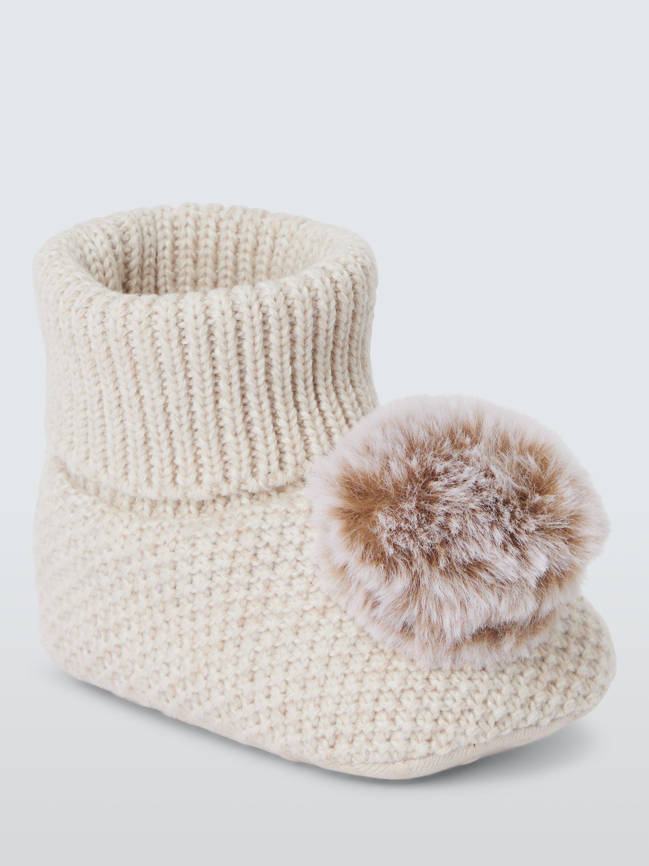 Treat your baby's feet to these warm, soft knitted sock tops with a lovely tipped fur pom accessory. Jersey lined for comfort they will be a lovely addition to any outfit.