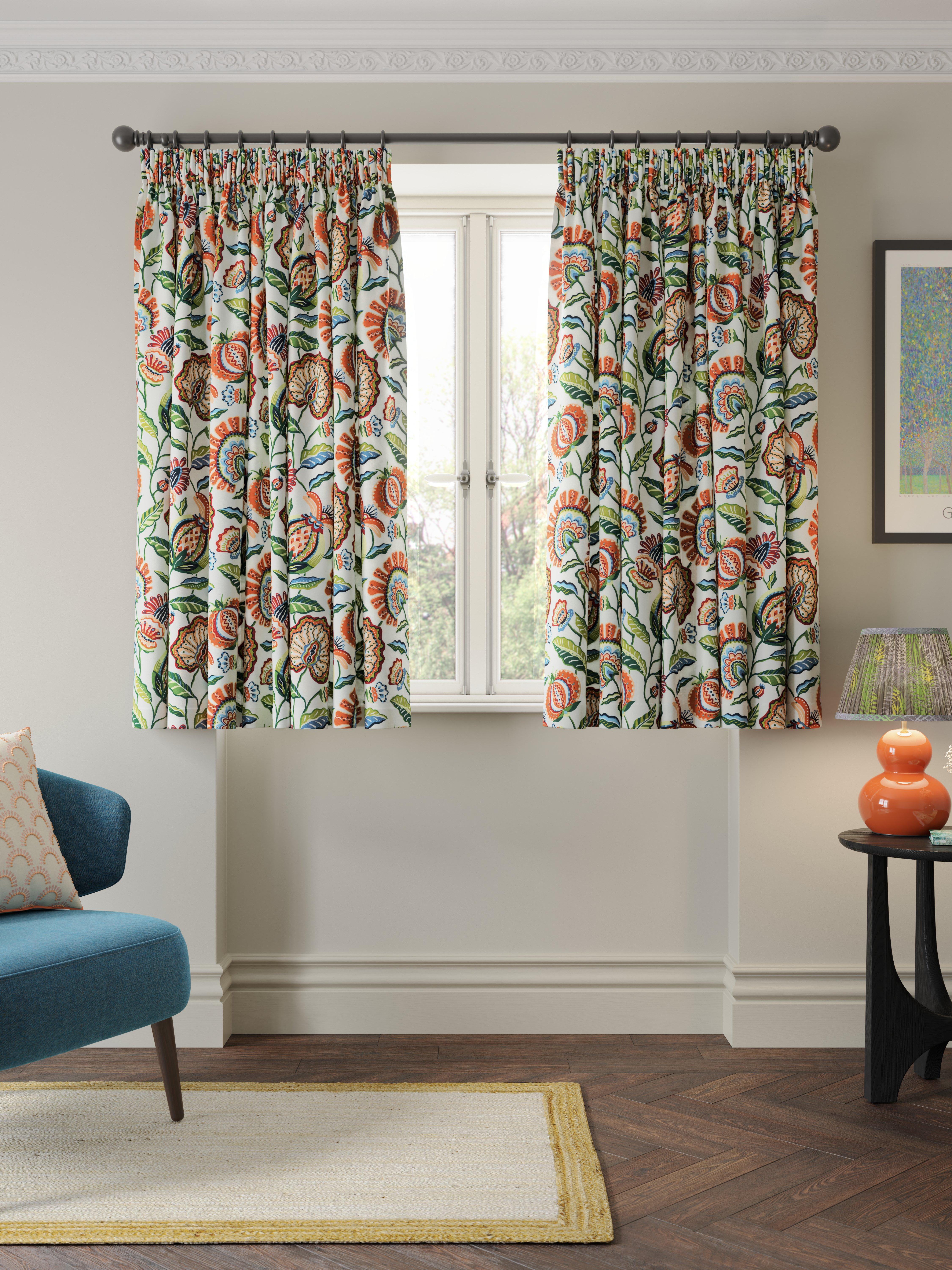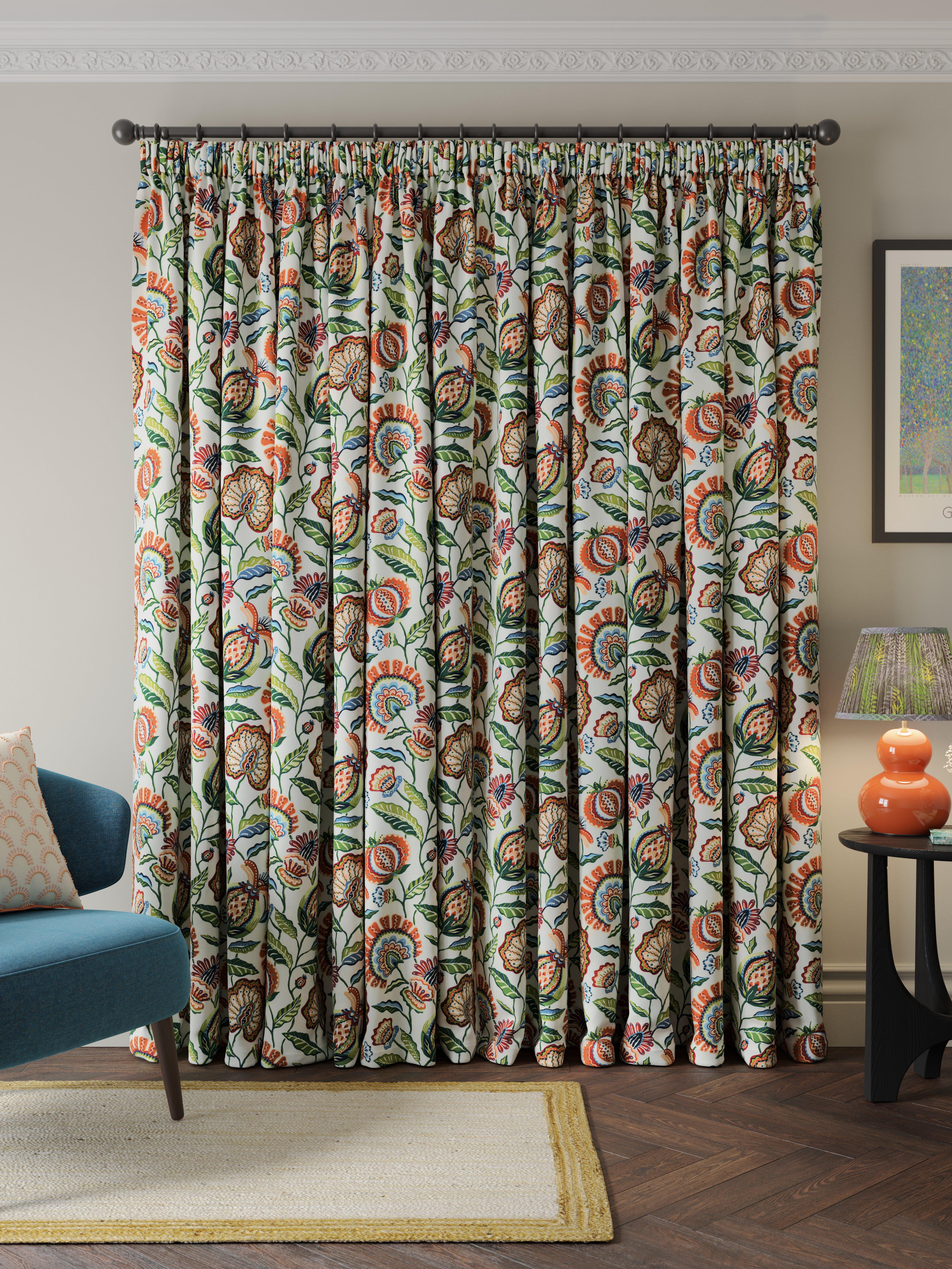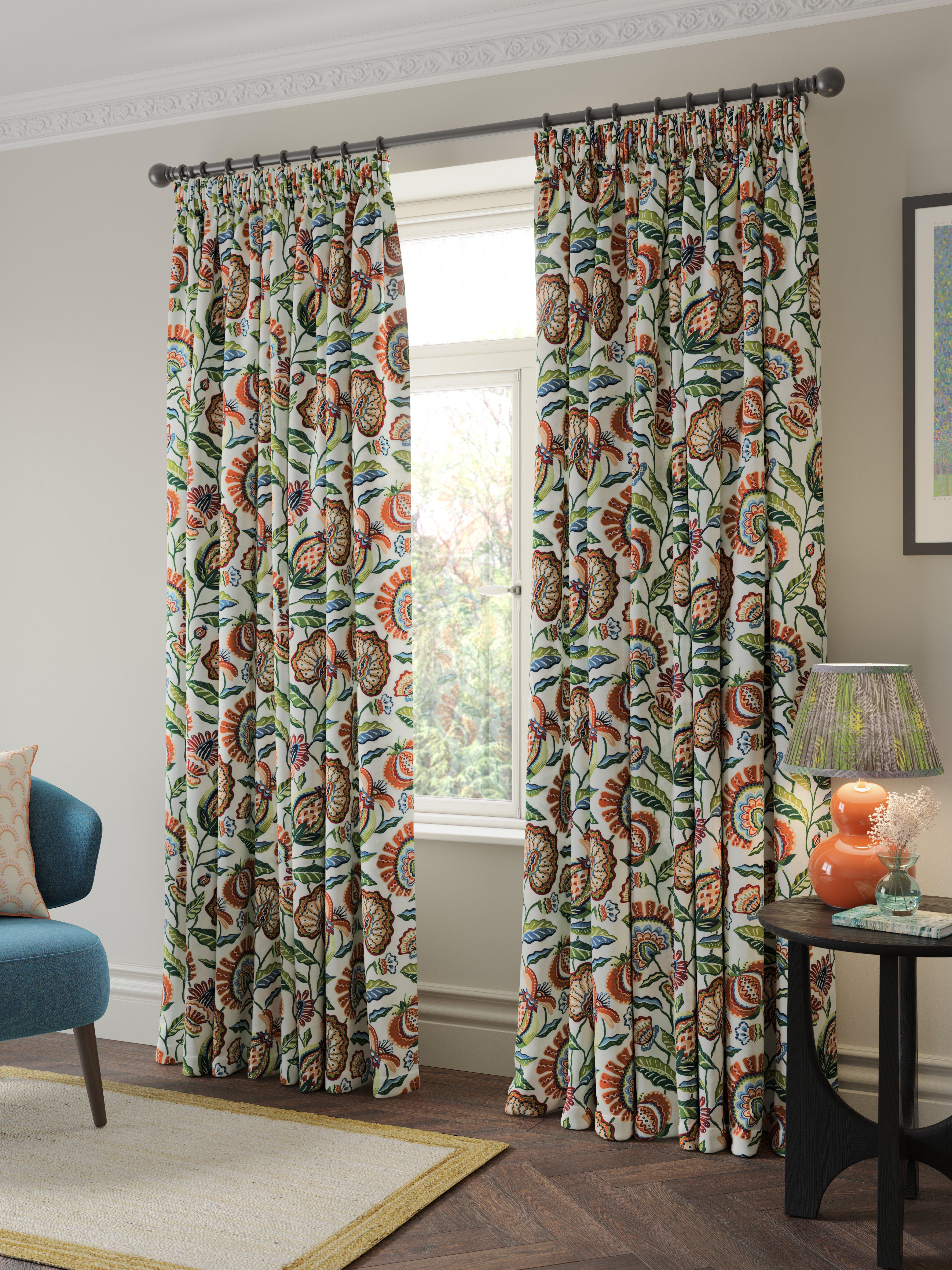 Ready made curtains with pencil pleat header, fully lined with daylight lining.