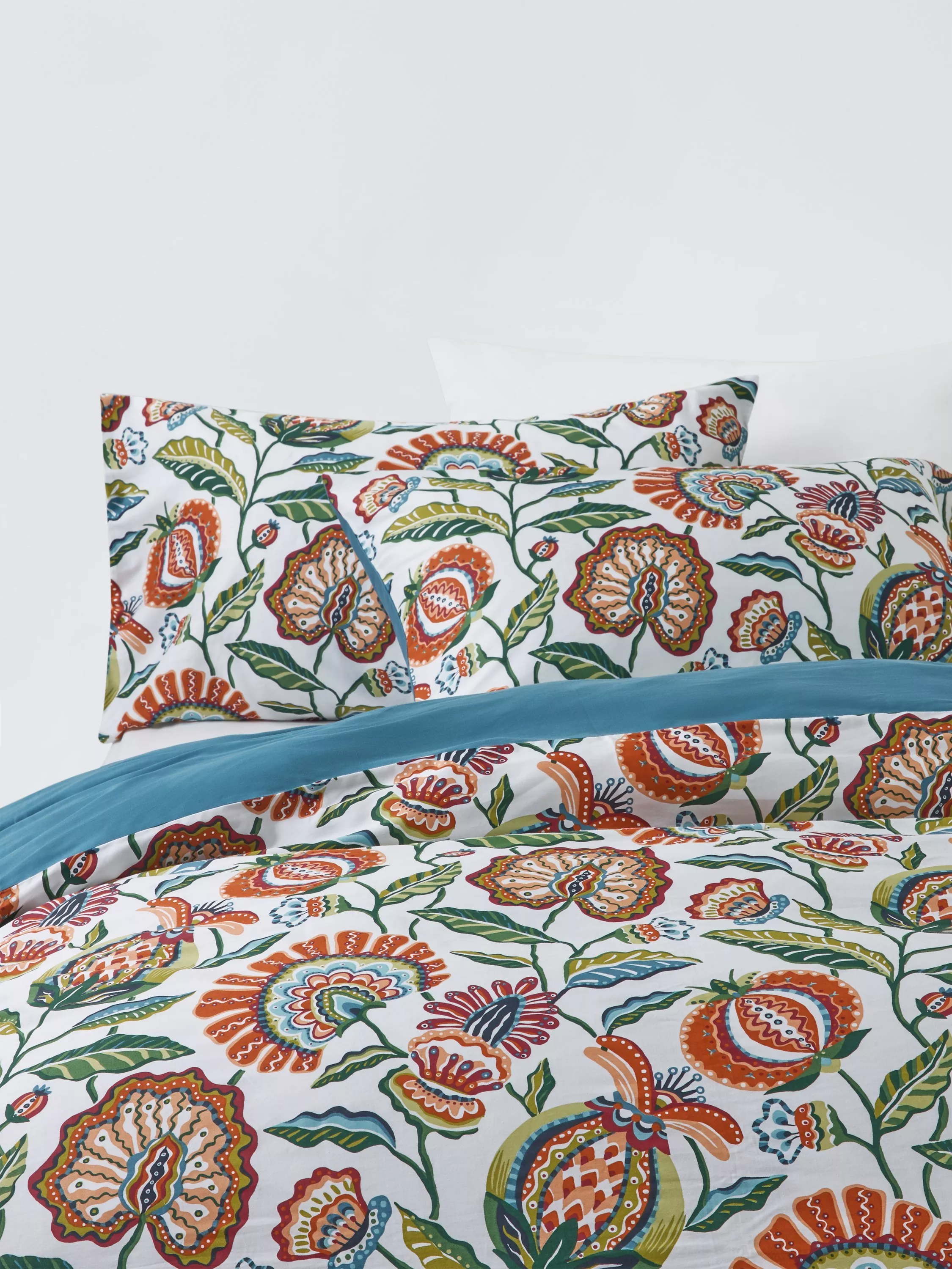 A bright pomegranate print on 100% cotton for a cool and comfortable night's sleep. The reverse is plain blue and picks out the matching tones in the colourful design.