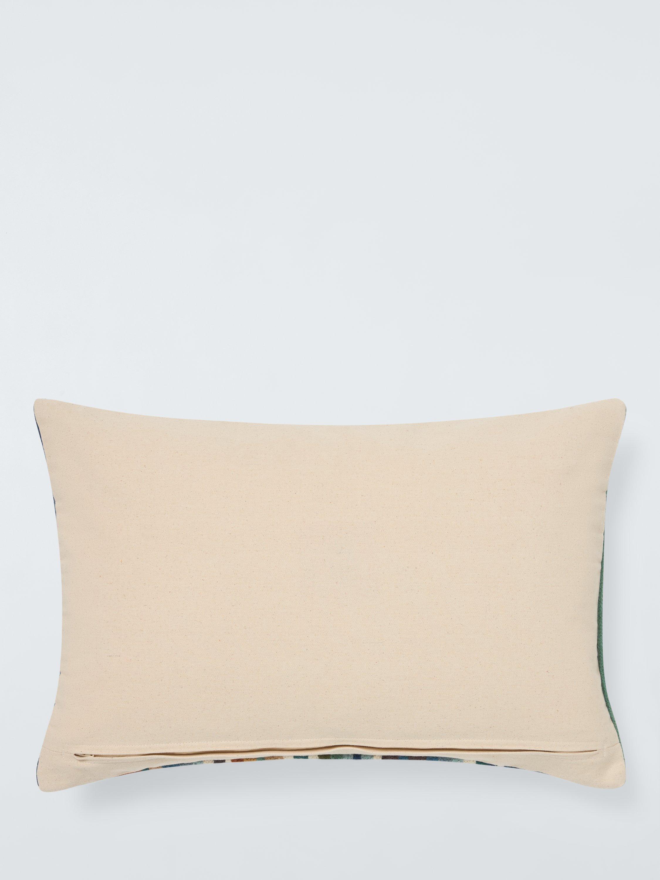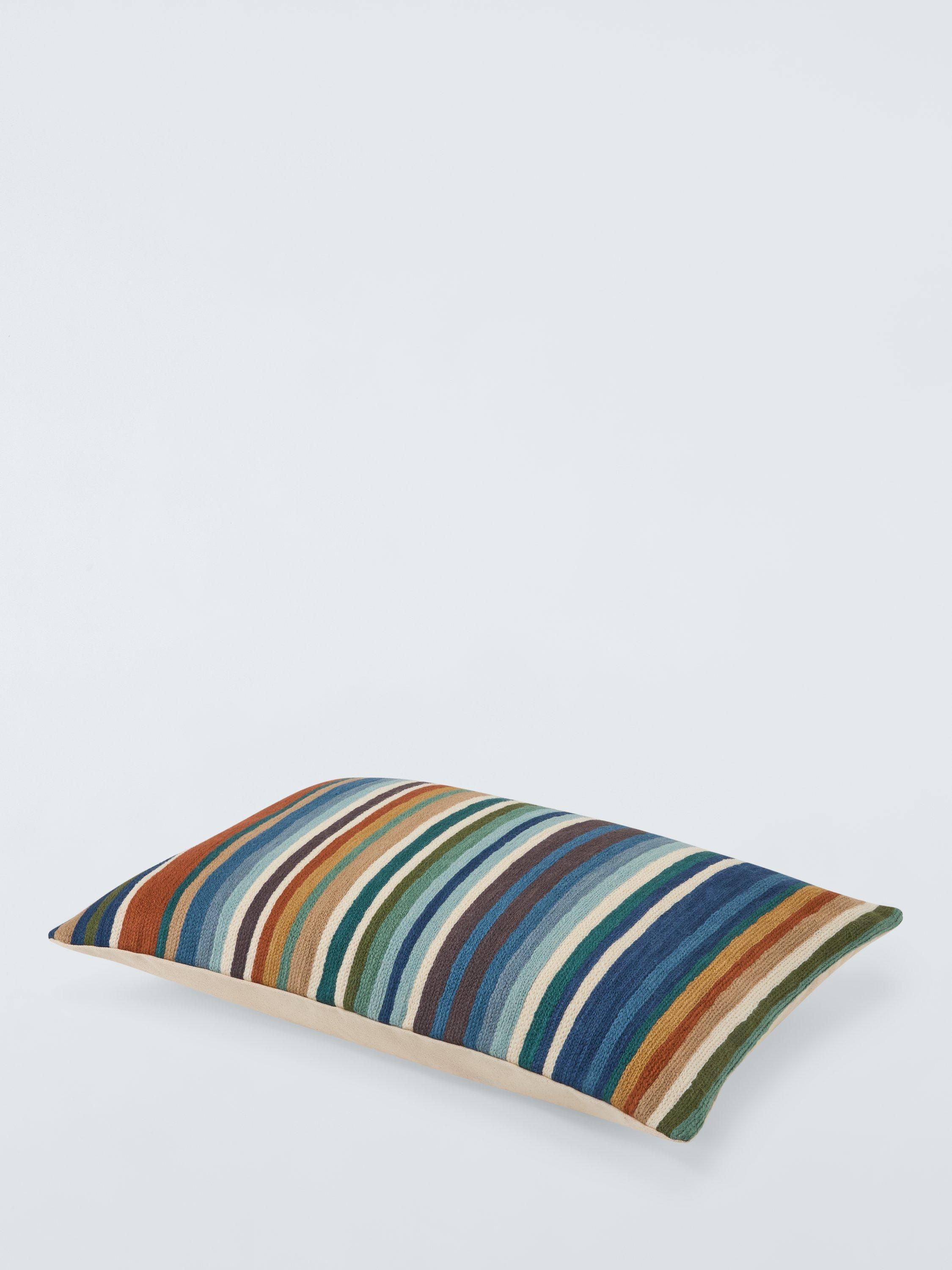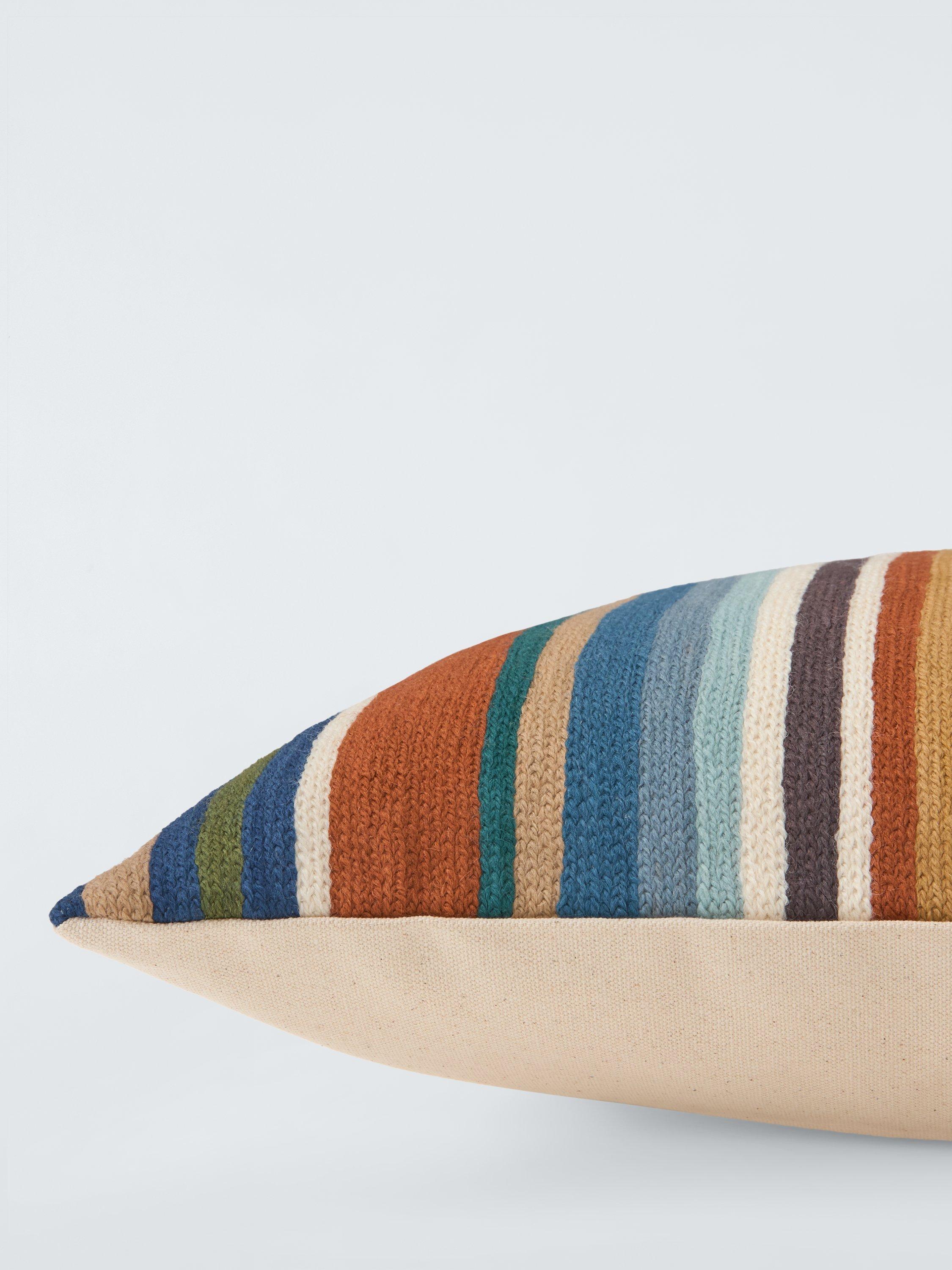 Traditional, handcrafted crewel embroidery in brightly coloured stripes. The back is plain, woven cotton.