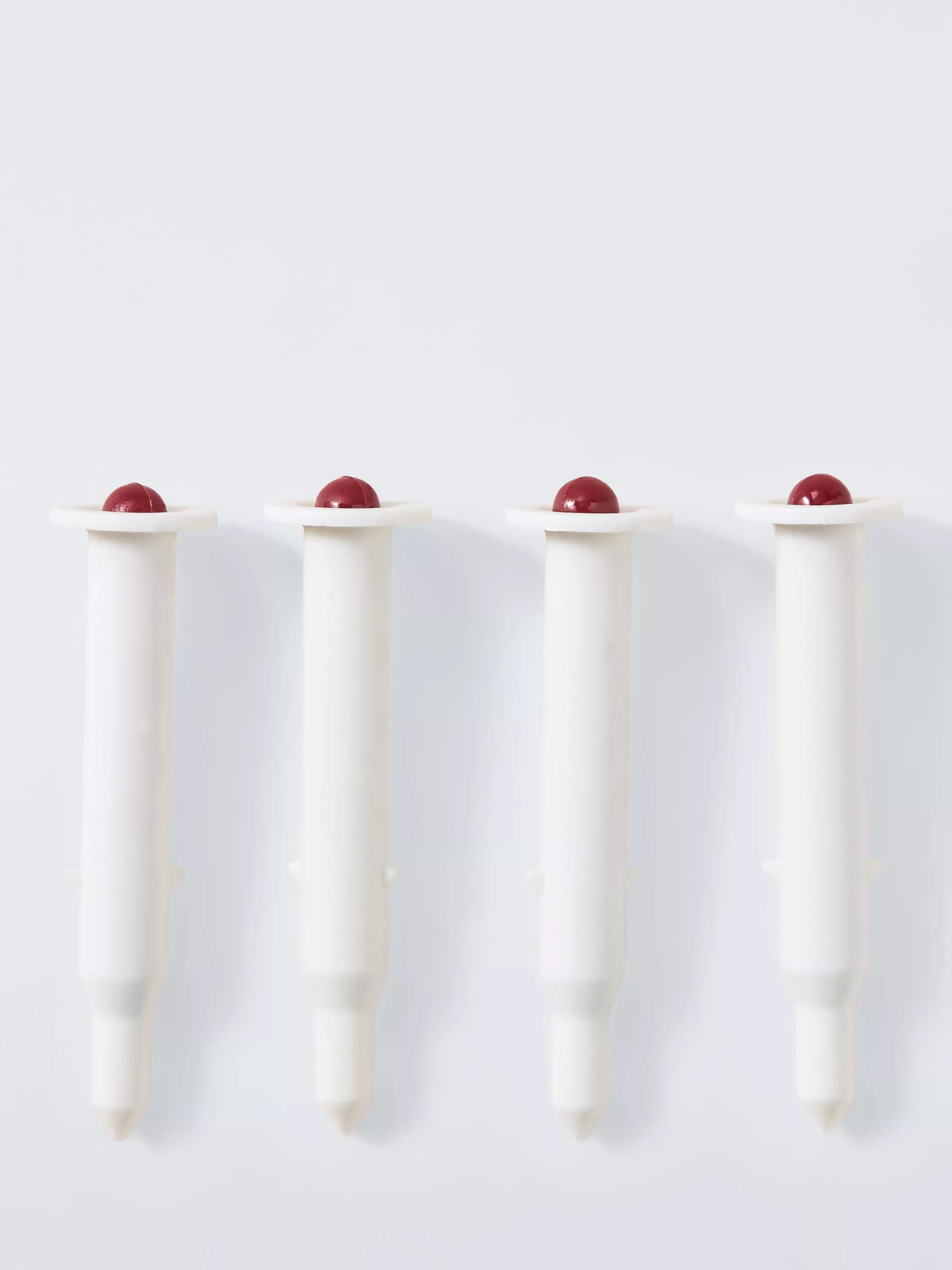 Four pop-up timers for perfectly cooked poultry. Place into the thickest part of the bird and ensure the timer is fully inserted. Timer pops up when the meat reaches the temperatures 175-180°F/79-82°C. Timers are disposable.