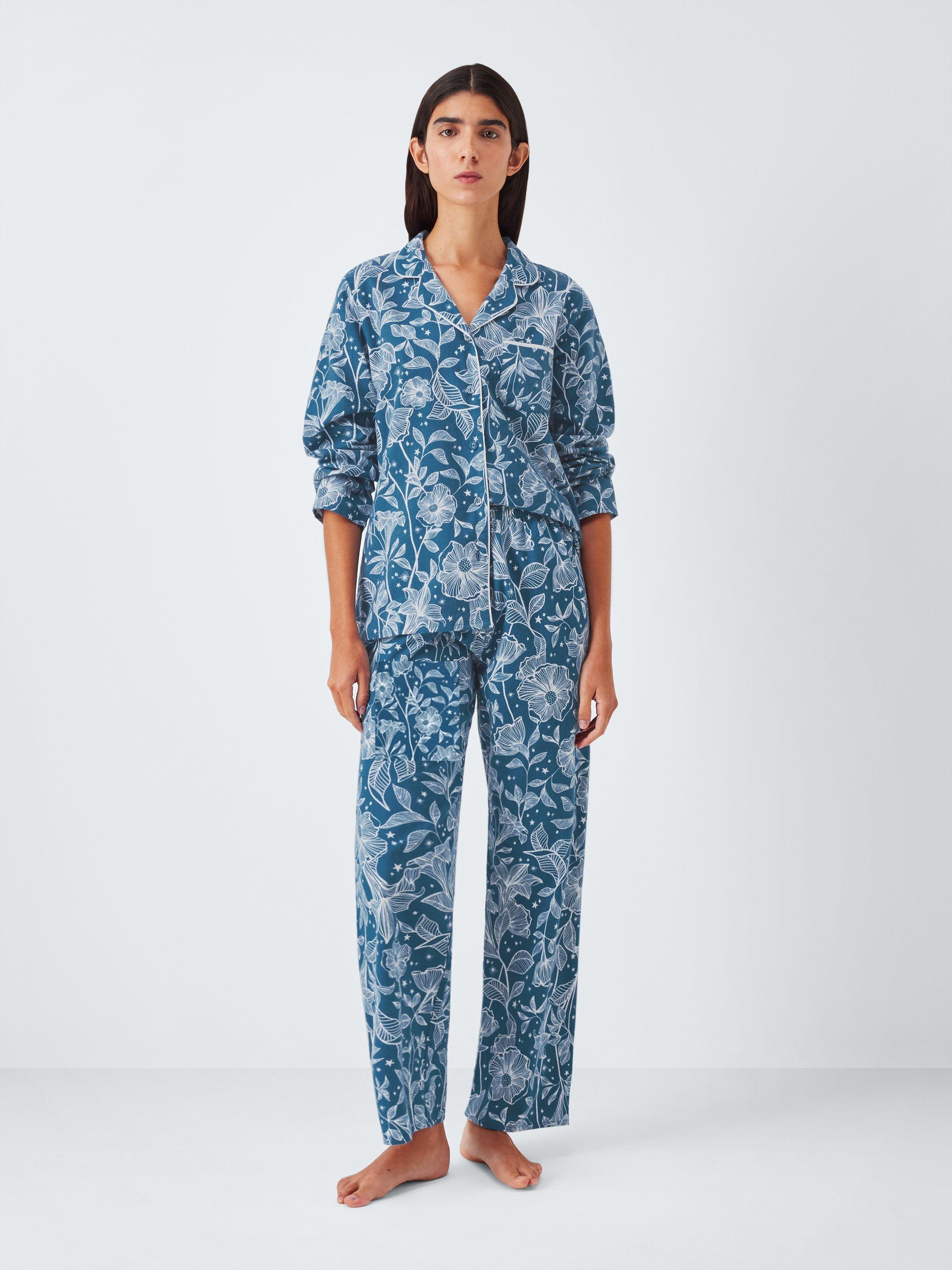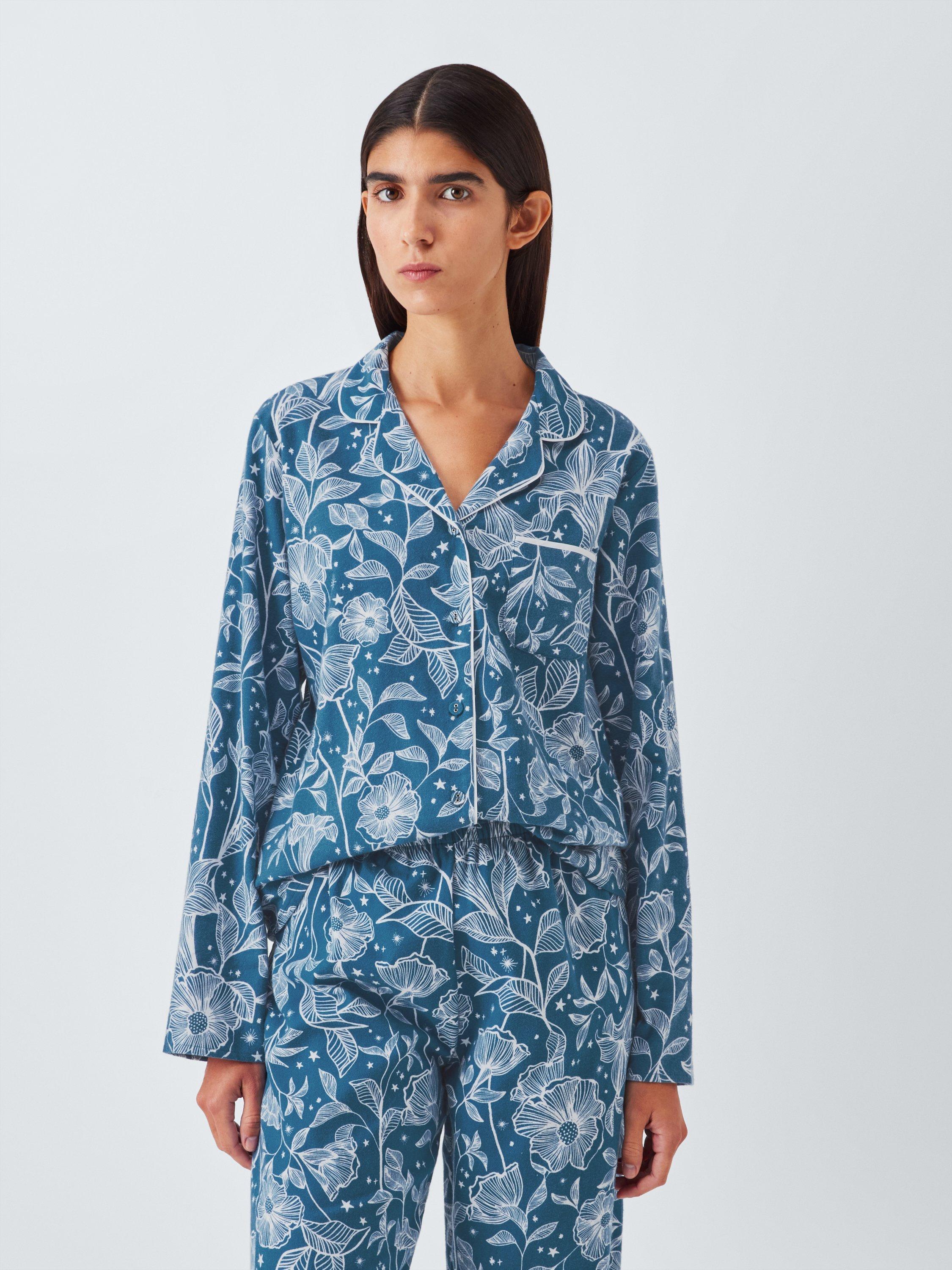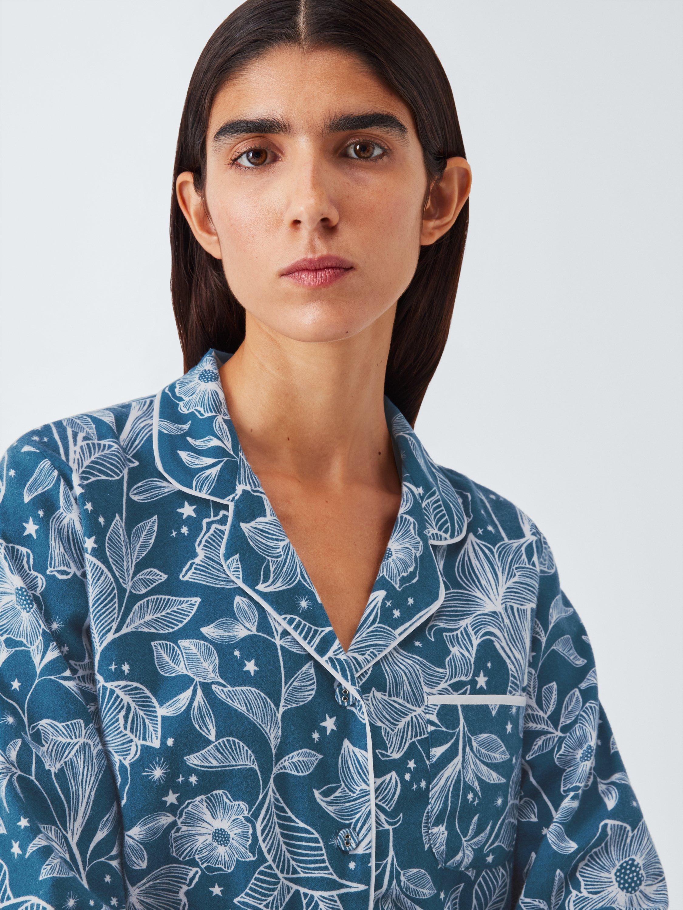 With an all-over poppy star print, this pure cotton pyjama set features a long sleeve shirt with a chest pocket and fabric-covered buttons, whilst the bottoms have a fully elasticated waistband.