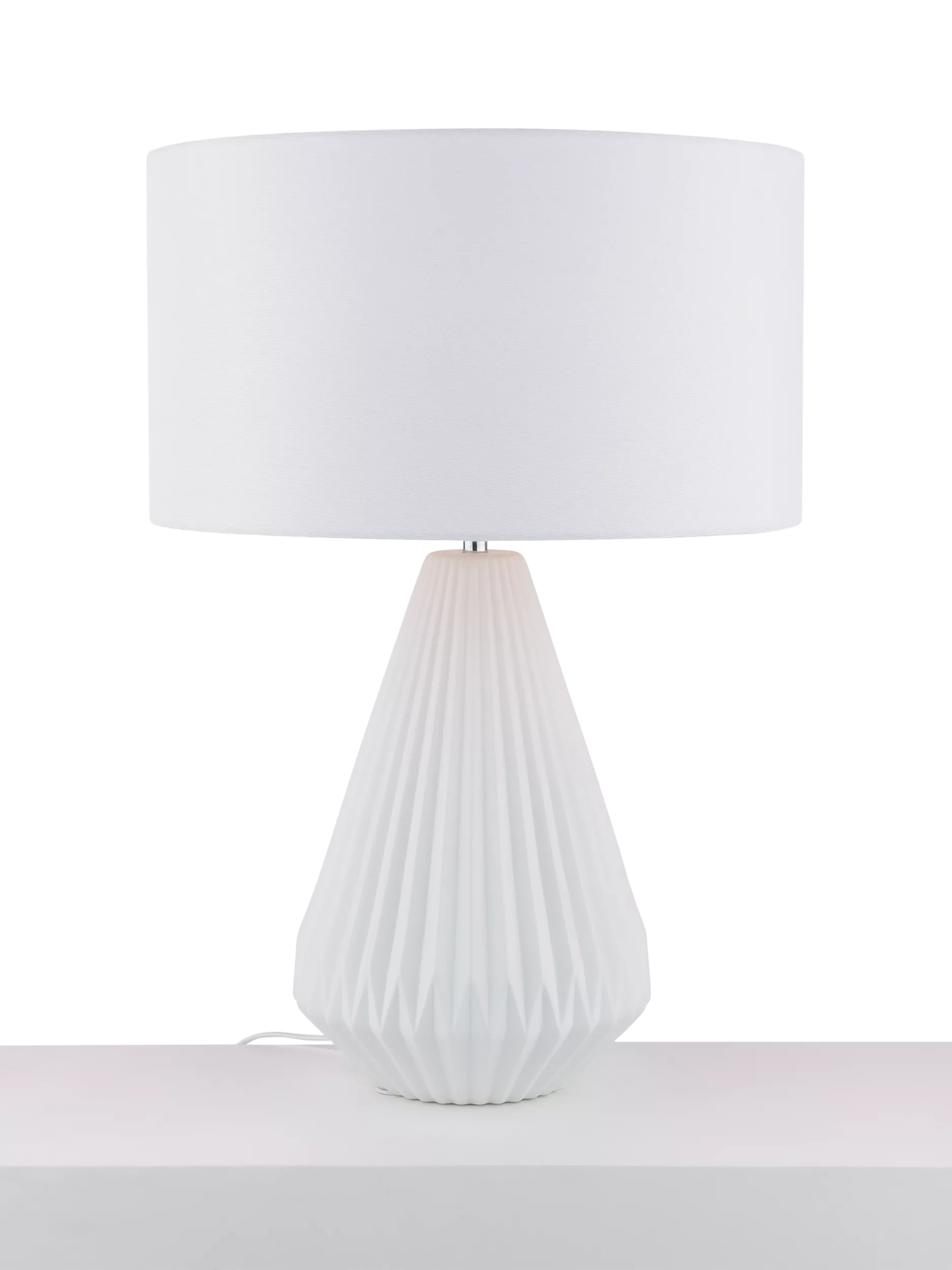 The Porcelain Dual Light Table Lamp has the exciting feature of being able to be dual-lit with its base and shade. The beautiful, porcelain, tapered, pleated base showcases its detailing when the light is on or off. The warm taupe cotton-look lampshade finishes off this clean, contemporary design.