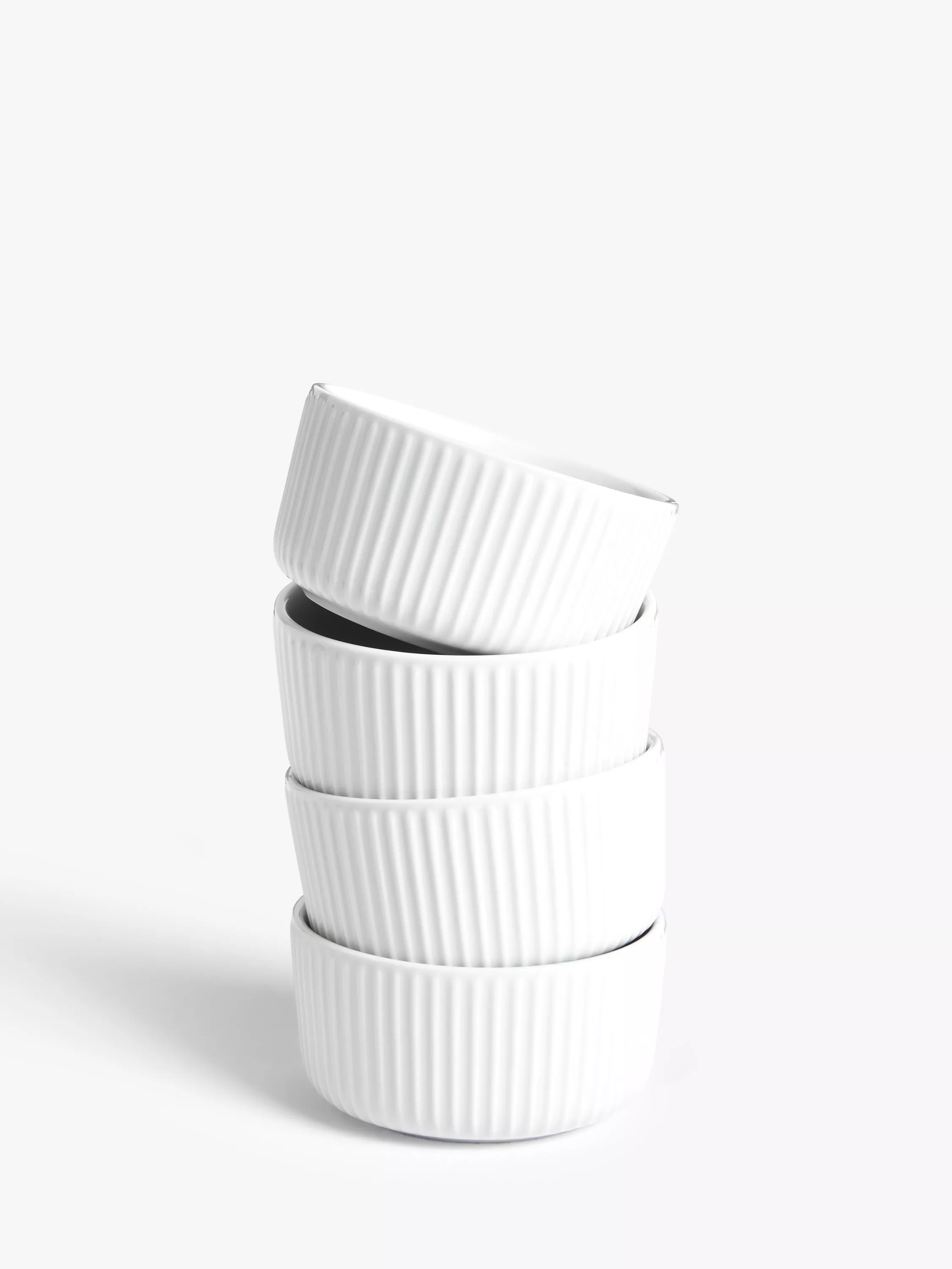 Fluted and textured, this set of four classic ramekins can go from the oven to the table, to serve individual portions of baked appetisers or desserts. Made of white porcelain, they are oven safe to 180°C, as well as freezer, microwave and dishwasher safe.