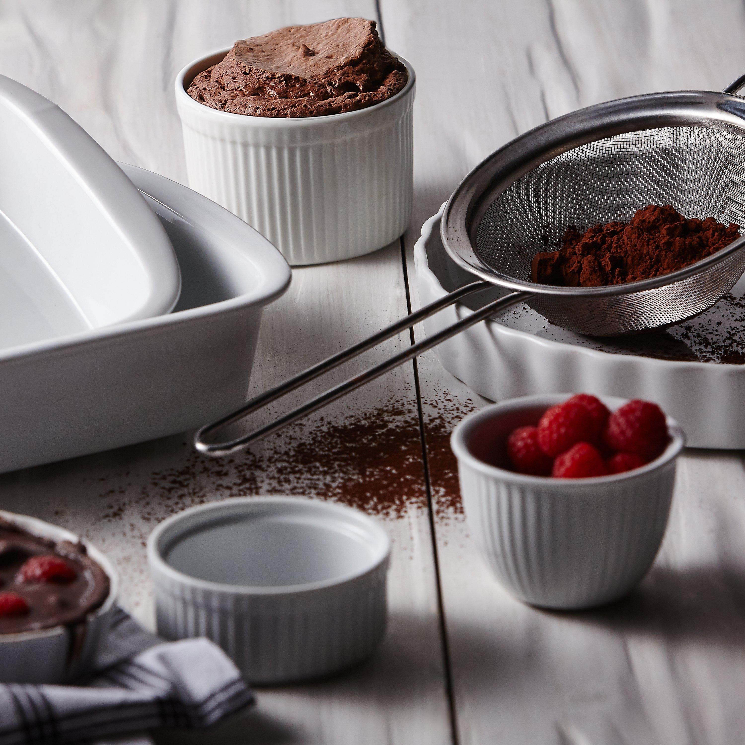 This simple porcelain roaster features clean lines and is versatile enough to go from oven to tabletop. Also great as serveware for fruit or puddings.