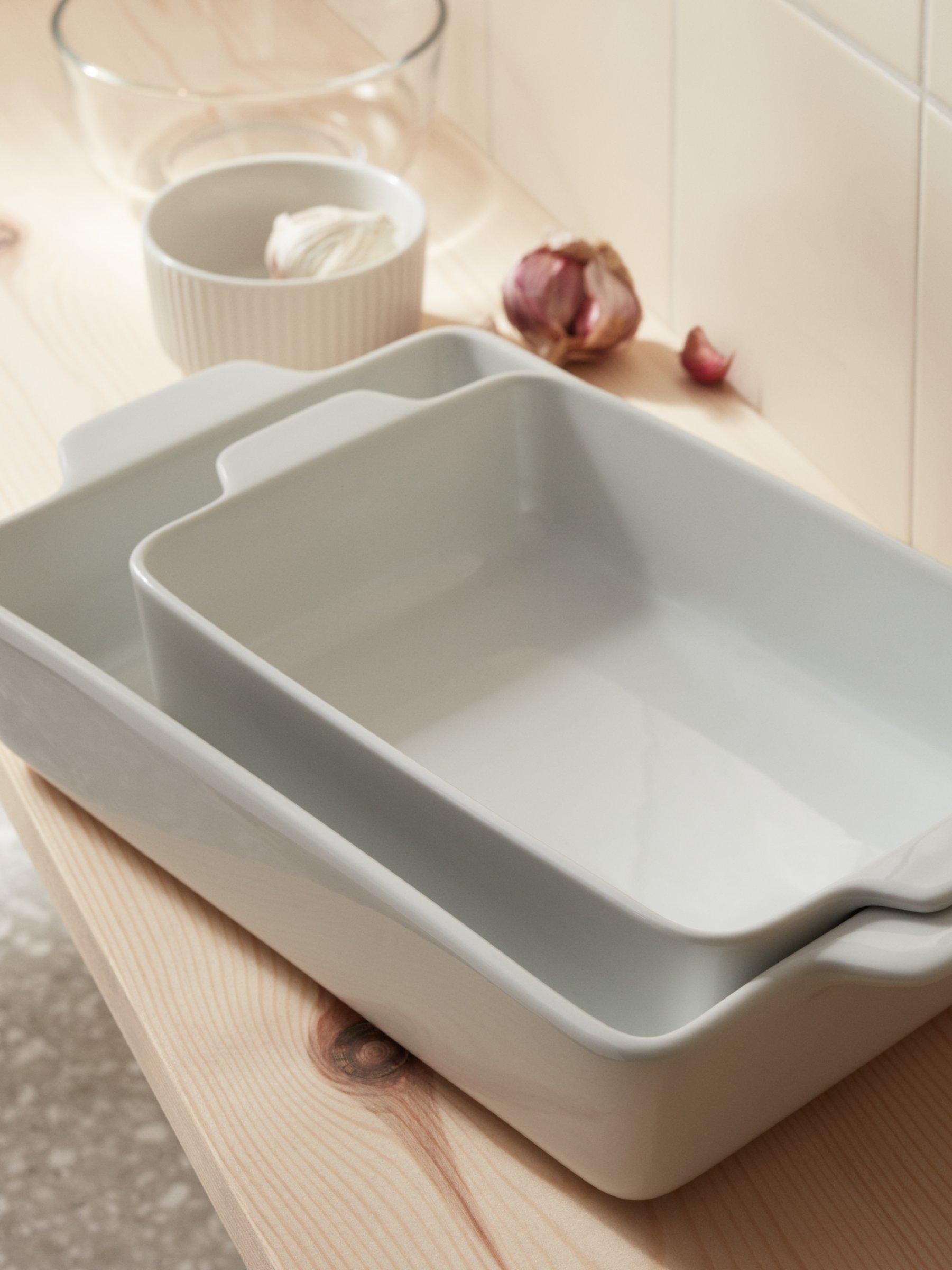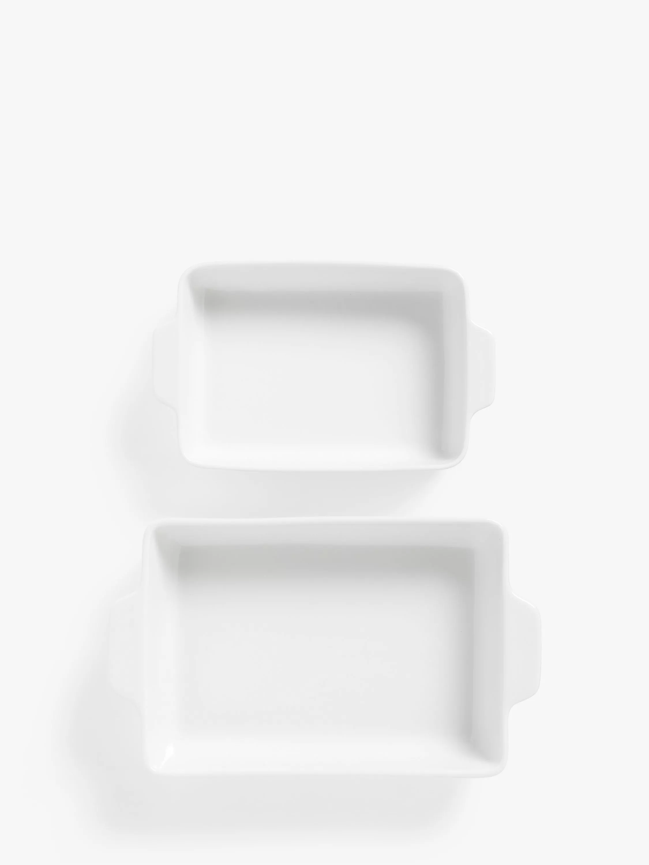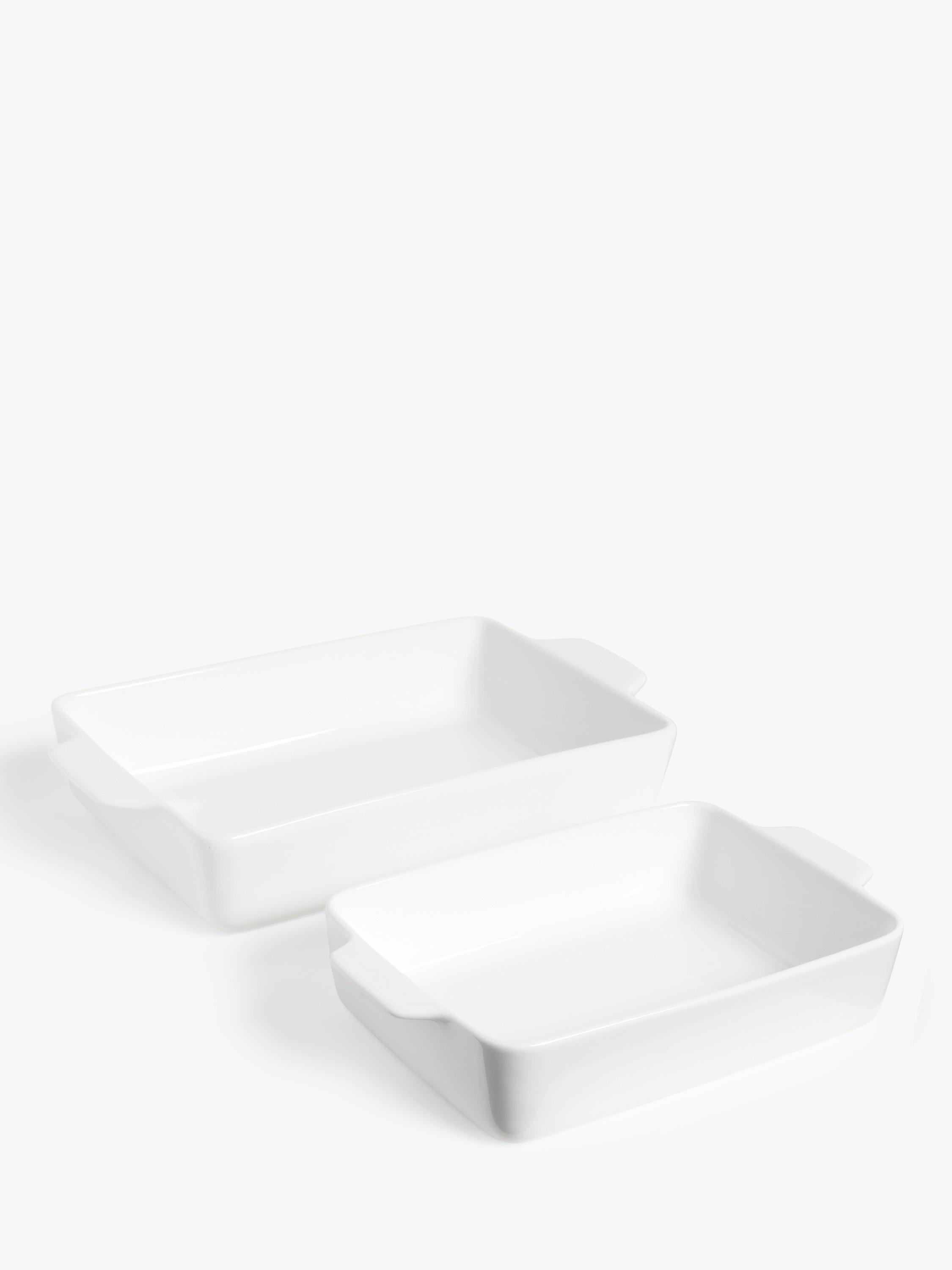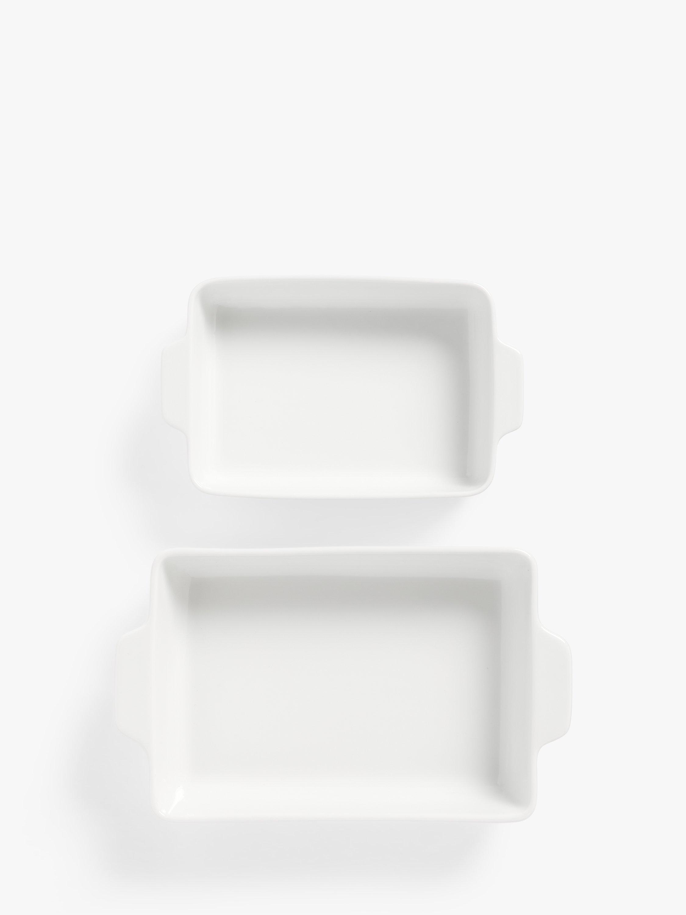 Classic oven-to-table cookware, this pair of rectangular roasters are made of white porcelain. They nest together for compact storage. Oven safe to 180°C, they are freezer, microwave and dishwasher safe too.