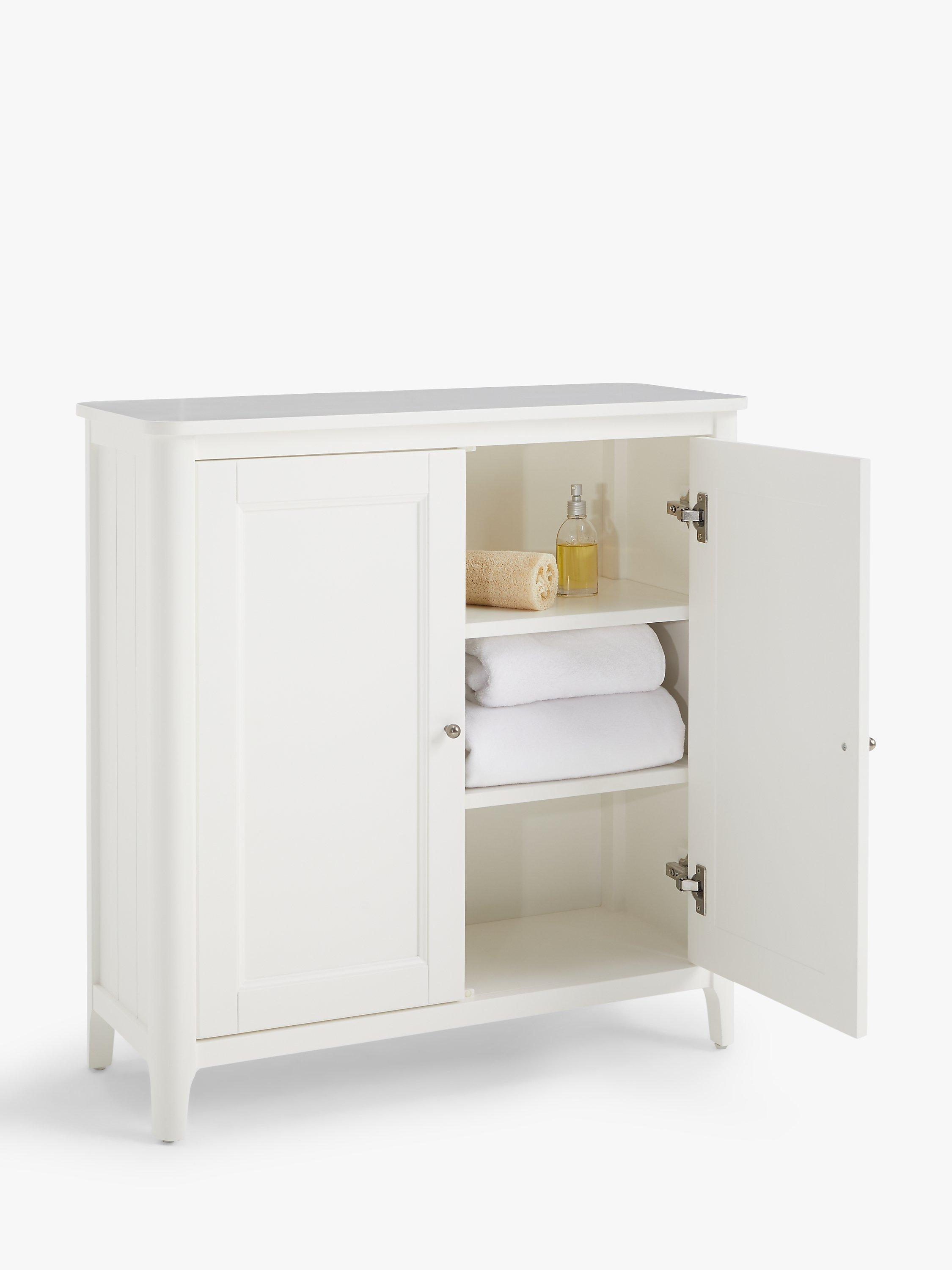 A practical storage unit for your bathroom essentials, this double towel cupboard is made from a poplar wood and MDF blend. Designed with soft, rounded edges and a clean, painted finish, it brings a more modern edge to bathroom storage. Inside there are two adjustable shelves, perfect for both towels and toiletries.