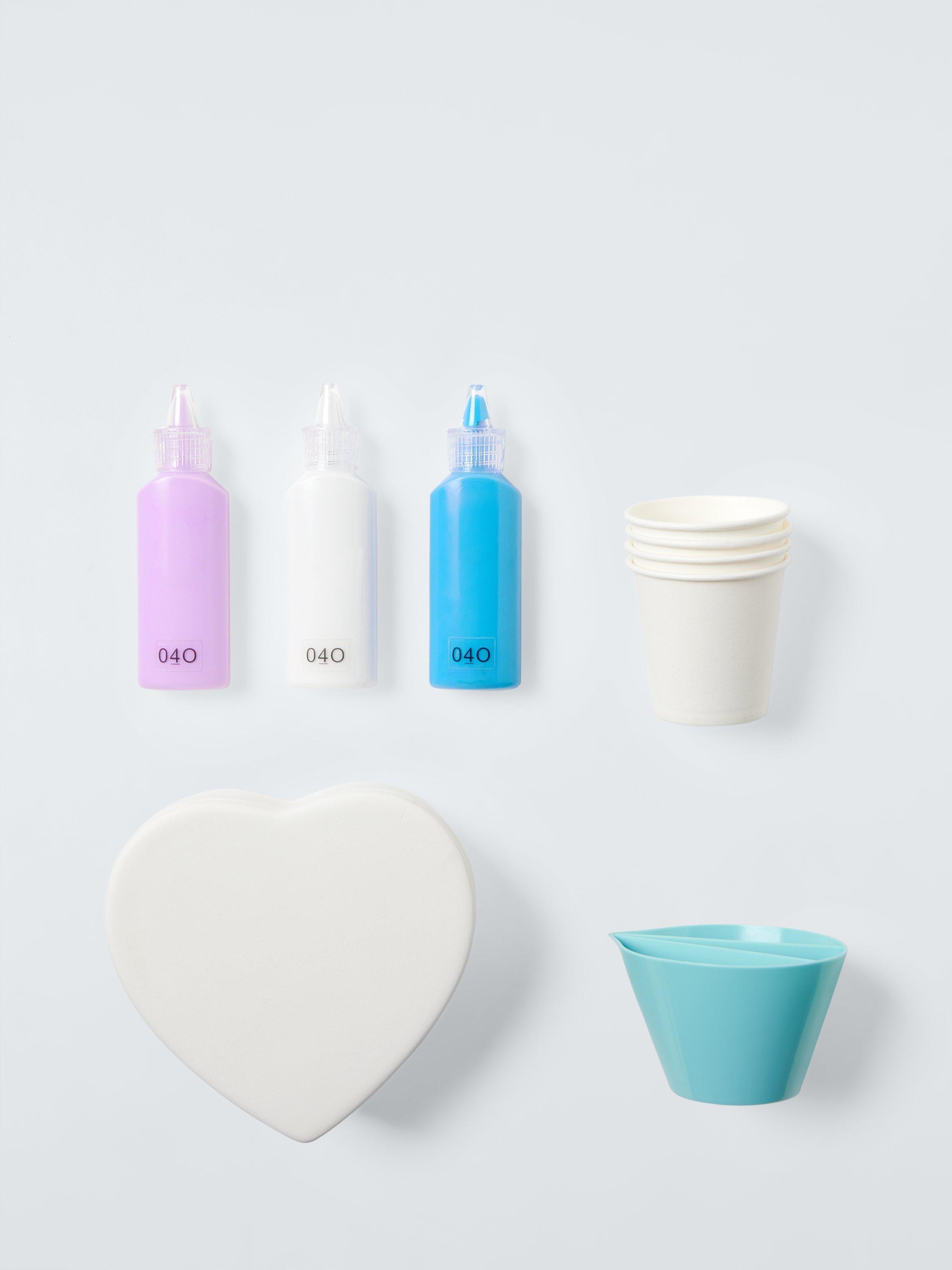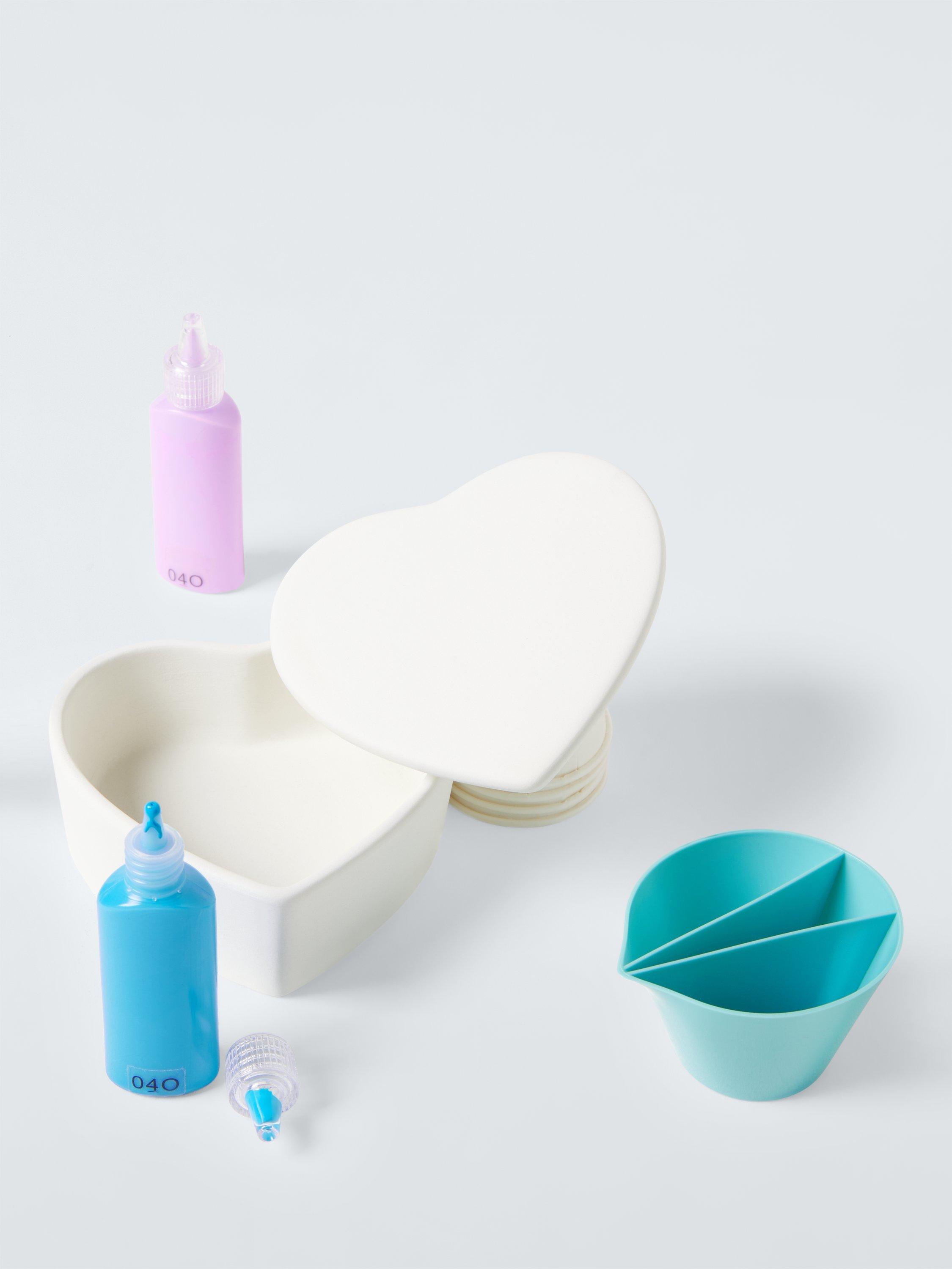 Inside the set is everything needed to start pouring, including a simple instruction sheet to get you started. Use the cups to measure your paint, then pour your colour combos onto the porcelain heart-shaped box, tilt and watch the paint move around and create exciting abstract patterns - it's full of fun for a beginner.
