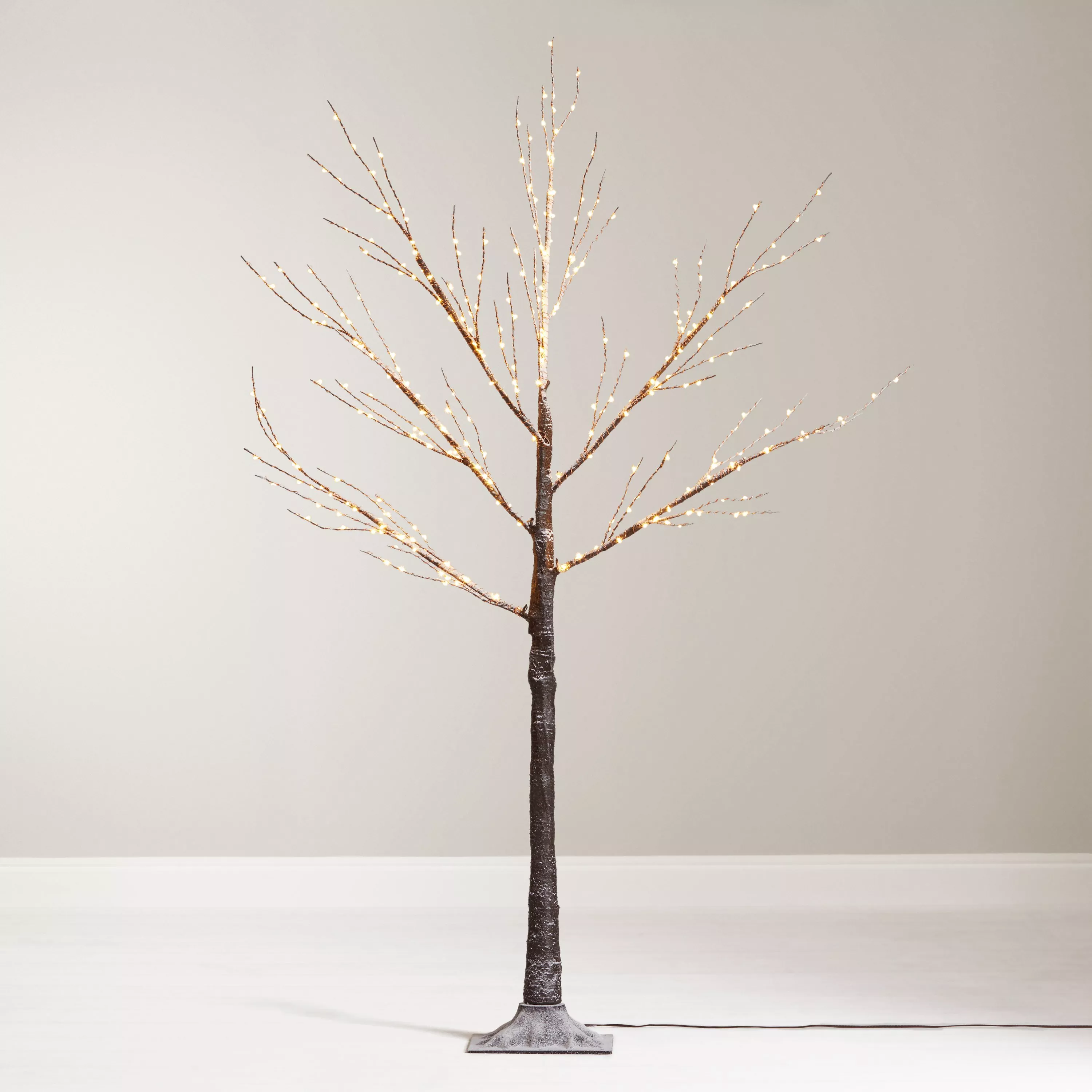 This beautiful, copper-coloured twig tree is a great alternative to a traditional Christmas tree and looks stunning whether hung with decorations or left bare. It's fitted with 300 warm white static micro LEDs for a magical glow indoors or out.