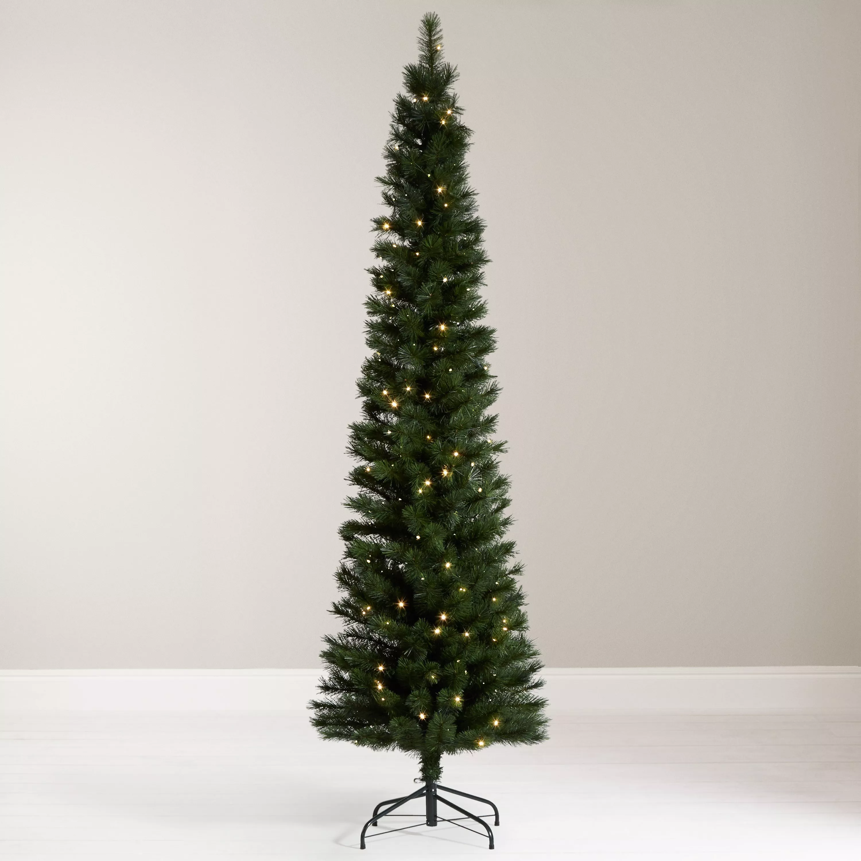 Our 7ft Pencil Christmas tree is the ultimate space saving solution. Its realistic hard needle tips give the tree a natural outline and make it easier to decorate. The tree is also pre-lit with 200 LED bulbs and is really easy to assemble.