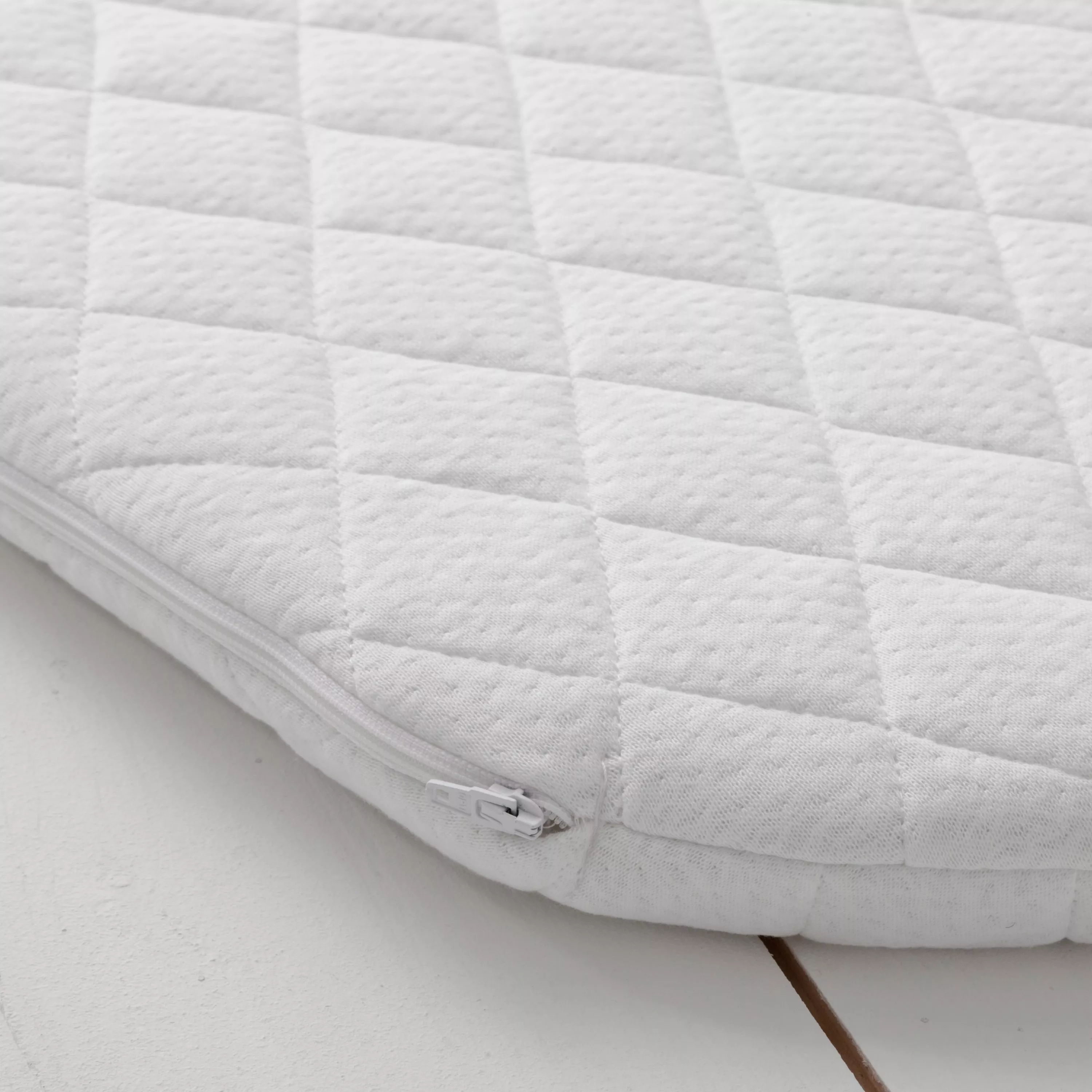 This comfortable and supportive premium foam mattress is ideal for moses baskets. The cover has a soft cotton-rich quilted surface to both sides, meaning both sides can be used for a comfy sleep.