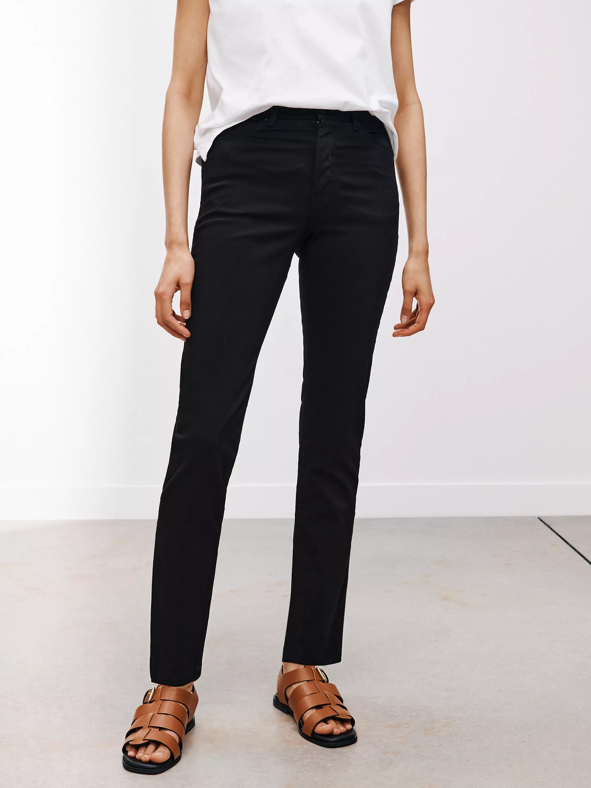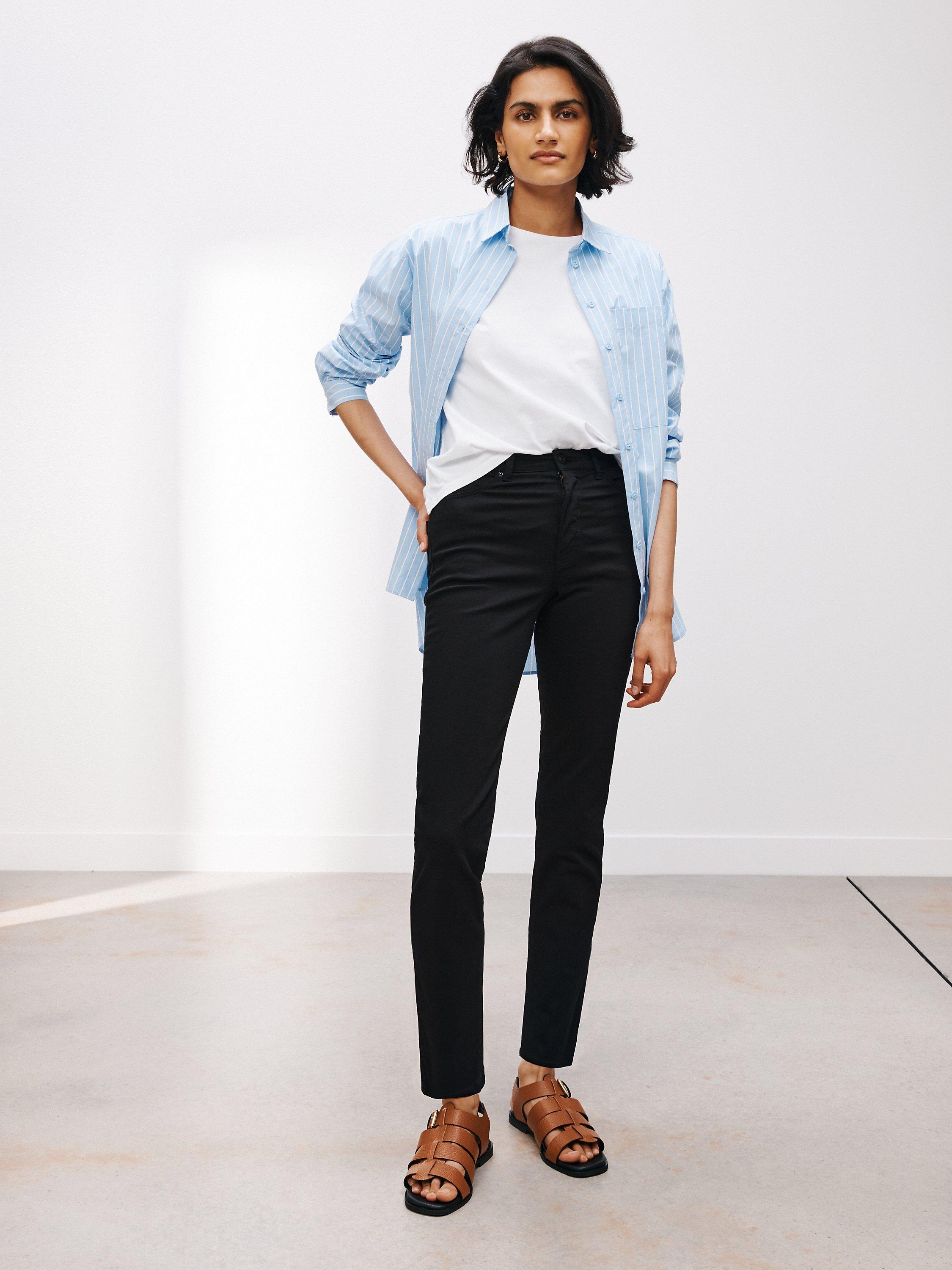 Our slim leg Jeans are made using a cotton-rich blend with a hint of stretch for added comfort throughout the day. Cut to a flattering fit, with classic five-pocket styling and a high rise - Team yours with jersey tops and seasonal knitwear for a relaxed daytime look.