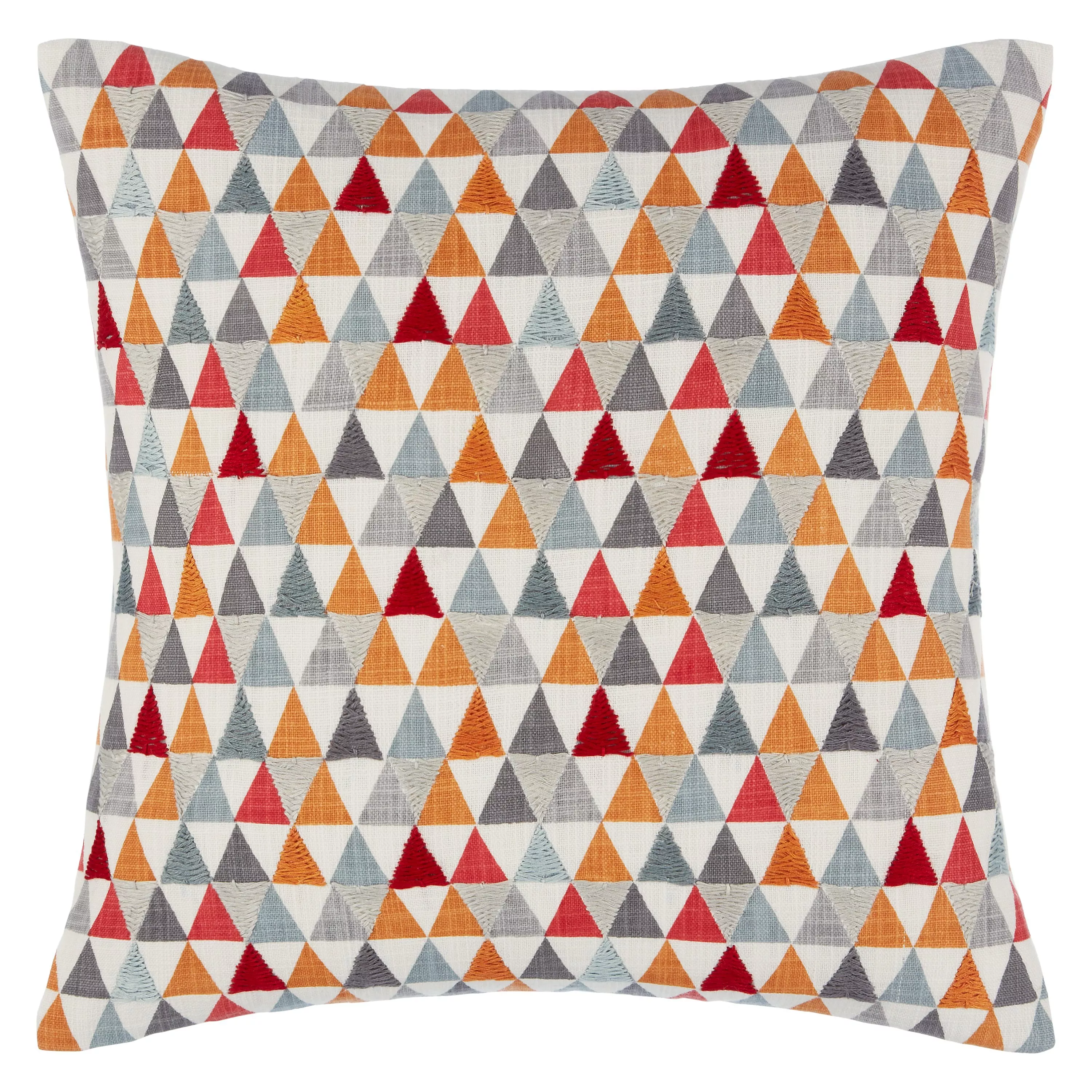 Vibrant and kaleidoscopic, this tessellated triangle cushion looks wonderful either as a mass of differently patterned cushions, or as a stand-alone armchair piece.