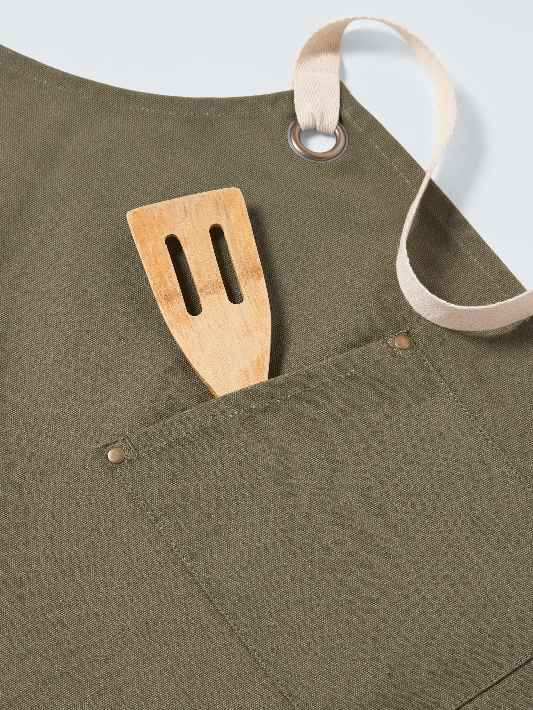Kitchen apron with an adjustable neck loop and ties for a customised fit. There are three handy front pockets for keeping kitchen utensils, barbecue tools or your phone. Made of heavyweight fabric with rivet details, it's durable, machine washable and coordinates with our matching Professional kitchen textiles.