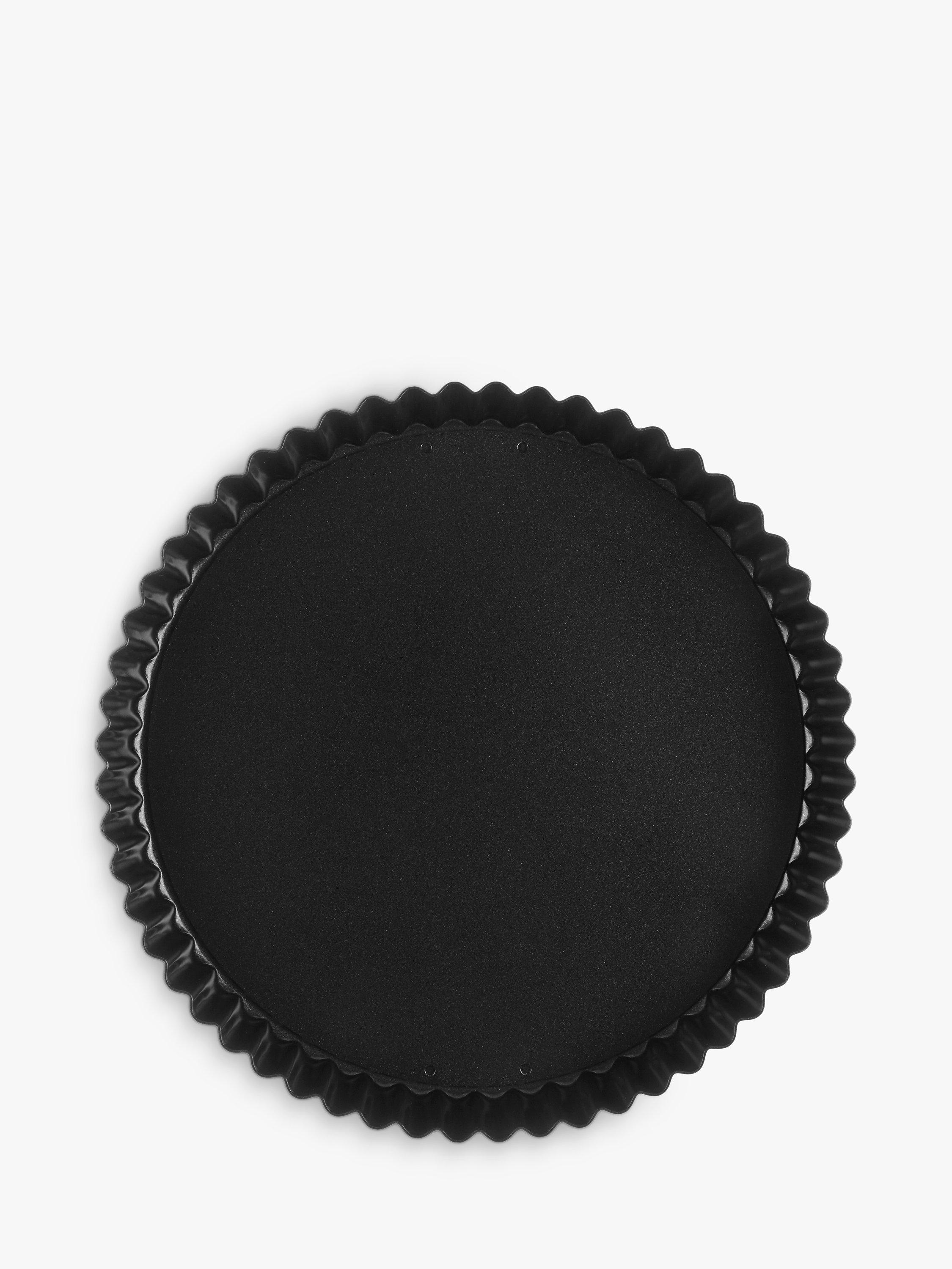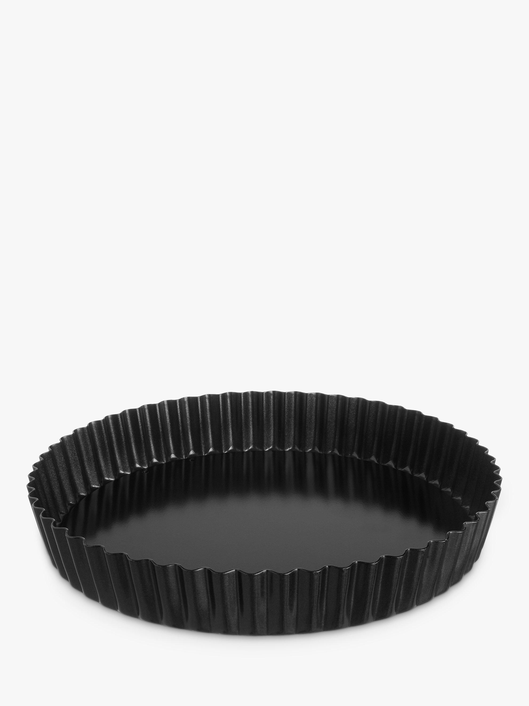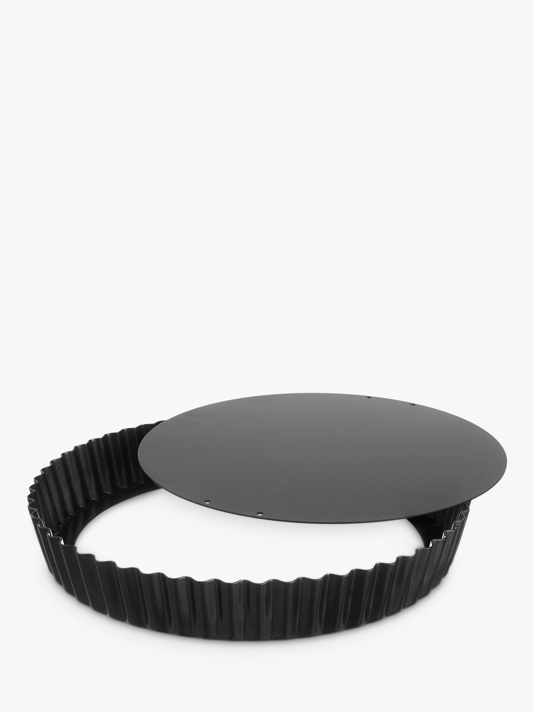 The loose base extends to the side to give a smooth and secure base, easily pushed out once your culinary creation is ready. Quiches and other pastry tarts will be cooked to crisp perfection while deep flutes give a beautiful, professional finish to anything either baked or chilled in this flan tin.