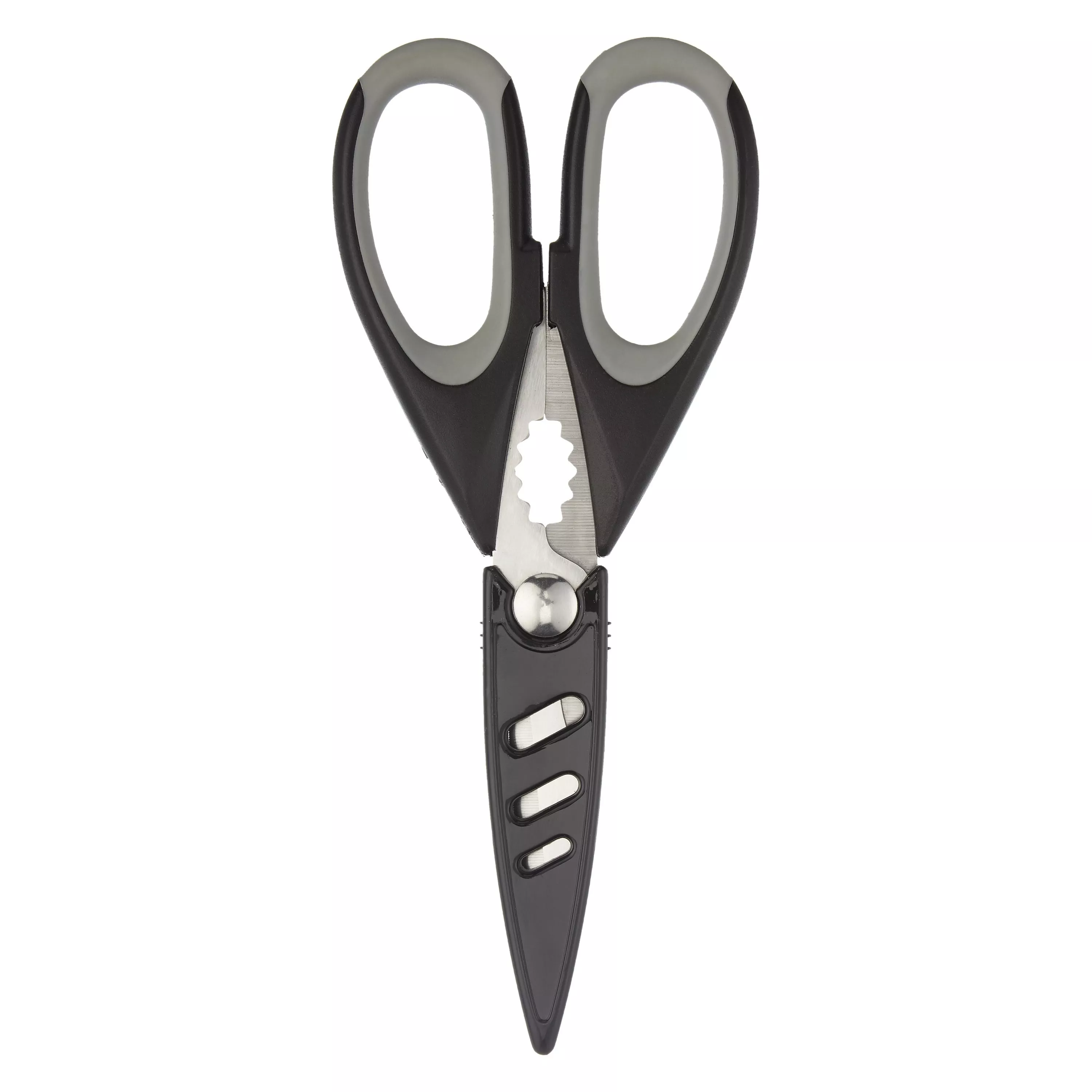 Durable stainless steel blades ensure this pair of kitchen scissors is a cut above. Ergonomic handles are designed for comfort in the hand and the scissors come with a protective clip-on blade cover.