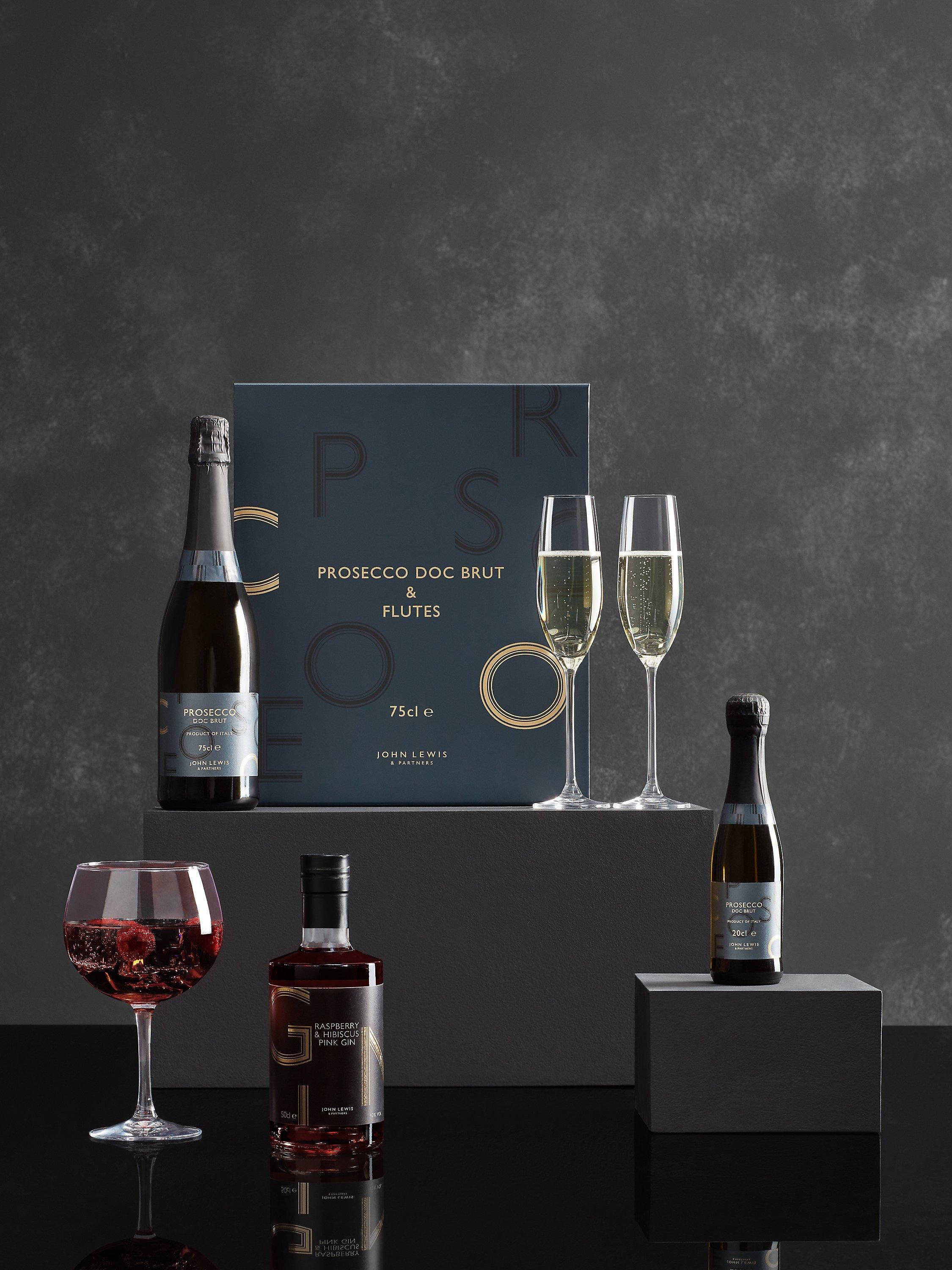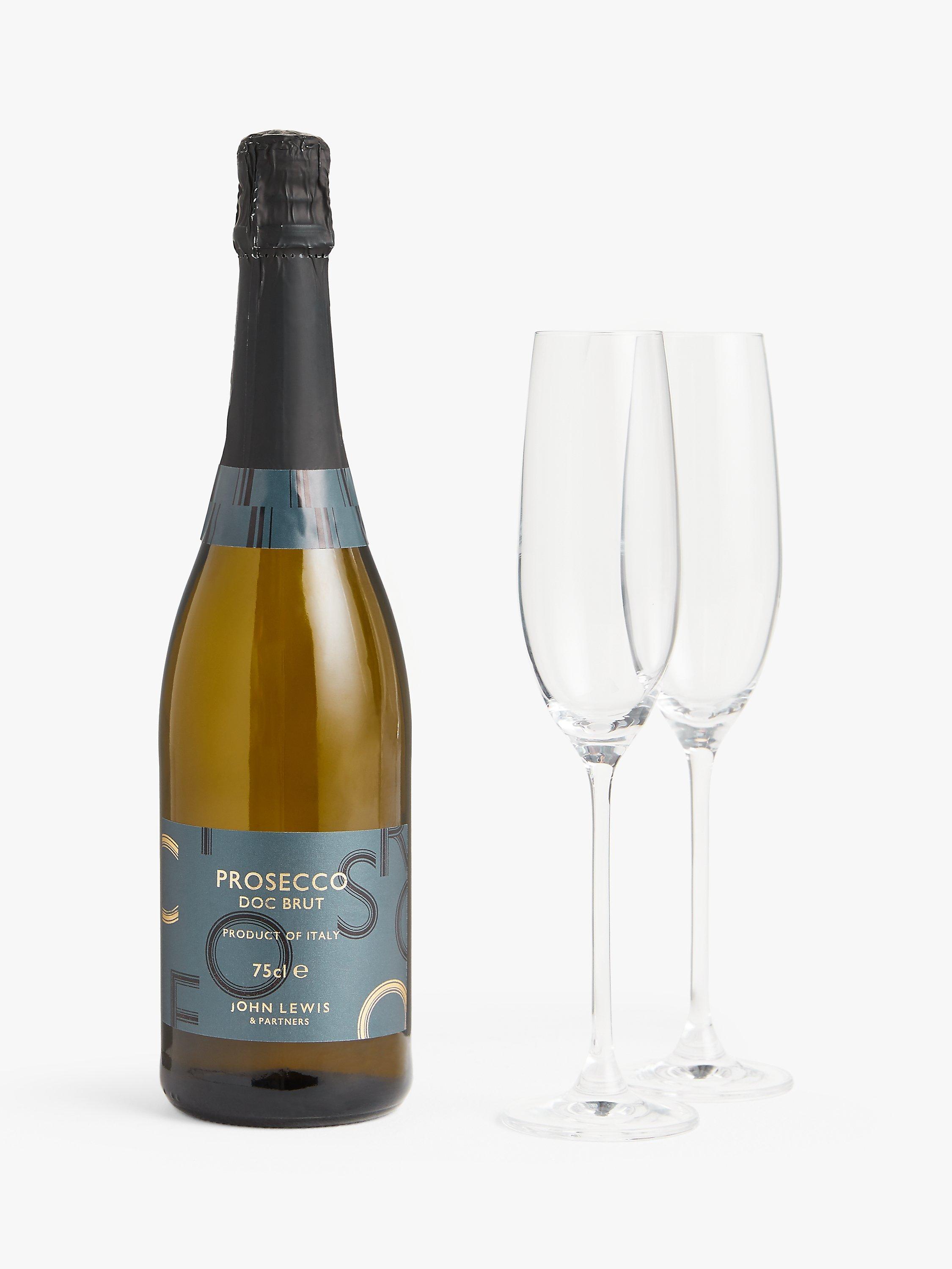 75cl Prosecco DOC brut, gift boxed together with a pair of crystal Champagne flutes.
