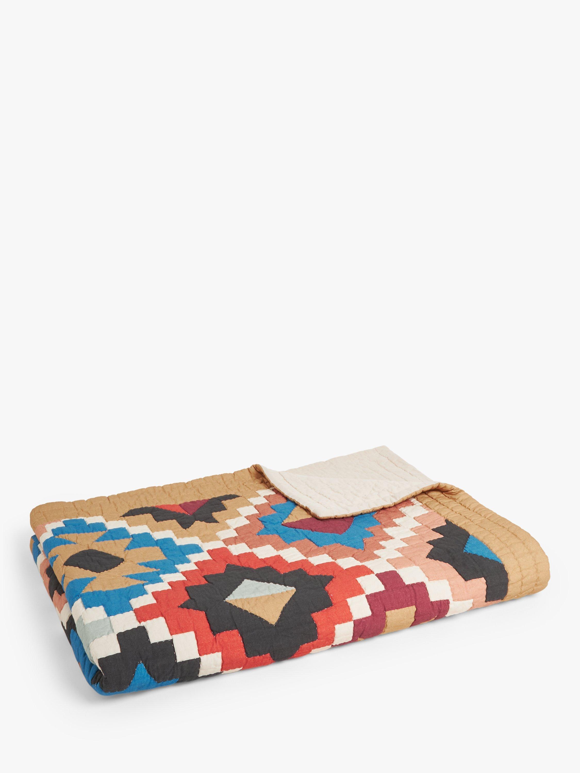A fabulous fiesta of colour makes your bedroom or guest room feel relaxed and welcoming. Made up of squares and triangles, in a folk-style design, this hand-quilted bedspread is made from 100% cotton, including the filling.