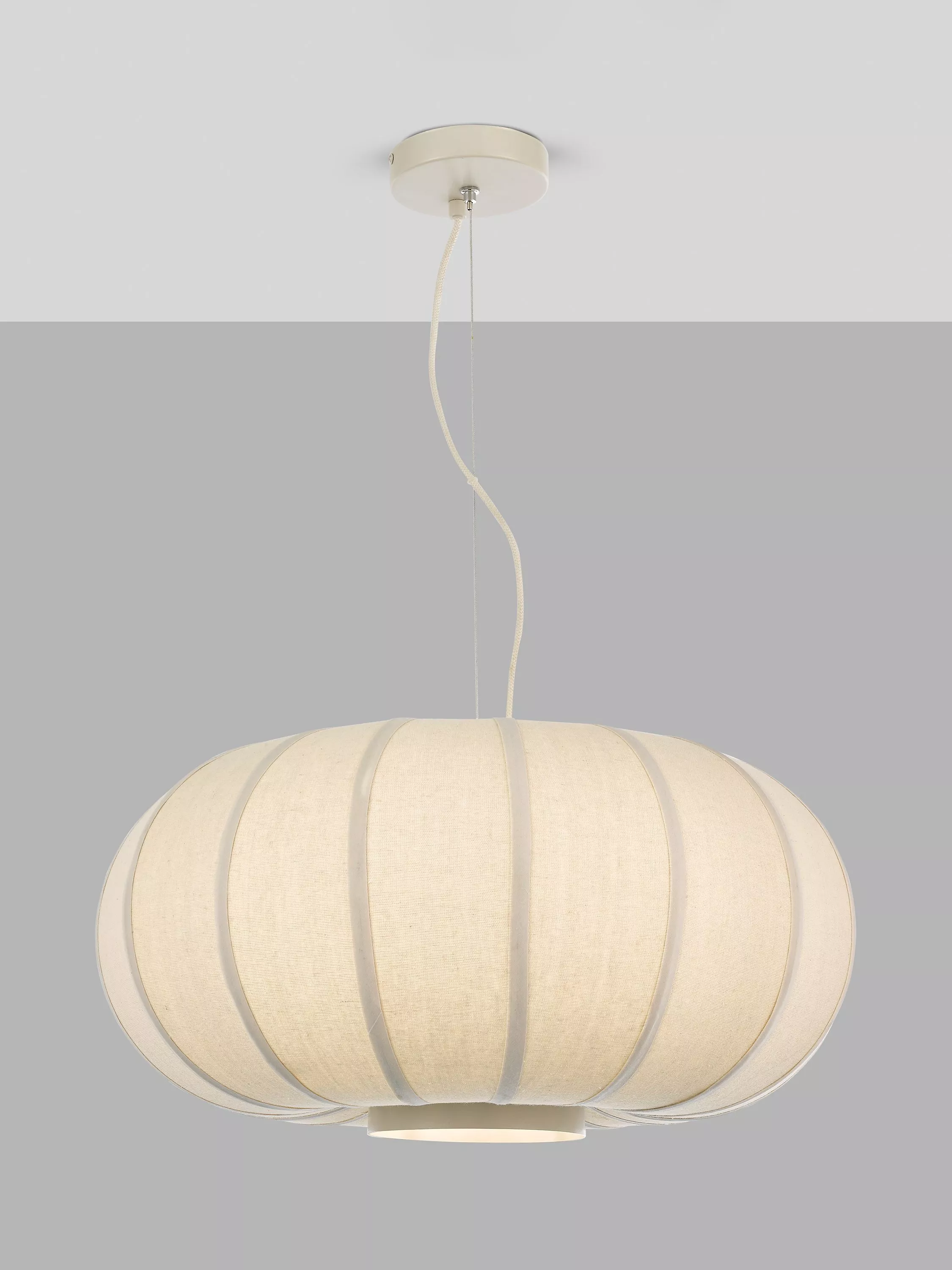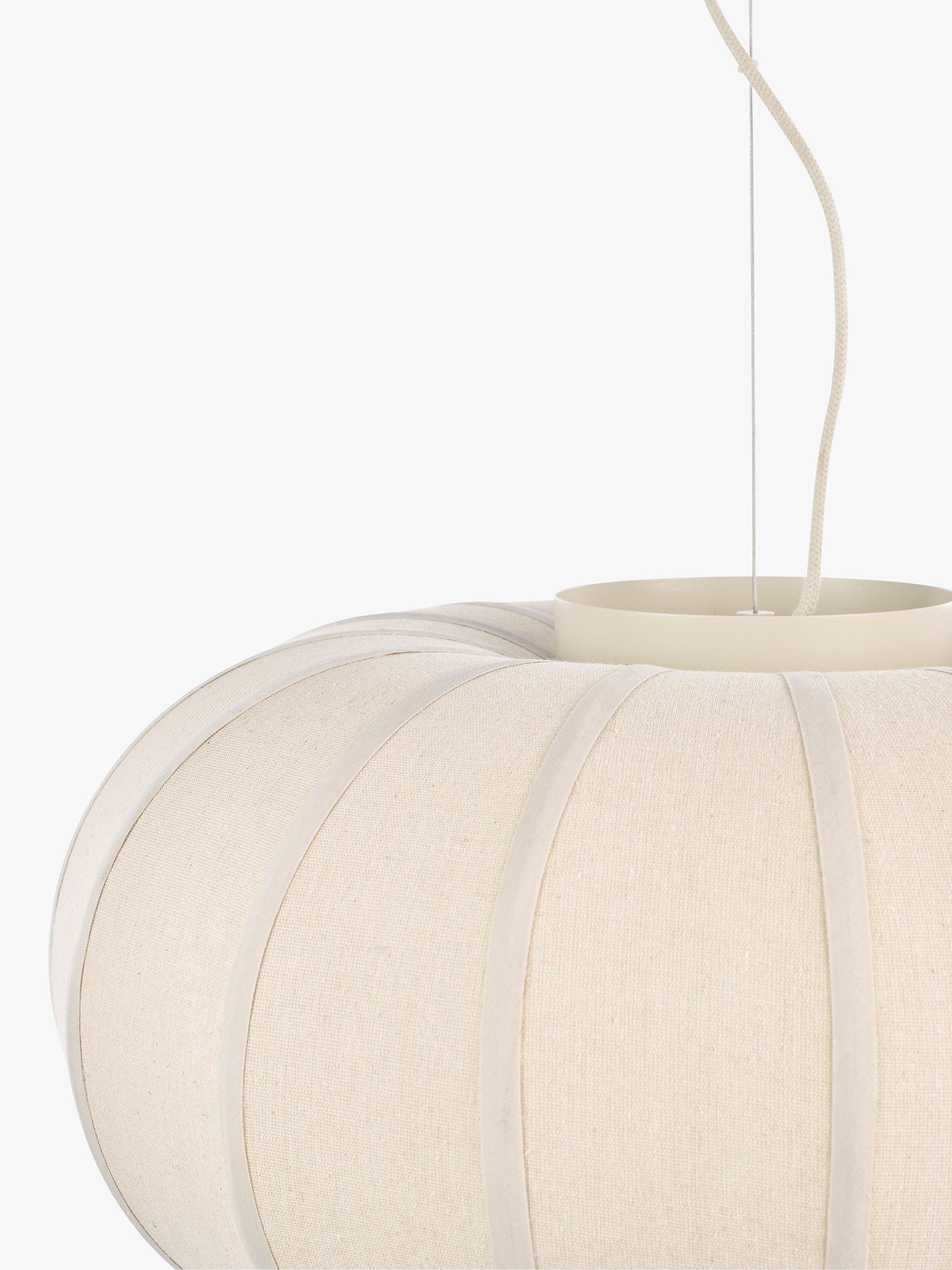 The Pumpkin ceiling light will create a true statement in the home. The neutral colours of the painted metalwork and the uniquely curved, flowing linen shade will bring a feeling of serenity and calm.