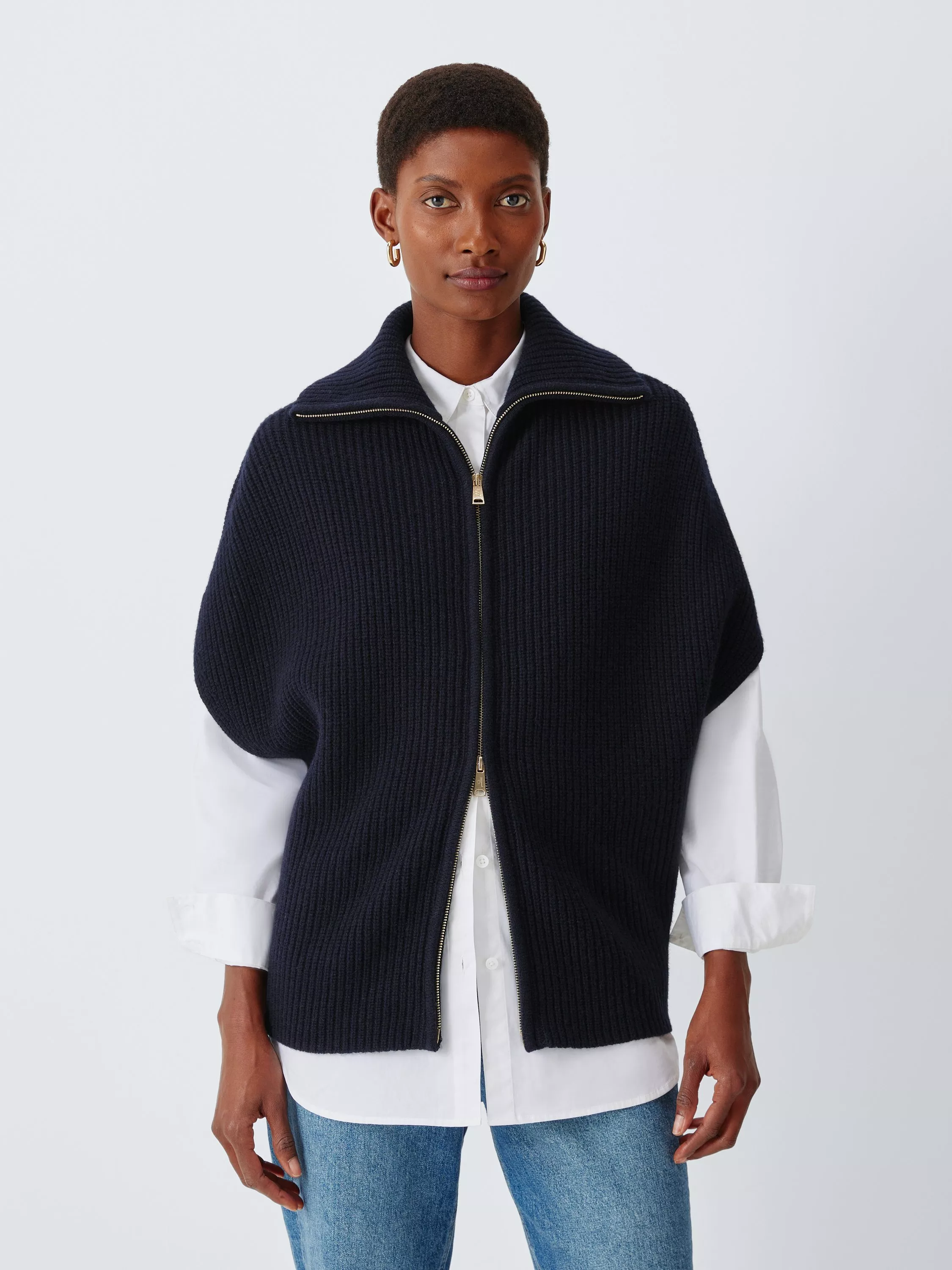 Layer up with our zip-through gilet, a modern sleeveless design with a versatile two-way zip all the way to the collar. Made from pure wool, the ribbed knit creates natural stretch for comfort.