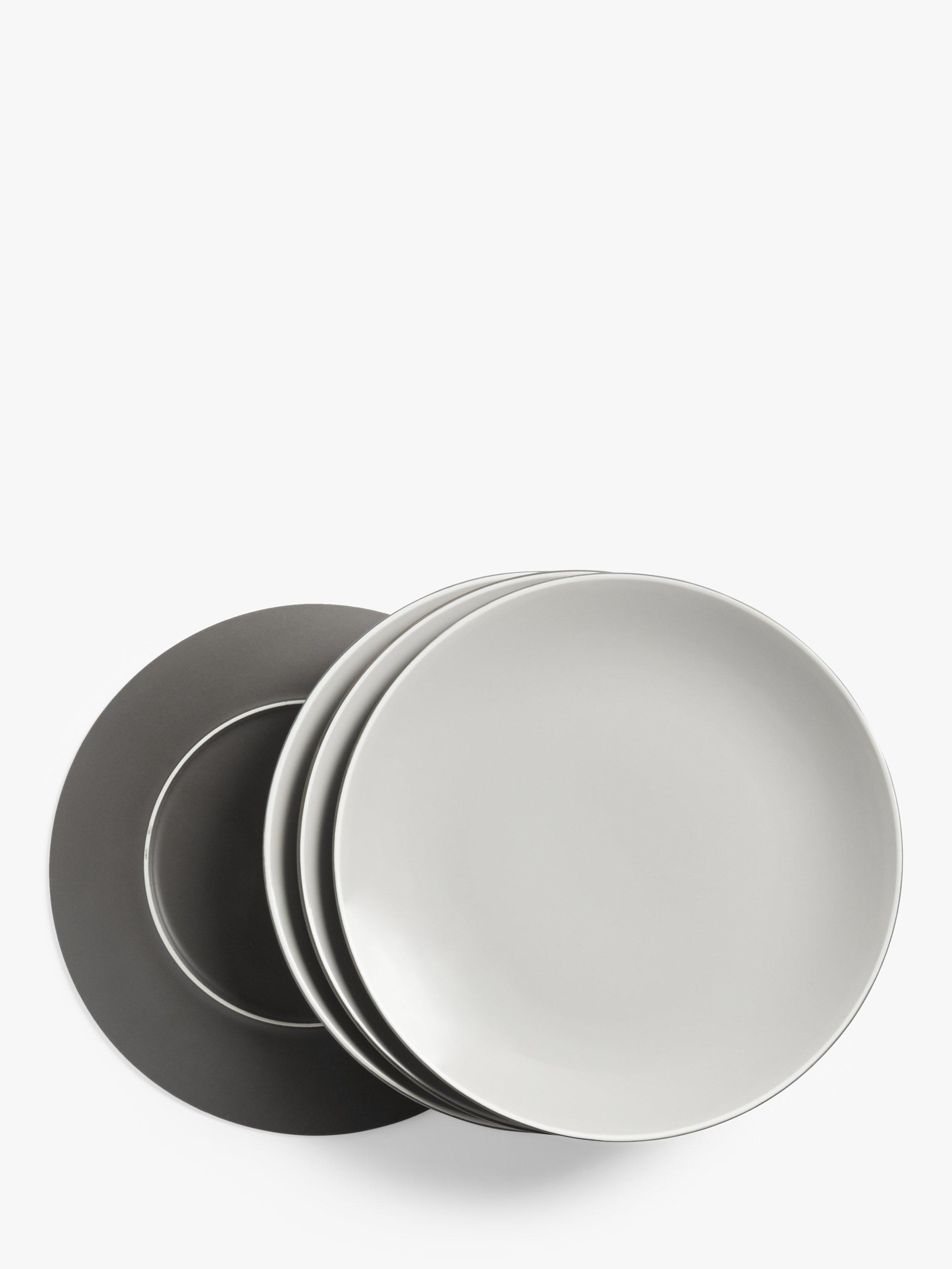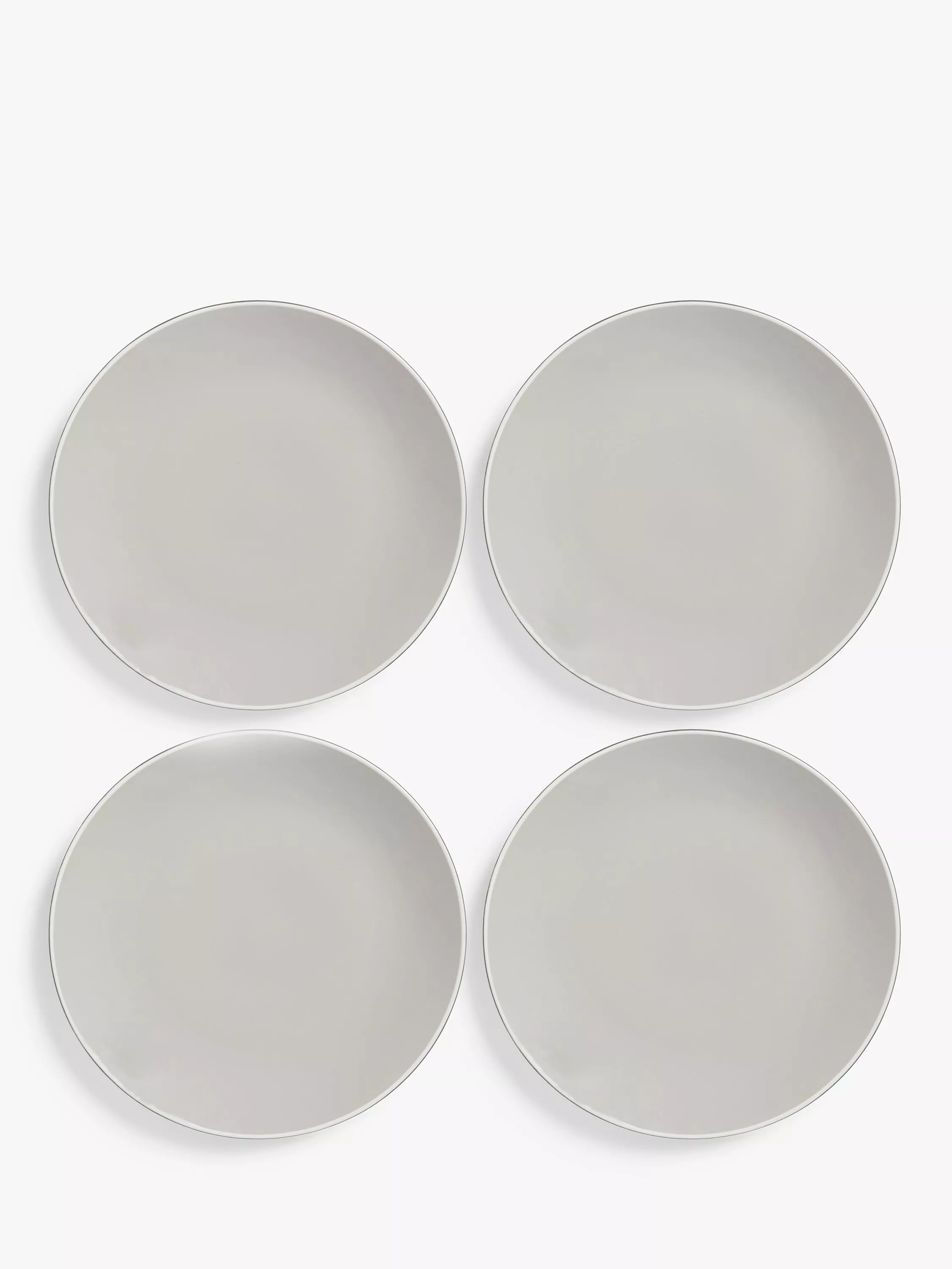 Four dinner plates from our Puritan range. Dishwasher and microwave safe for everyday use. Practical stoneware that's naturally attractive with a hand-applied glaze and simple matt satin finish. Puritan is named for its down-to-earth feel with pared-back shapes created by our in-house Design Studio.