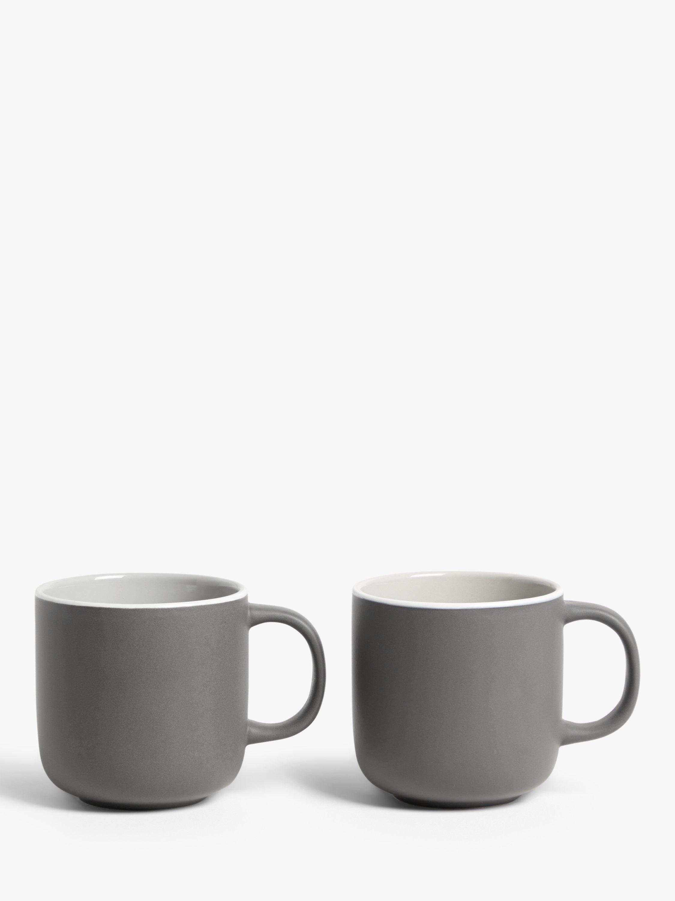 Two mugs from our Puritan range. Dishwasher and microwave safe for everyday use. Practical stoneware that's naturally attractive with a hand-applied glaze and simple matt satin finish. Puritan is named for its down-to-earth feel with pared-back shapes created by our in-house Design Studio.