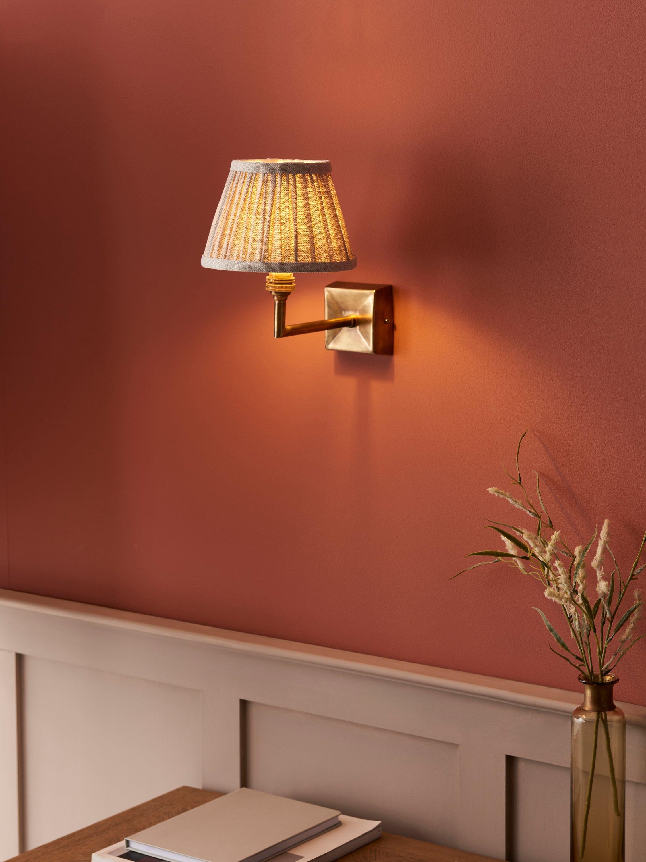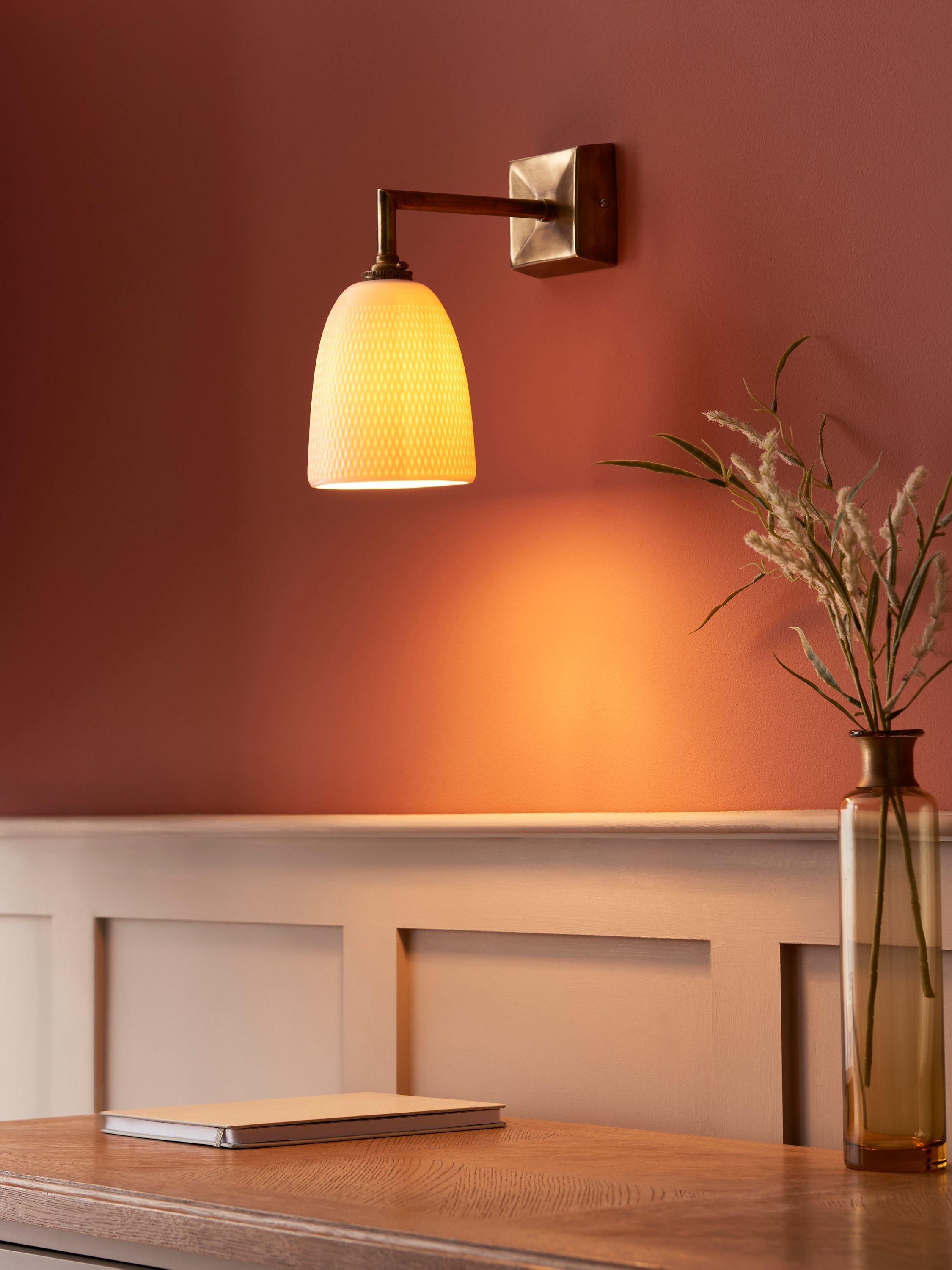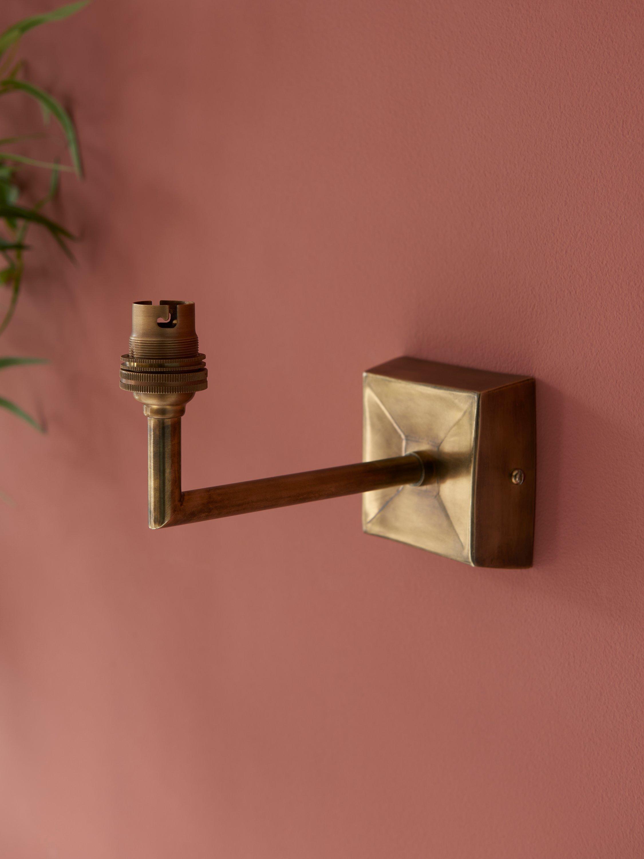 Angular hand-worked details give this wall fitting its focal point, and the authentic brass tones place this firmly in a classically eclectic interior.