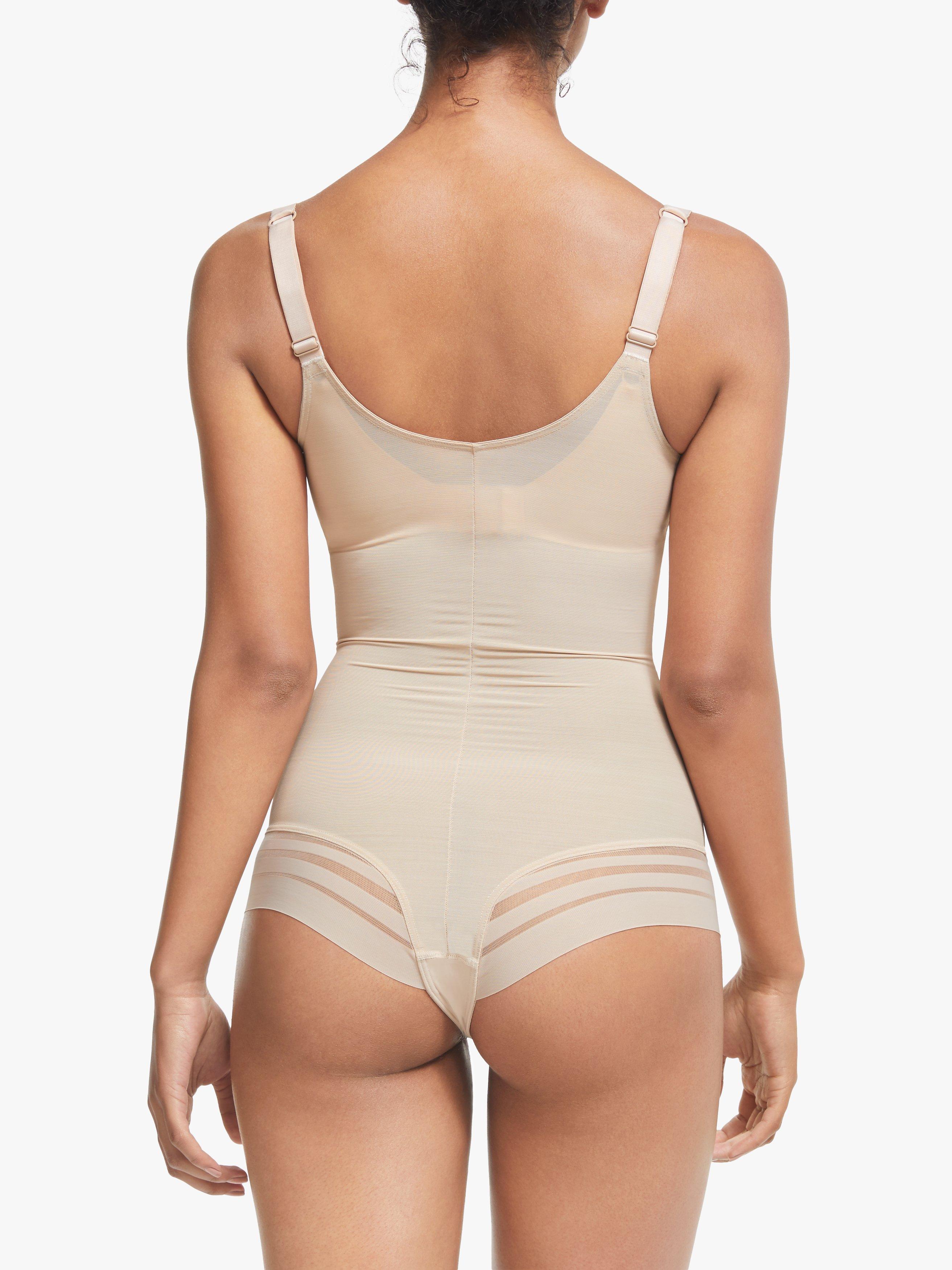 This body from our shapewear collection offers firm control creating a smoother and sleeker look through the tummy area. Designed so you can wear it with your own bra, it has a modern edge with sheer strap detailing and adjustable shoulder straps which you can convert into a racer style.