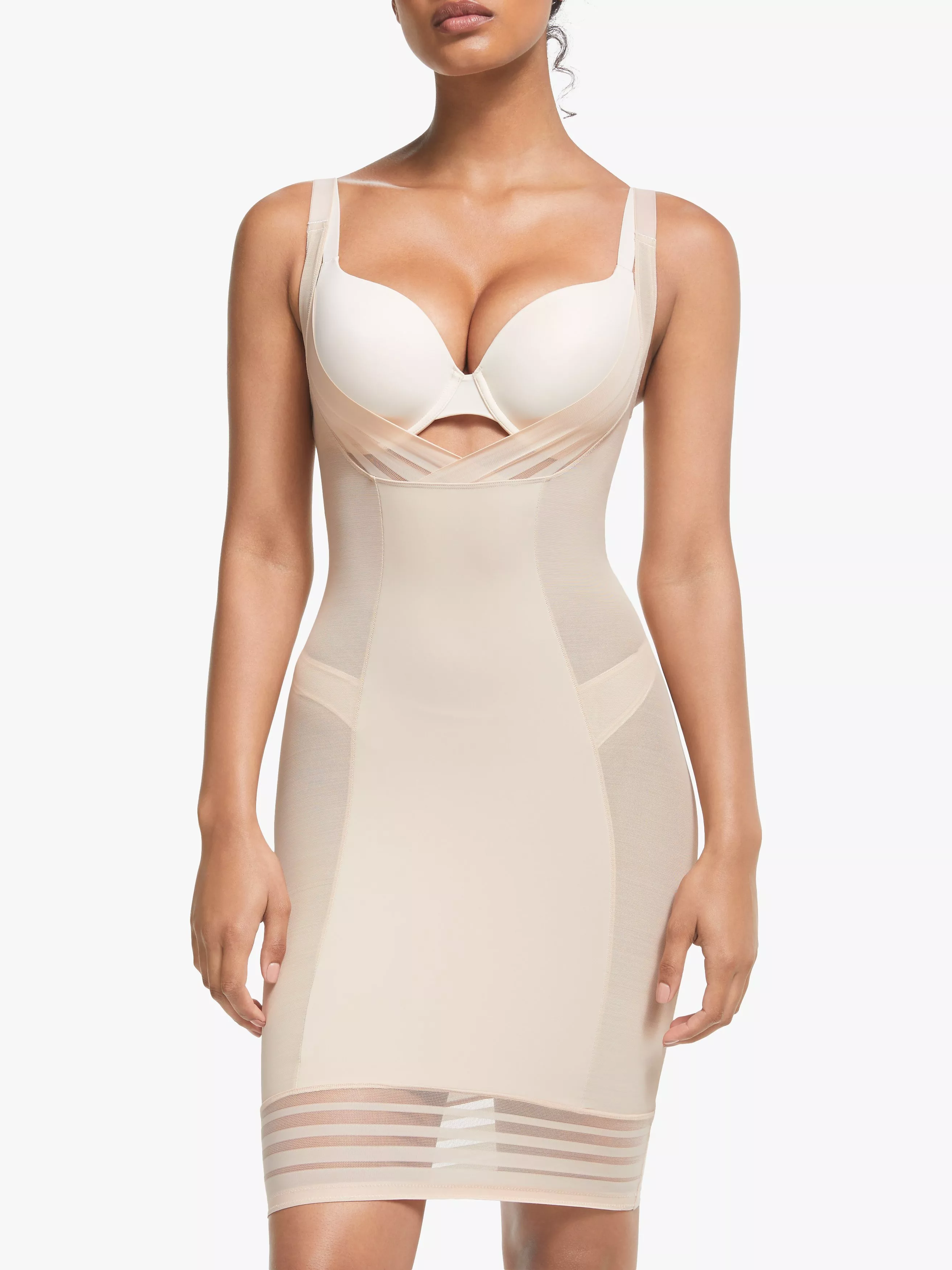 This slip from our shapewear collection offers firm control creating a smoother and sleeker look through the tummy area, bottom and thighs. Designed so you can wear it with your own bra, it has a modern edge with sheer stripe mesh and adjustable shoulder straps.