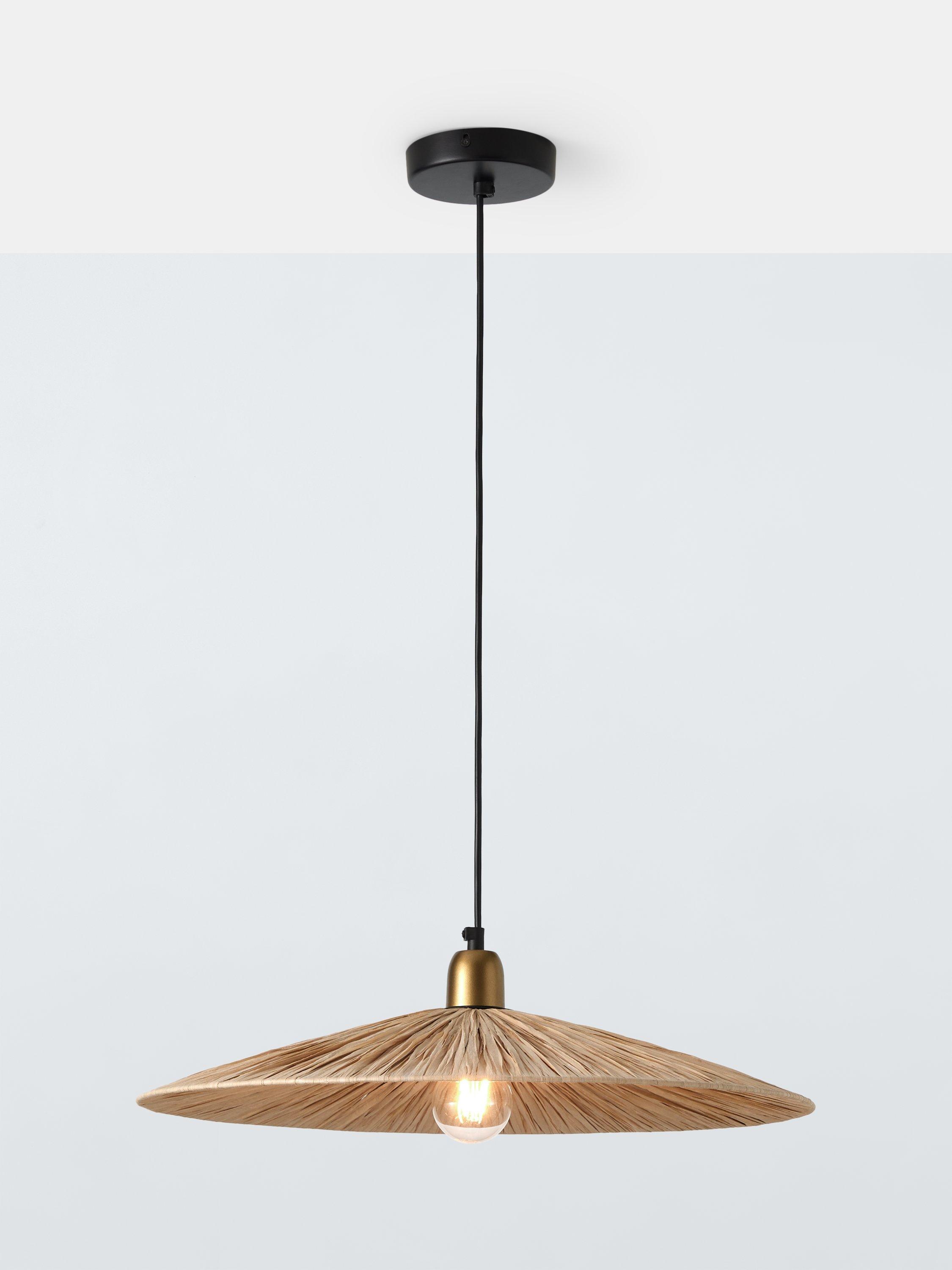 Elevate your space with the natural elegance of this raffia ceiling pendant. Handcrafted in India, this pendant light adds a warm organic touch to any room. Its woven design helps cast a soft ambient glow that's ideal for living rooms, dining areas and bedrooms.